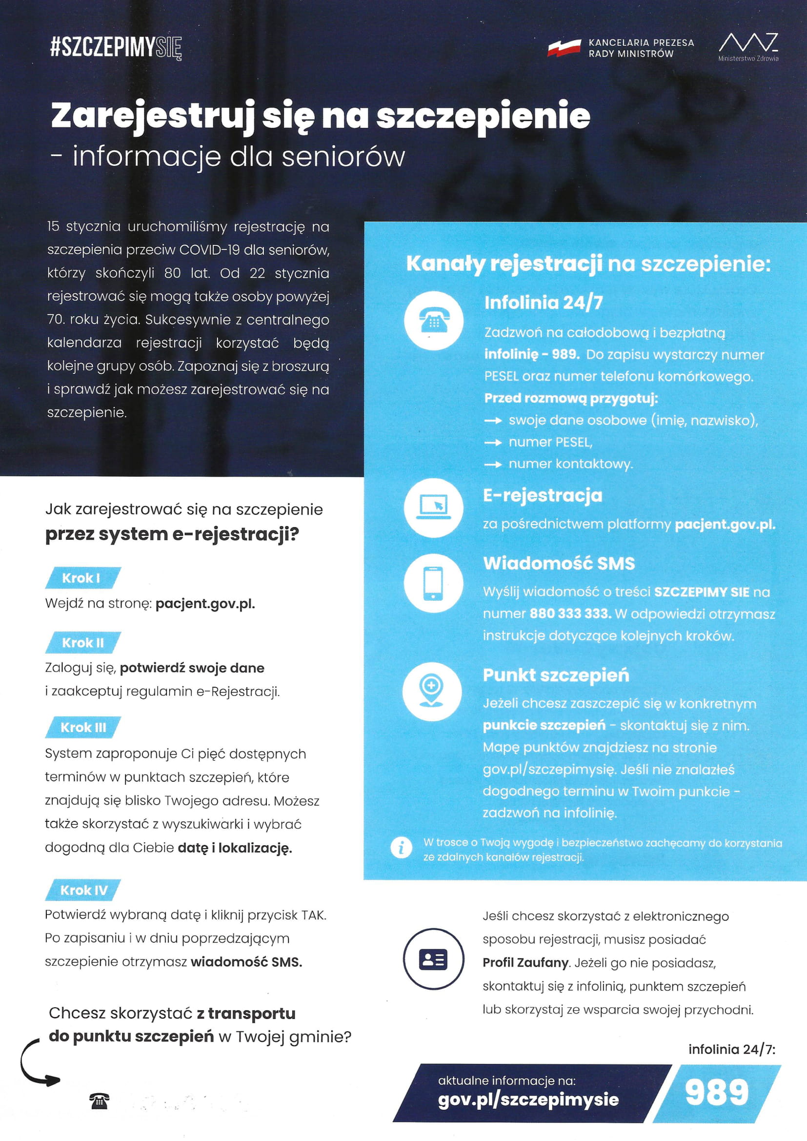Materiały mają przede wszystkim trafić do mieszkańców wykluczonych cyfrowo, którzy nie korzystają z zasobów internetu, często są samotni lub nie radzą sobie z informacją z innych źródeł. Na ulotkach znalazły się m.in. informacje o tym, jak zapisać się na szczepienie.
