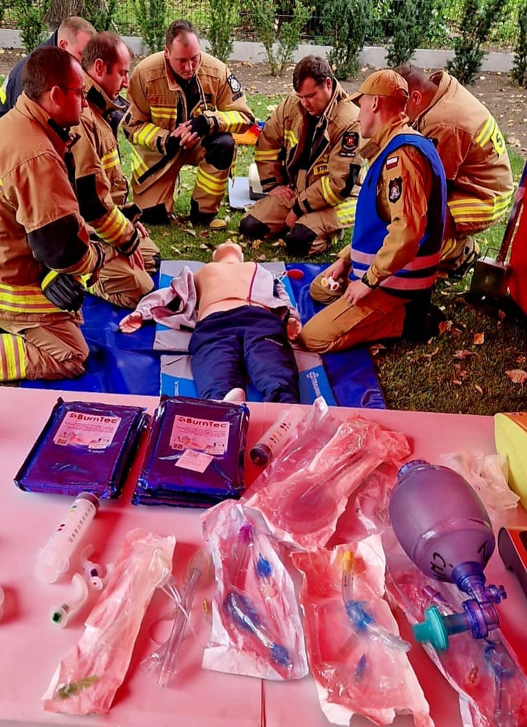 Druhowie ćwiczyli udzielanie kwalifikowanej pierwszej pomocy osobom poszkodowanym znajdującym się w zadymieniu, przy zatruciach wziewnych a także zaopatrywanie ran i poparzeń. Warsztaty zakończyły się podsumowaniem, co pozwoliło uczestnikom zaktualizować posiadaną już wiedzę oraz lepiej zrozumieć, zagrożenia podczas działań w pożarach wewnętrznych a w szczególności w pożarach piwnic.