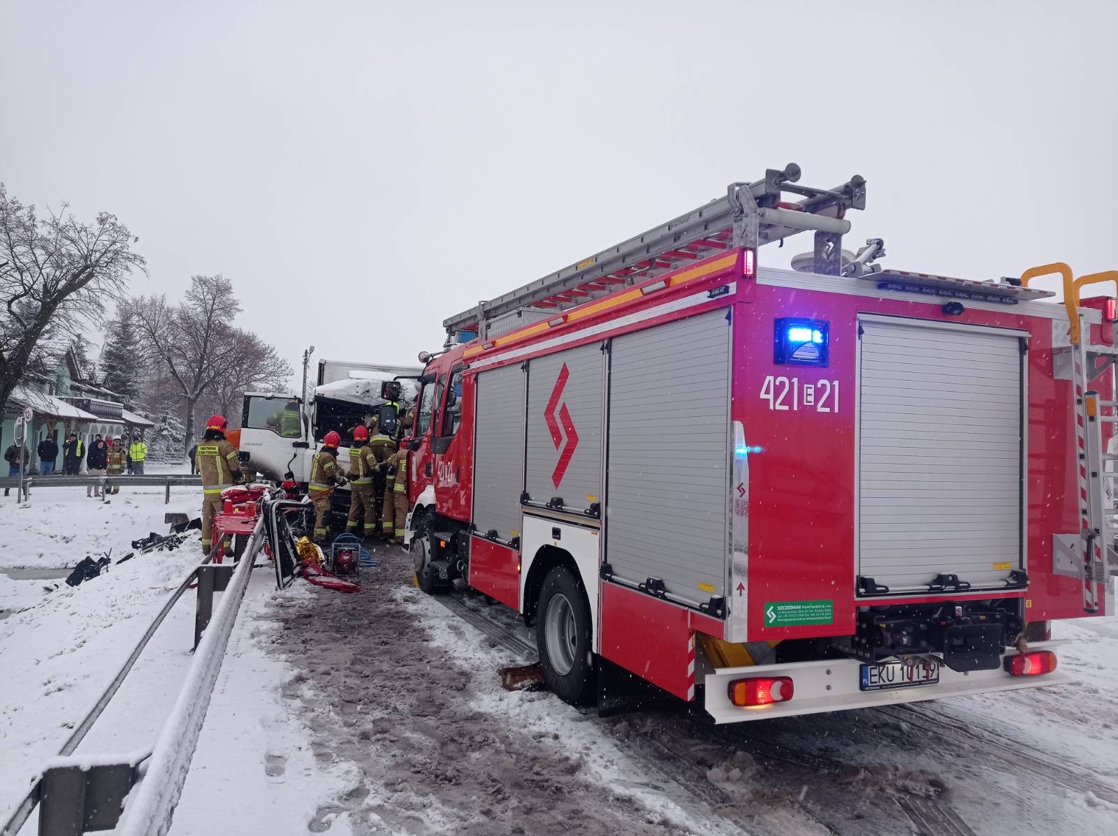 Zderzenie dwóch samochodów ciężarowych na DK 91