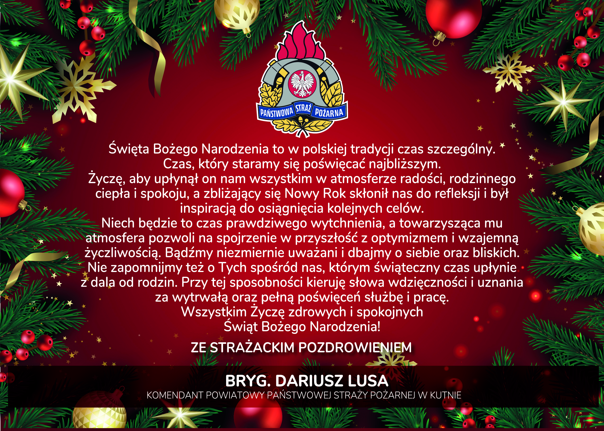 Życzenia Świąteczne Komendanta Powiatowego PSP w Kutnie 23.12.2024 Zdjęcia (2) Pokaż zdjęcie 1 z galerii. Pokaż zdjęcie 2 z galerii.