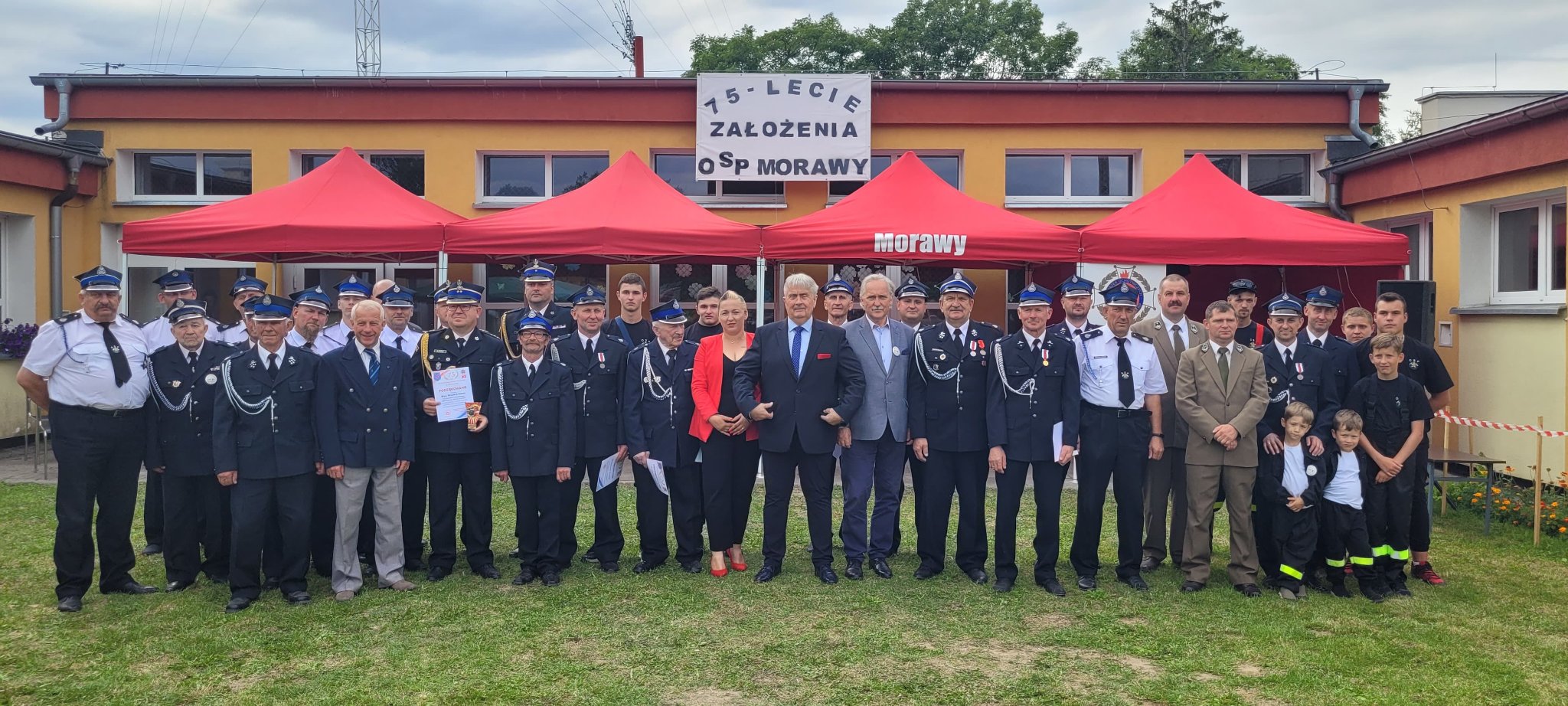 Dnia 30.07.2022 Ochotnicza Straż Pożarna w Morawach obchodziła 75-lecie swojej działalności. Po mszy świętej odbyła się uroczysta zbiórka, która była okazją do podsumowania działalności jednostki, podziękowań i gratulacji dla jej członków oraz uhonorowania ich medalami i odznaczeniami.