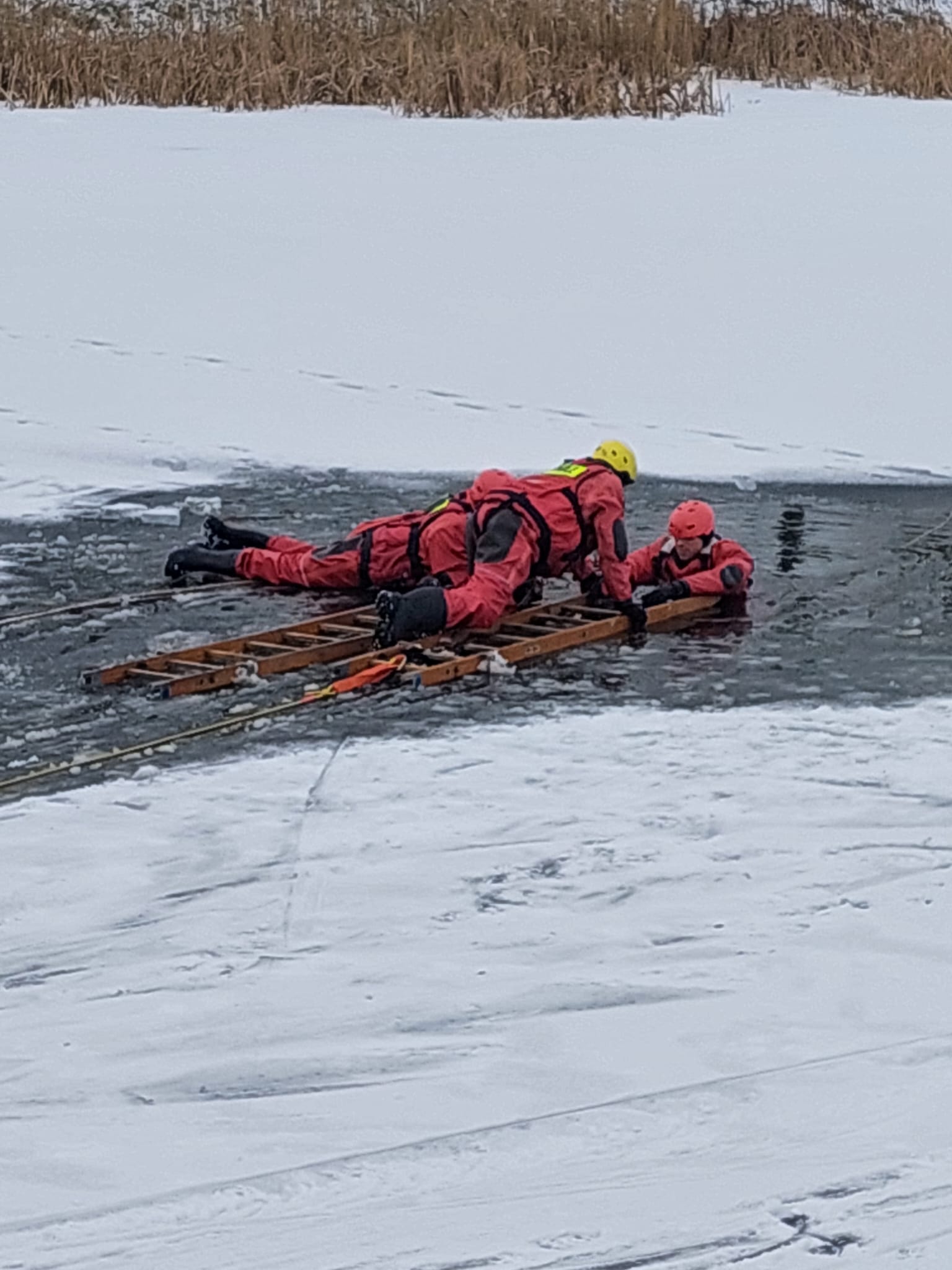 Funkcjonariusze Komendy Powiatowej Państwowej Straży Pożarnej w Kwidzynie zorganizowali i przeprowadzili szkolenia w zakresie ratownictwa lodowego i bezpieczeństwa na zmrożonych akwenach.