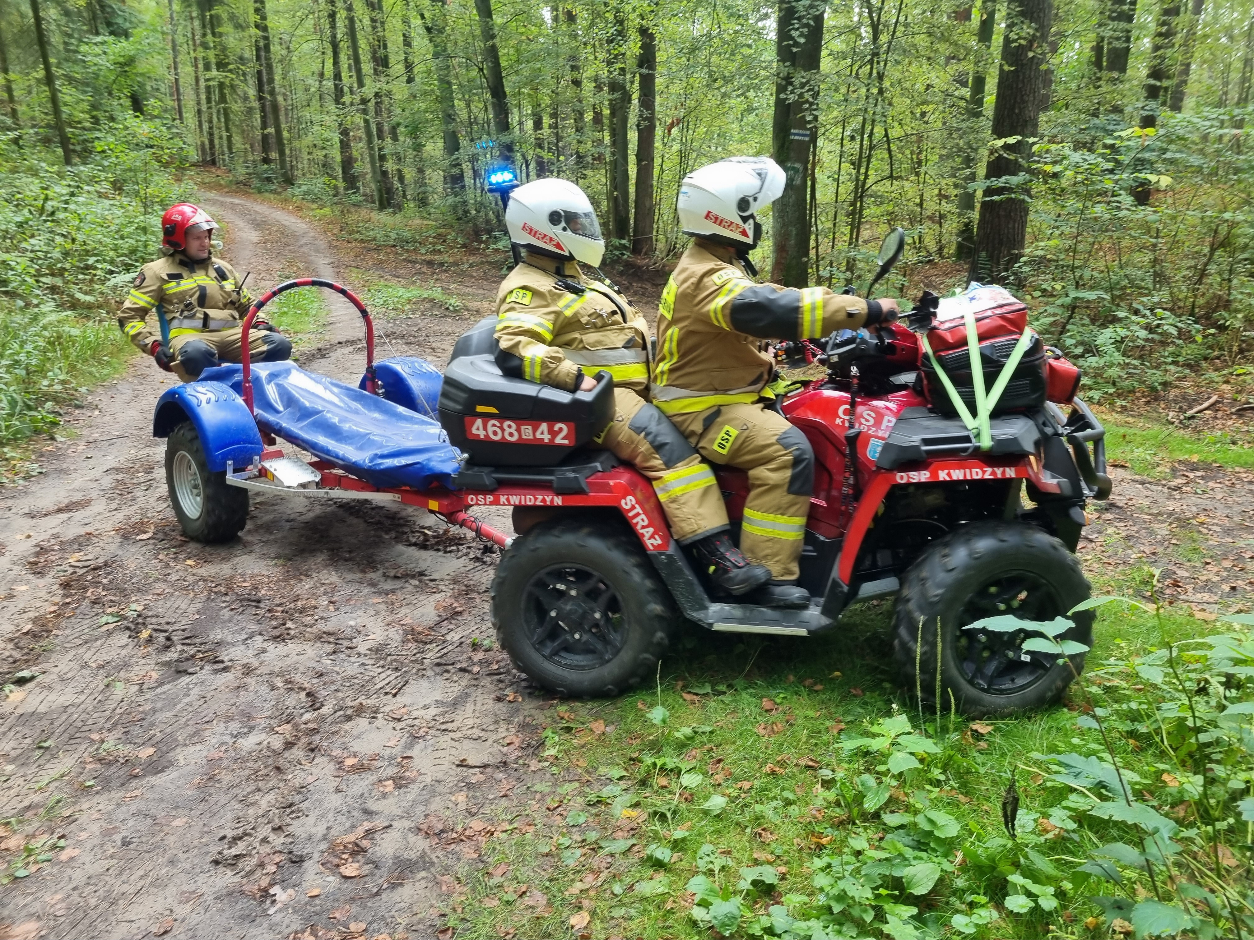 Do skutecznego prowadzenia działań gaśniczych konieczne było spiętrzenie strumienia i dostarczanie wody na duże odległości. OSP Kwidzyn realizowało także epizod związany z poszukiwaniem osoby poszkodowanej, której została następnie udzielona kwalifikowana pierwsza pomoc oraz przetransportowano ją na przyczepie z quadem do miejsca spotkania z zespołem ratownictwa medycznego. Pracownicy Nadleśnictwa Kwidzyn przedstawili specyfikę Leśnictwa Miłosna, występujące na jego terenie punkty czerpania wody oraz zasady uruchamiania baz sprzętu p.poż. Za to oraz za udostępnienie terenu do ćwiczeń, składamy serdeczne podziękowania.