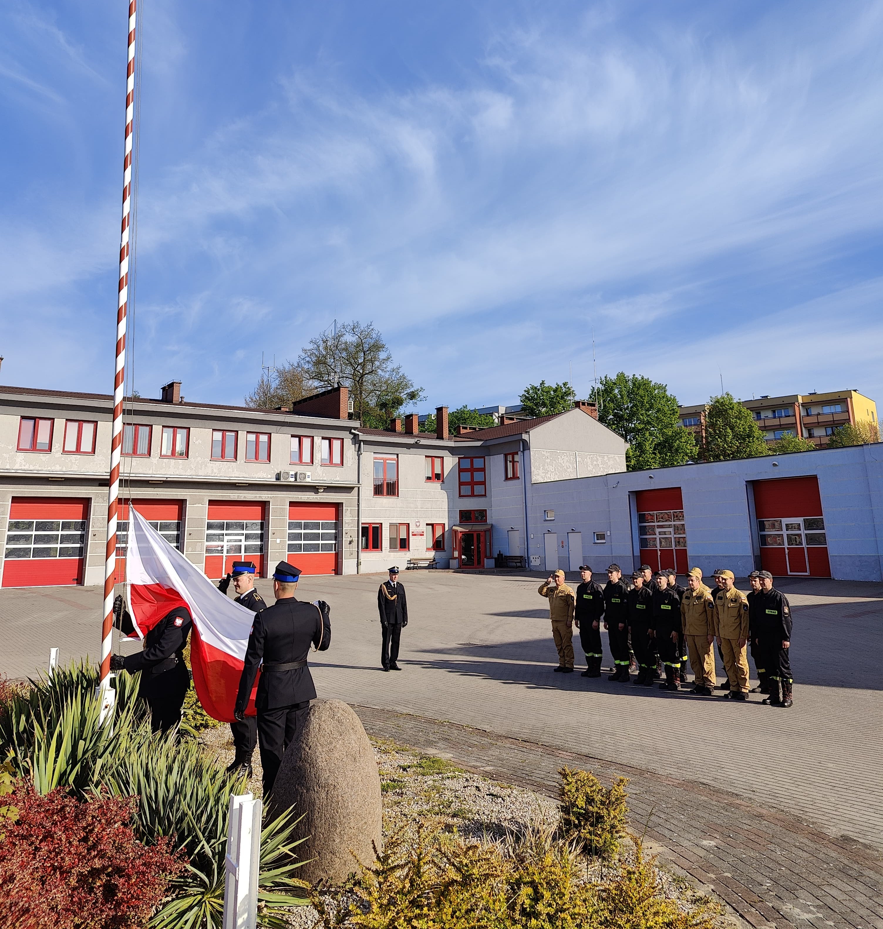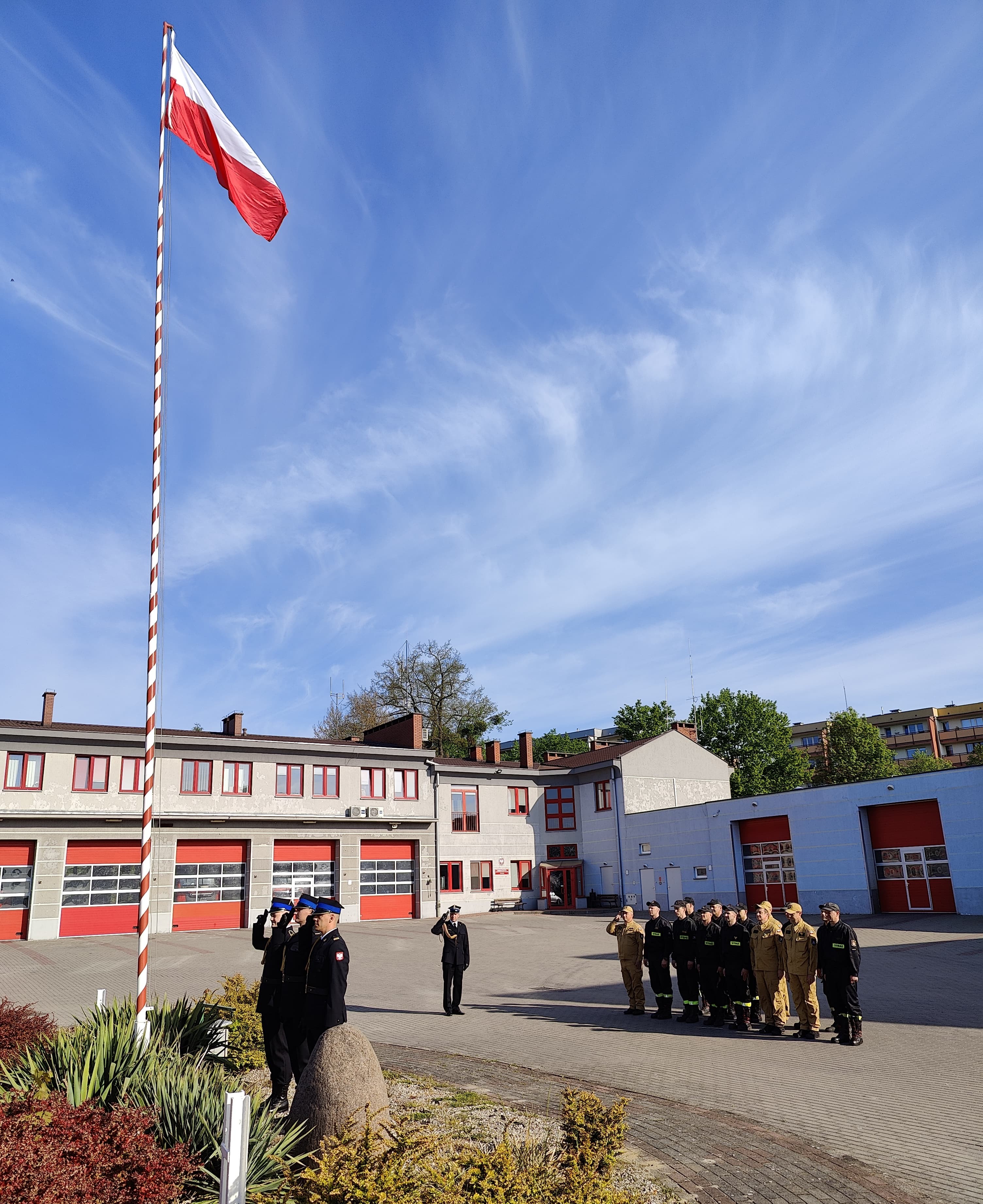 W Komendzie Powiatowej PSP w Kwidzynie 2 maja zaczął się od uroczystej zmiany służby, wciągnięcia flagi na maszt oraz odśpiewania hymnu państwowego.