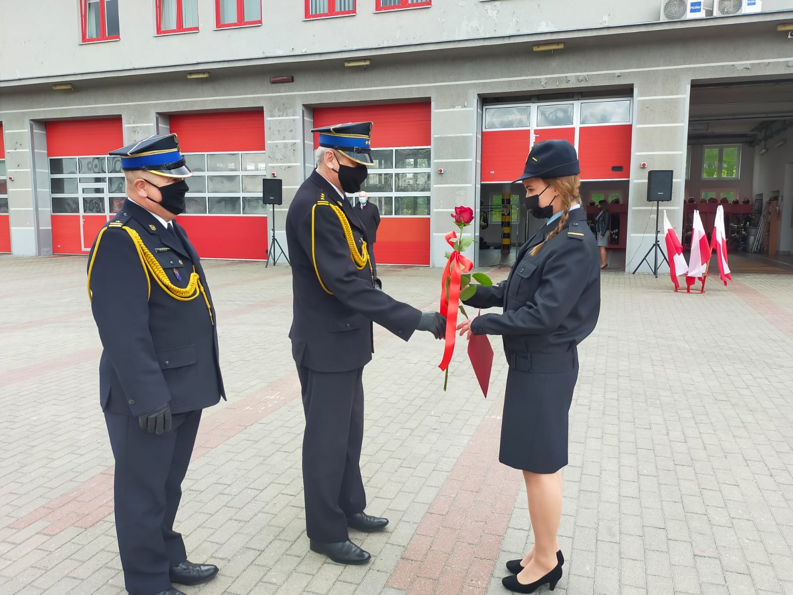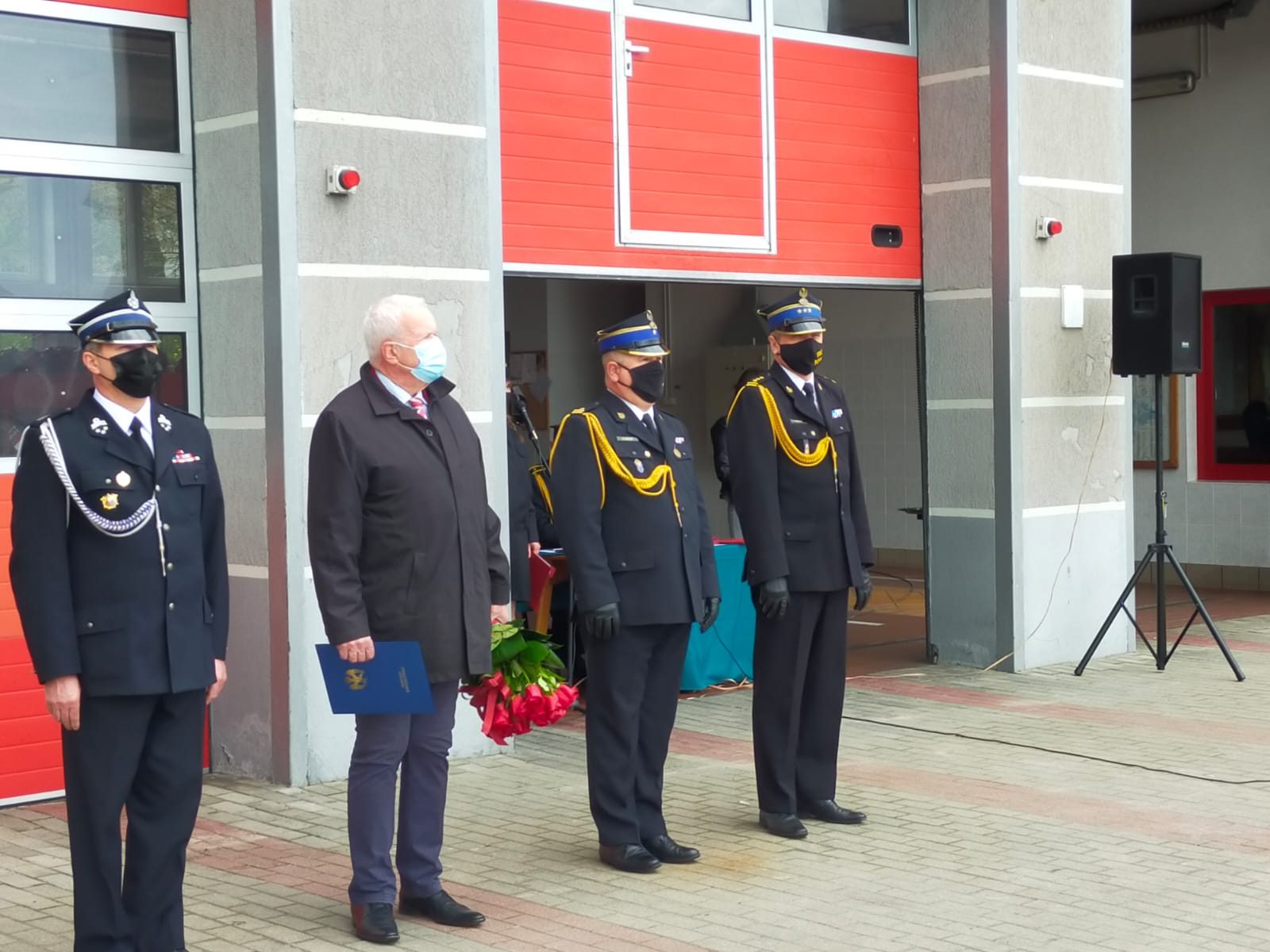 Pomorski komendant wojewódzki st. bryg. Piotr Socha, Starosta kwidzyński Pan Jerzy Godzik oraz Wiceprezes Zarządu Oddziału Powiatowego ZOSP RP w Kwidzynie druh Tomasz Warpas zaszczycili swą obecnością kwidzyńskich funkcjonariuszy pożarnictwa oraz pracowników cywilnych Komendy Powiatowej PSP w Kwidzynie w dniu 7 maja 2021 podczas uroczystego apelu z okazji Dnia Strażaka.