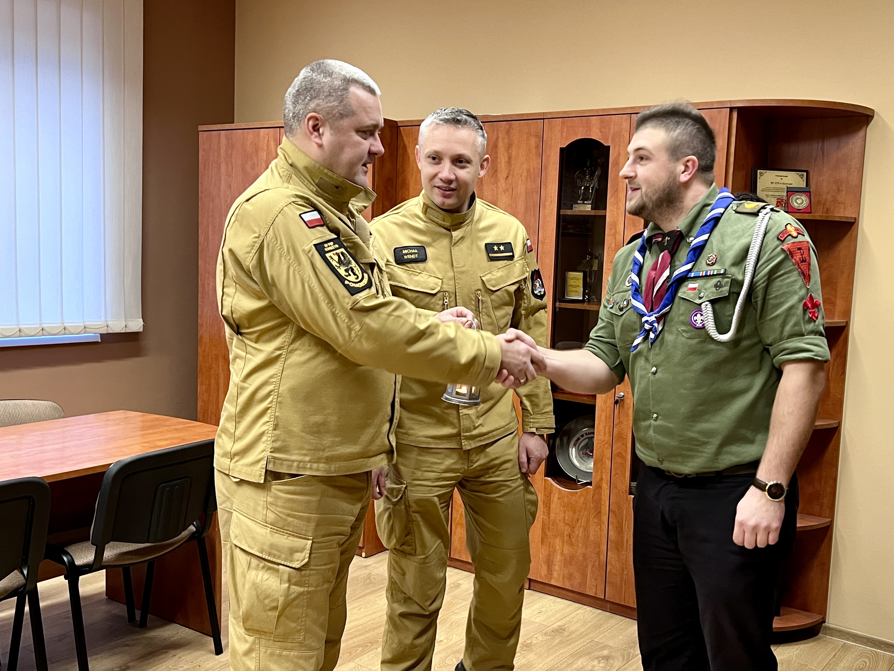 Komendant Powiatowy Państwowej Straży Pożarnej w Kwidzynie, bryg. Robert Sawicki, przyjął od harcerzy Betlejemskie Światło Pokoju. Jest to symbol ciepła, miłości, pokoju i nadziei.
