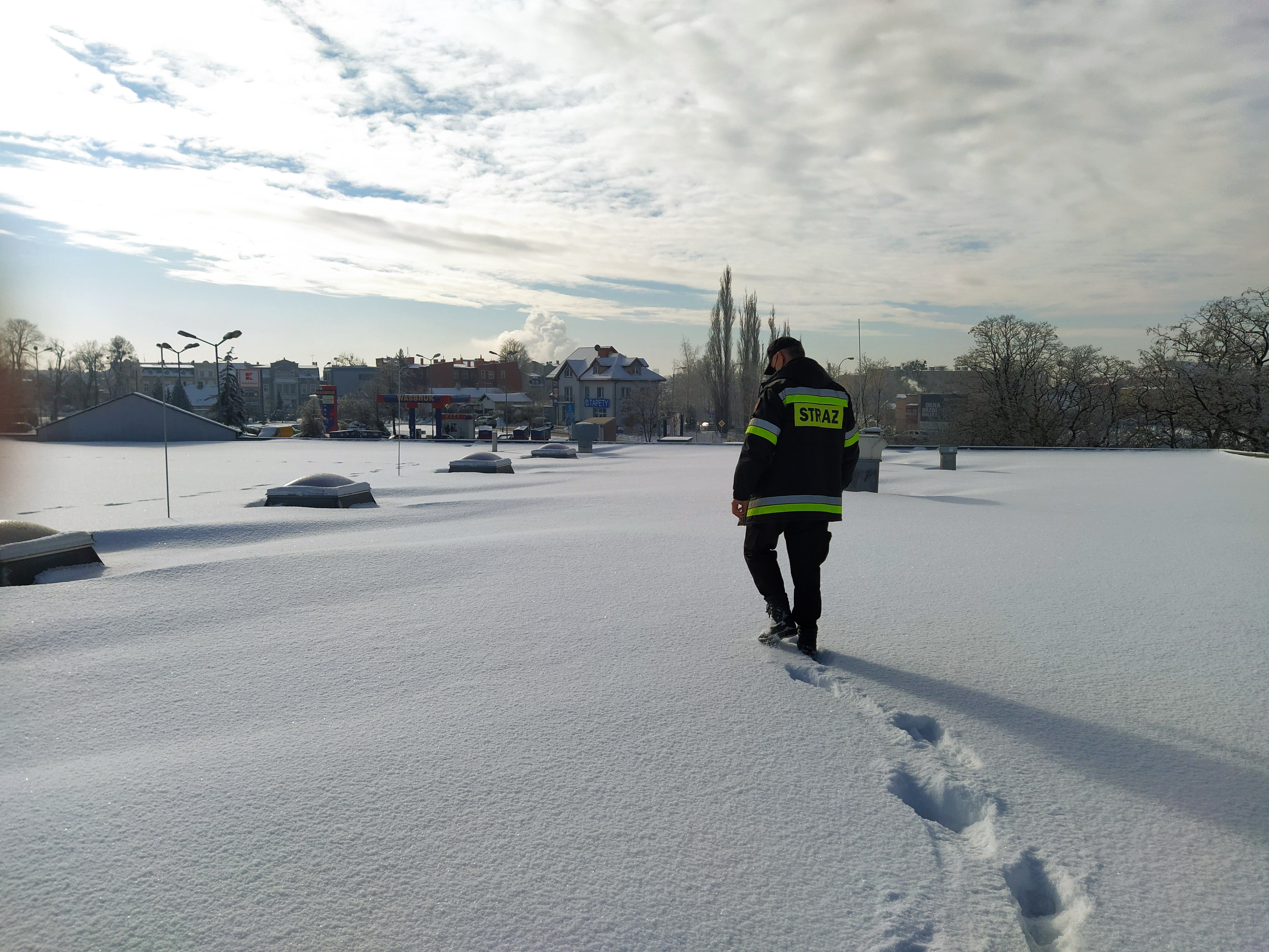 Funkcjonariusze Komendy Powiatowej Państwowej Straży Pożarnej w Kwidzynie wspólnie z Instektorami Powiatowego Inspektoratu Nadzoru Budowlanego w Kwidzynie prowadzą wybiórcze kontrole budynków wielkopowierzchniowych, sprawdzając jak gruba pokrywa śniegu zalega na dachach, czy z nich lub elementów elewacji nie zwisają niebezpieczne sople, bryły lub nawisy lodowe i śniegowe, które mogą spadać na chodniki i jezdnie przy budynkach.