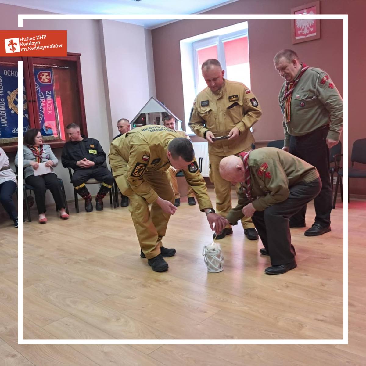 Krąg Seniorów ZHP Kwidzyn "Płomienie" przybył do Komendy Powiatowej PSP w Kwidzynie z wyjątkową wizytą. Nasi goście zaszczycili swoją obecnością, podczas której wyrazili wdzięczność za poświęcenie jakim każdego dnia wykazują się strażacy z Jednostki Ratowniczo-Gaśniczej oraz druhny i druhowie z ochotniczych straży pożarnych. Uczczono także pamięć tych którzy odeszli na wieczną służbę.