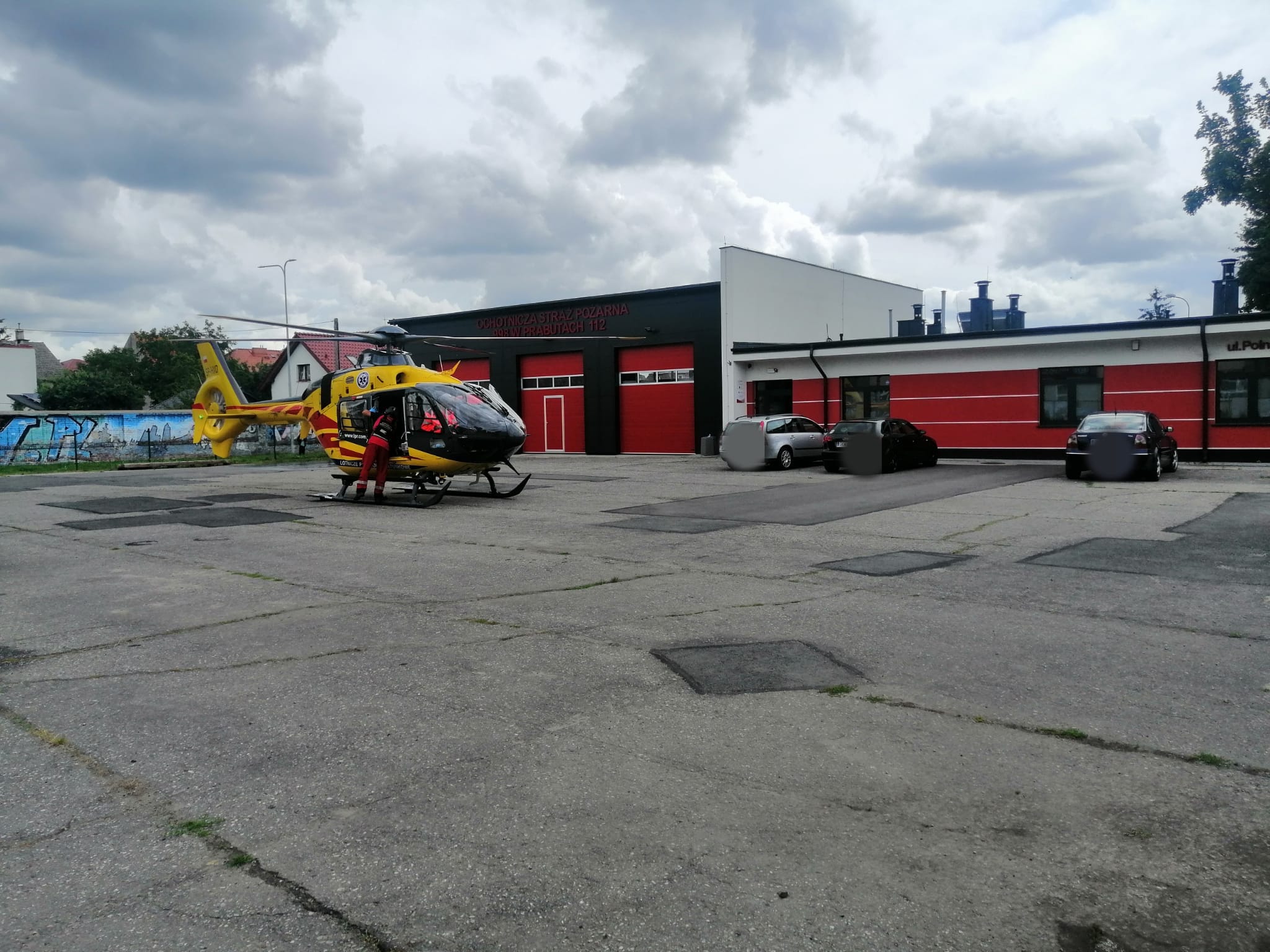 Lądowanie LPR na placu przed remizą OSP Prabuty