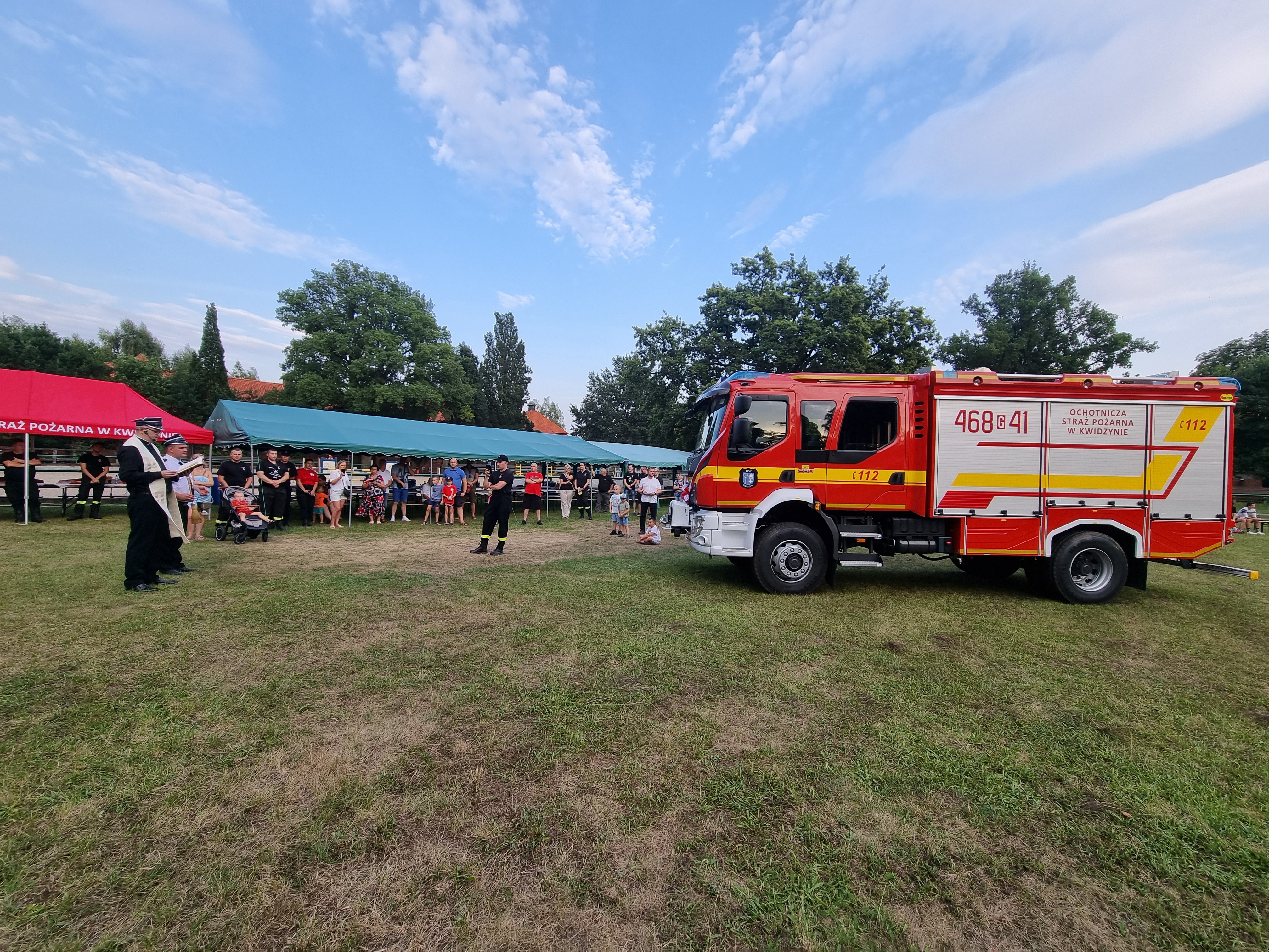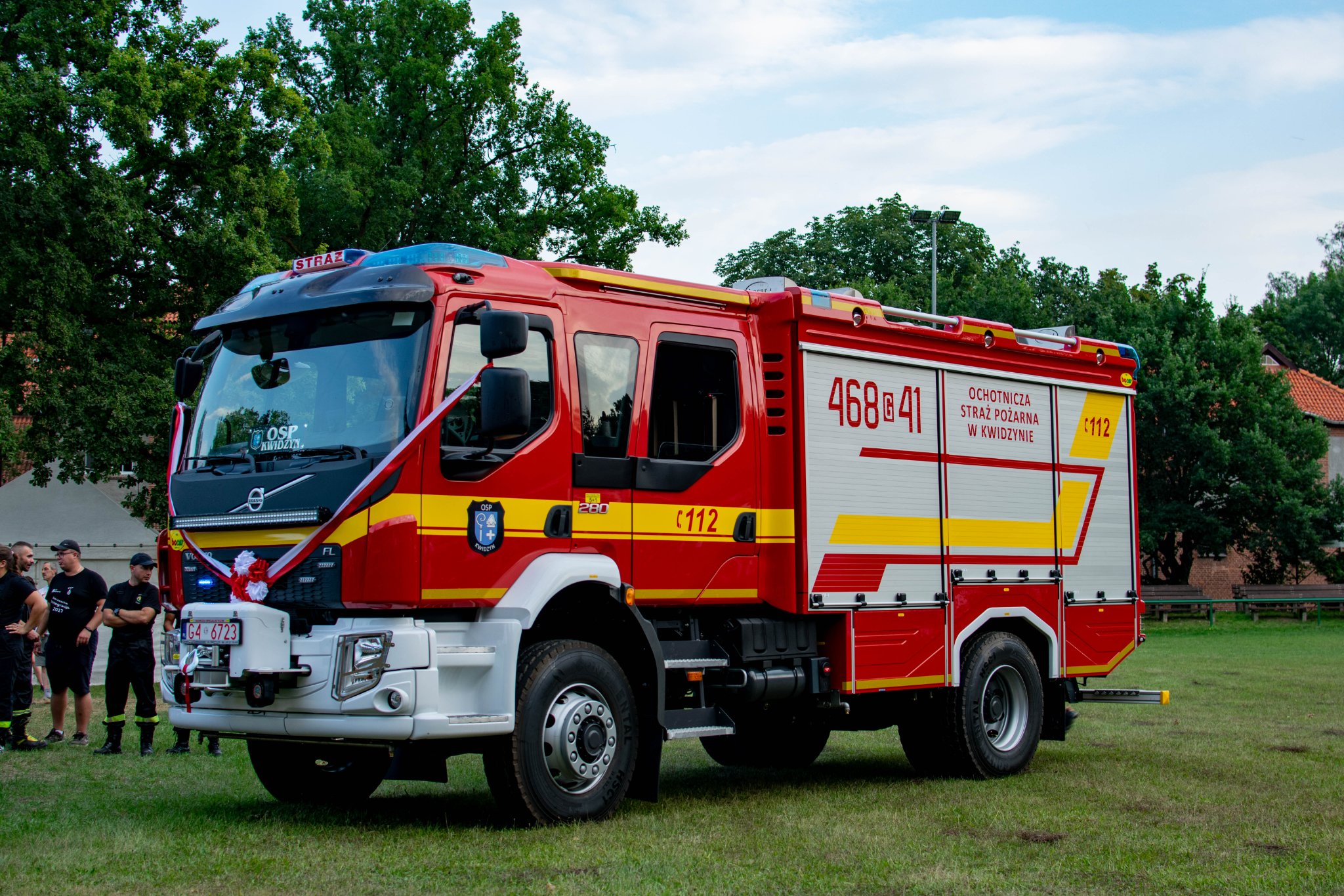 Od wjazdu na teren powiatu do remizy, nowy nabytek OSP Kwidzyn eskortowały pojazdy z innych jednostek OSP z terenu naszego powiatu. Na miejscu czekali między innymi burmistrz miasta Kwidzyna wraz z zastępcą, przedstawiciele służb, podmiotów i instytucji współpracujących z OSP Kwidzyn. Obecny był także zastępca Pomorskiego Komendanta Wojewódzkiego PSP bryg. Wojciech Berent – koordynator ds. współpracy PSP z OSP.