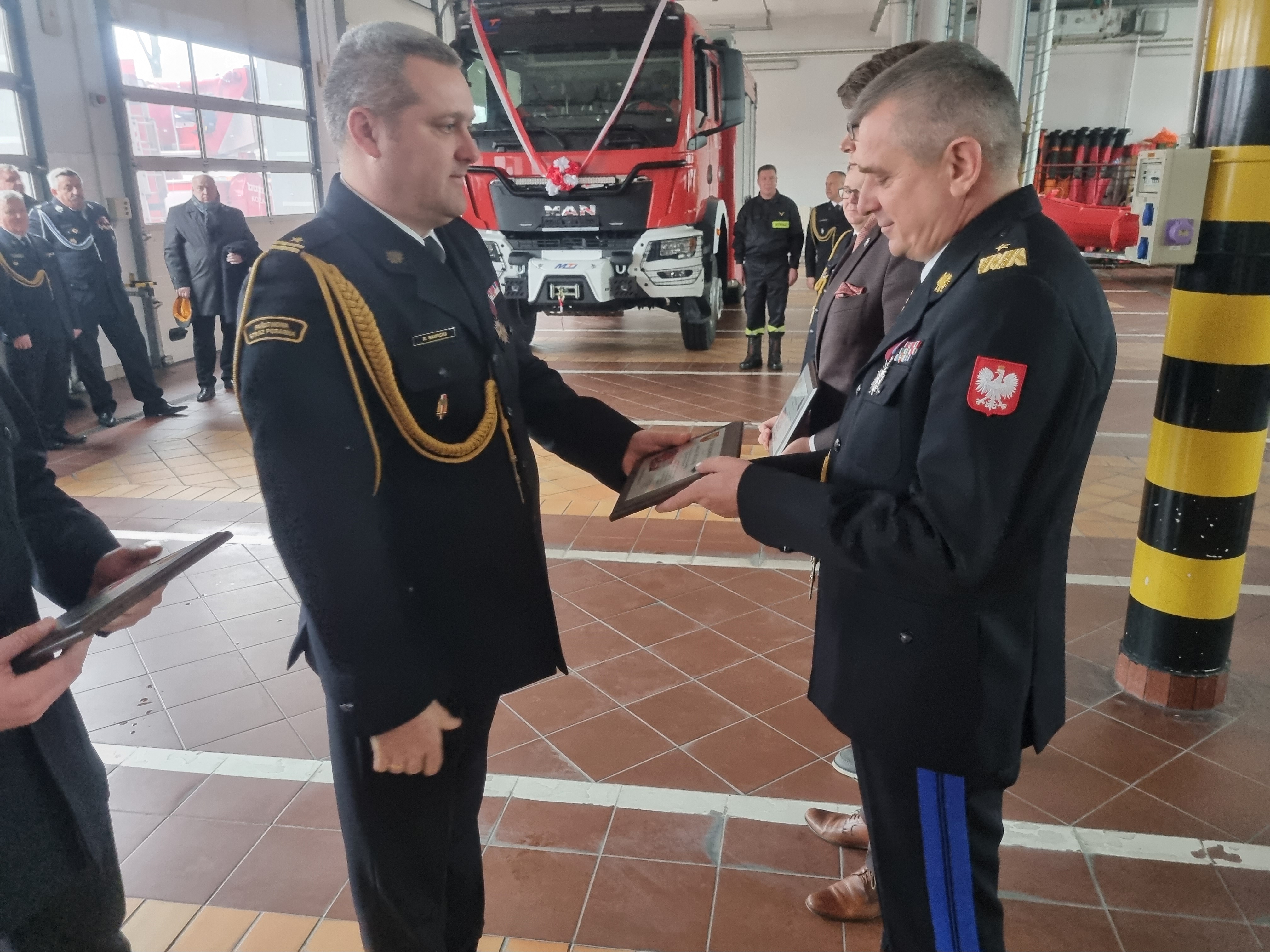 Kulminacyjnym momentem uroczystości było przekazanie kluczyków do nowego ciężkiego samochodu ratowniczo-gaśniczego, który trafił na wyposażenie kwidzyńskich strażaków. Nowy pojazd wyposażony jest w zbiornik wodny o pojemności 5 tys. litrów, autopompę pożarniczą, zwijadło szybkiego natarcia, wyciągarkę elektryczną oraz maszt oświetleniowy. Procedura zakupowa realizowana była przez Komendę Wojewódzką Państwowej Straży Pożarnej w Gdańsku. Całkowity koszt zakupu pojazdu wyniósł 1 099 620,00 zł.