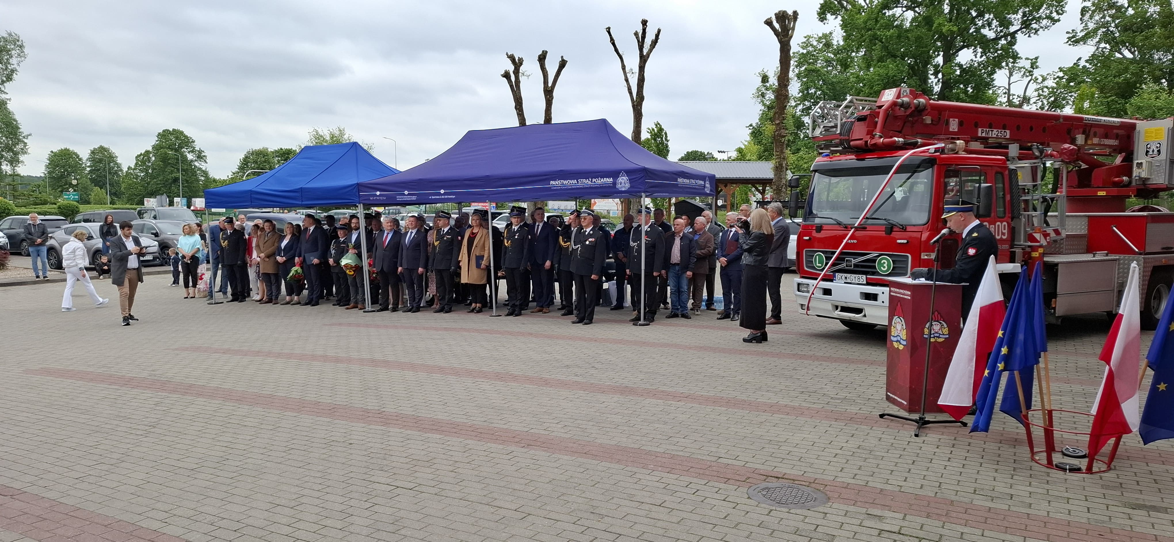 Podczas uroczystości nastąpiło uroczyste przekazanie samochodu specjalnego - podnośnika hydraulicznego SHD 23 dla Miejskiej Ochotniczej Straży Pożarnej w Prabutach