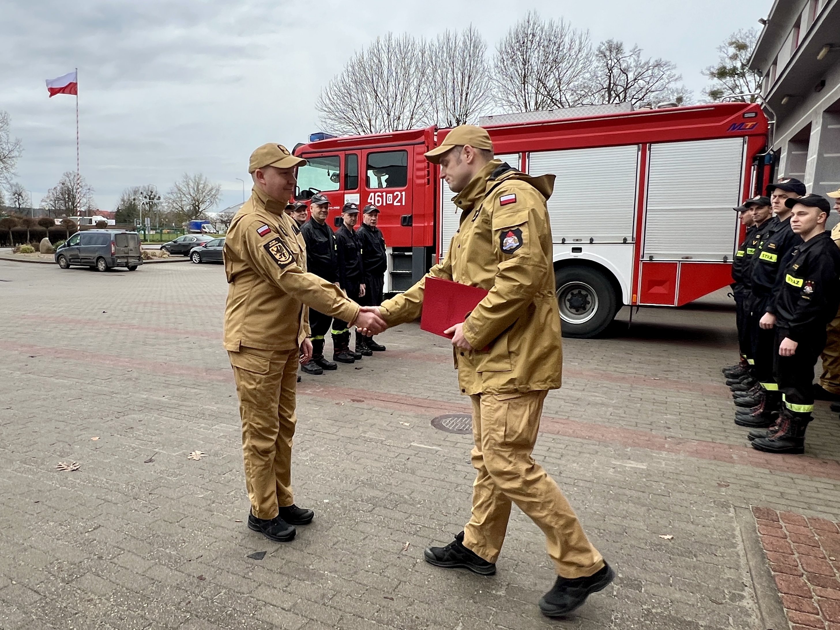 23 lutego 2024 roku w siedzibie Komendy Powiatowej Państwowej Straży Pożarnej w Kwidzynie odbyła się uroczysta zmiana służby w związku z przejściem na zaopatrzenie emerytalne naszego kolegi st. ogn. Sławomira Kłosińskiego, pełniącego służbę na stanowisku Dyżurnego Operacyjnego Stanowiska Kierowania Komendanta Powiatowego PSP w Kwidzynie.
