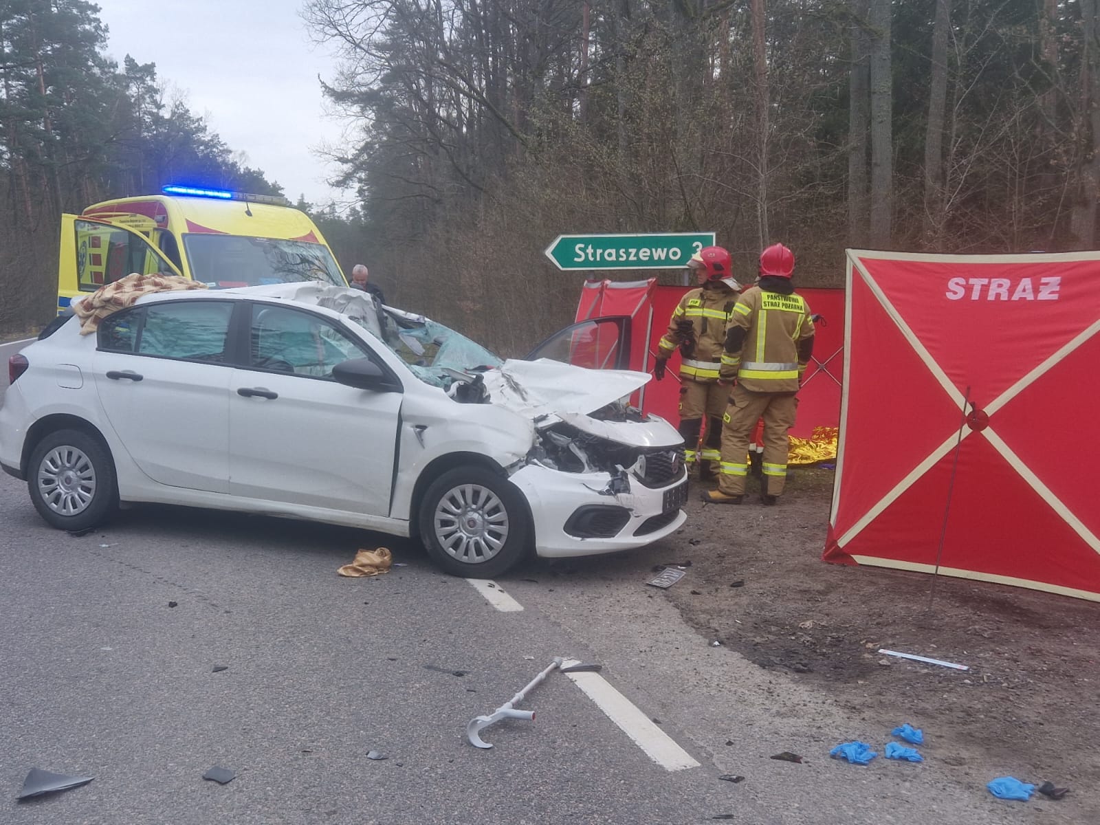 1 kwietnia 2024 roku o godzinie 15:48 Dyżurny Operacyjny Stanowiska Kierowania Komendanta Powiatowego Państwowej Straży Pożarnej w Kwidzynie przyjął zgłoszenie o wypadku samochodu osobowego z motocyklem na drodze krajowej nr 55 w miejscowości Straszewo. Samochodem osobowym podróżowały dwie osoby, natomiast motocyklem podróżowała jedna osoba.