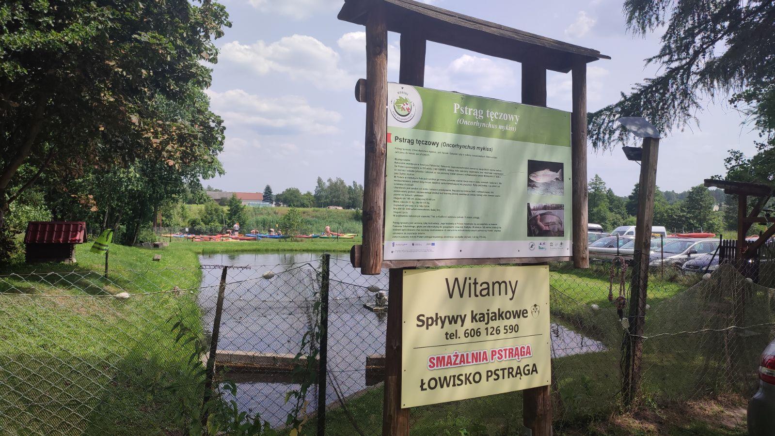 że pełni optymizmu wypłynęliśmy. Przez cały odcinek spływu nie padało, świeciło słońce, trochę się chmurzyło, było dobrze. Spływ kończyliśmy posiłkiem w smażalni „U Pani Basi”. Kto chce niech mi wieży lub nie, smaczniejszego pstrąga prosto ze stawu, później na patelnie, nigdzie równie tak dobrego nie jadłem.