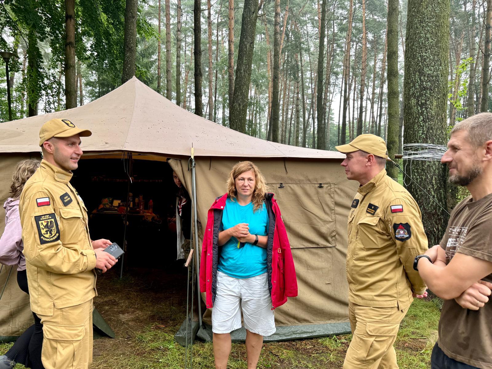 11 lipca 2024 roku Komendant Powiatowy Państwowej Straży Pożarnej w Kwidzynie mł. bryg. Piotr Sztypka wraz z funkcjonariuszami Wydziału Planowania Operacyjnego oraz Sekcji ds. Przeciwdziałania Zagrożeniom odwiedzili Harcerski Ośrodek Kolonijno-Obozowy „Skaut” w Orkuszu.