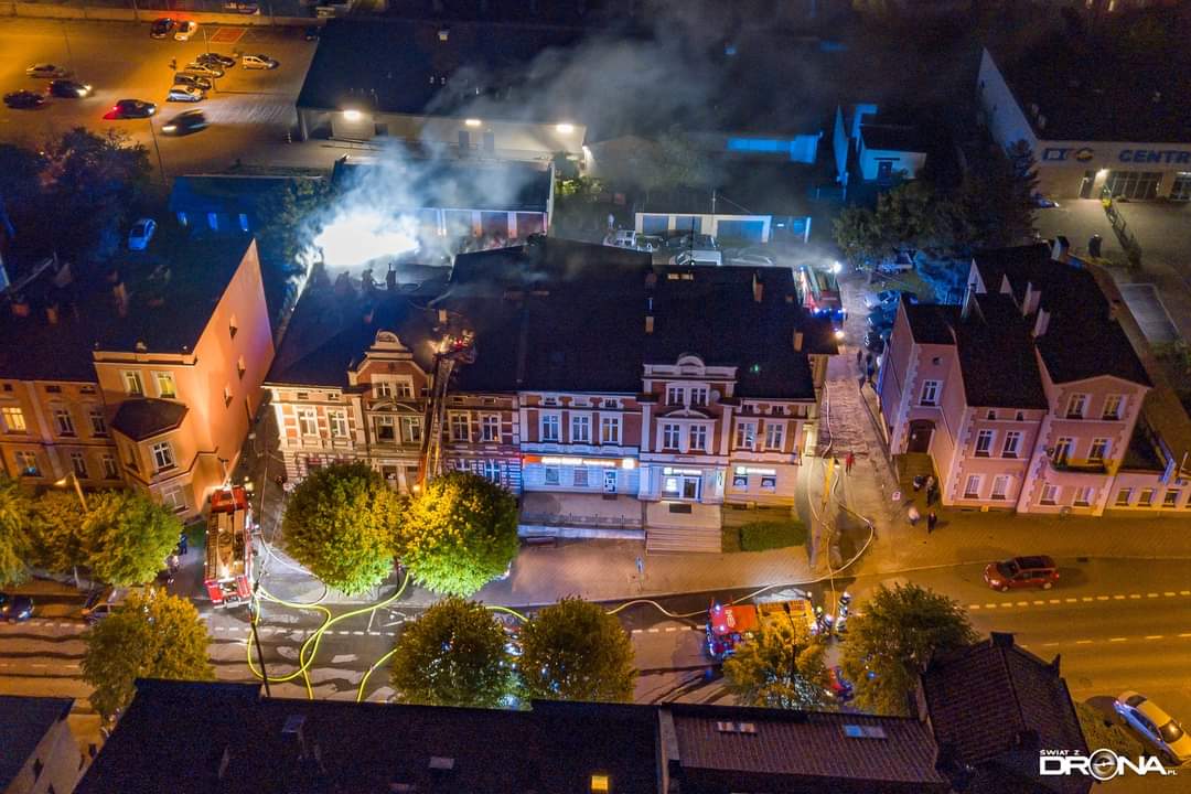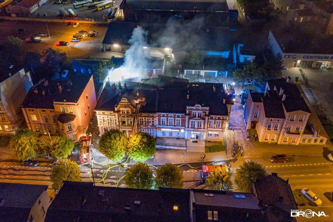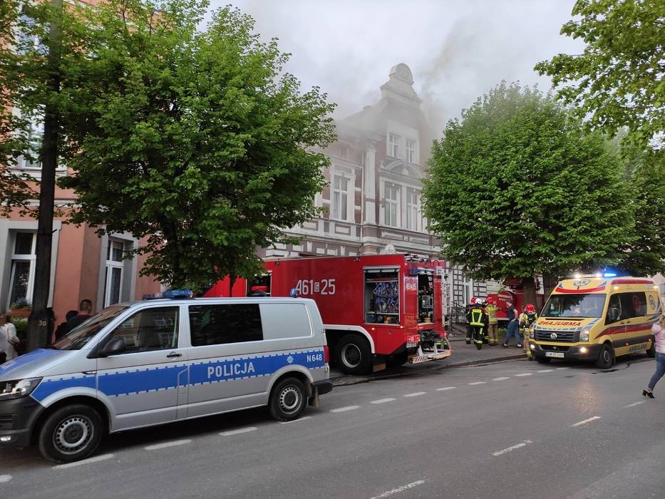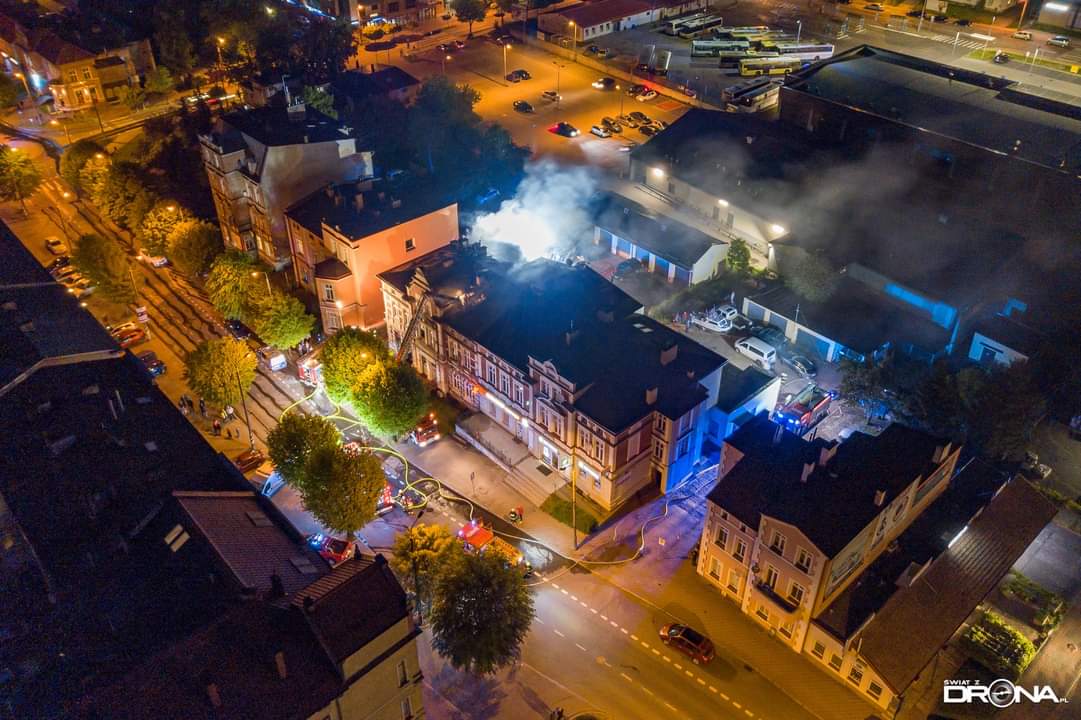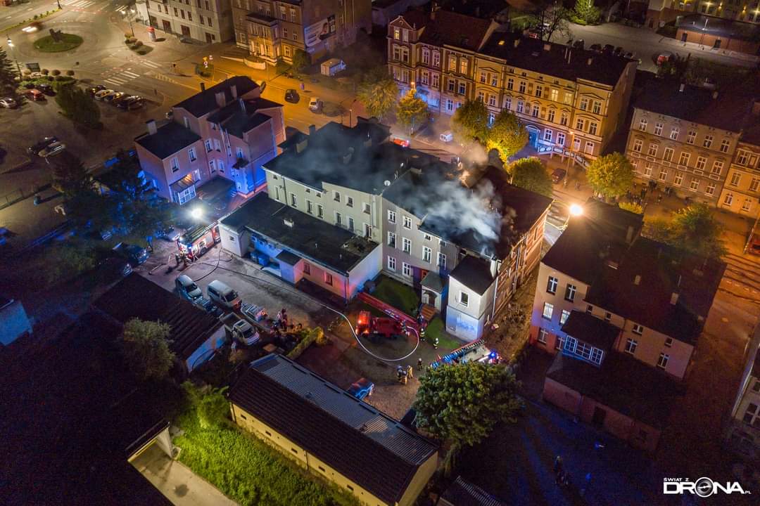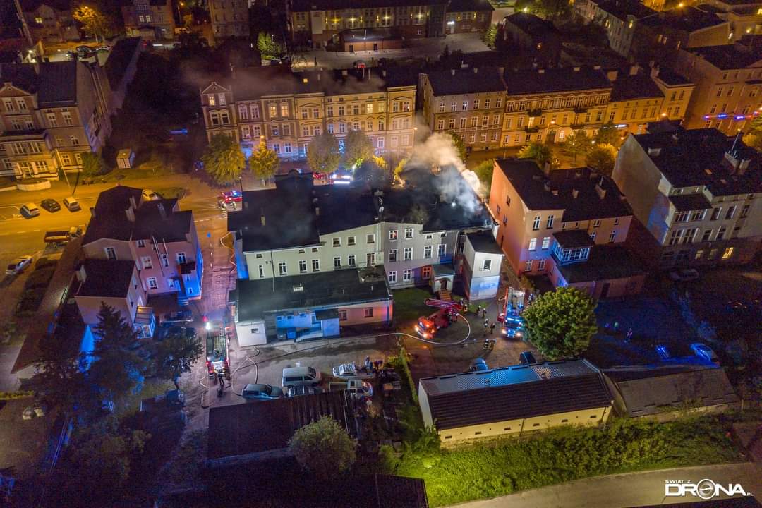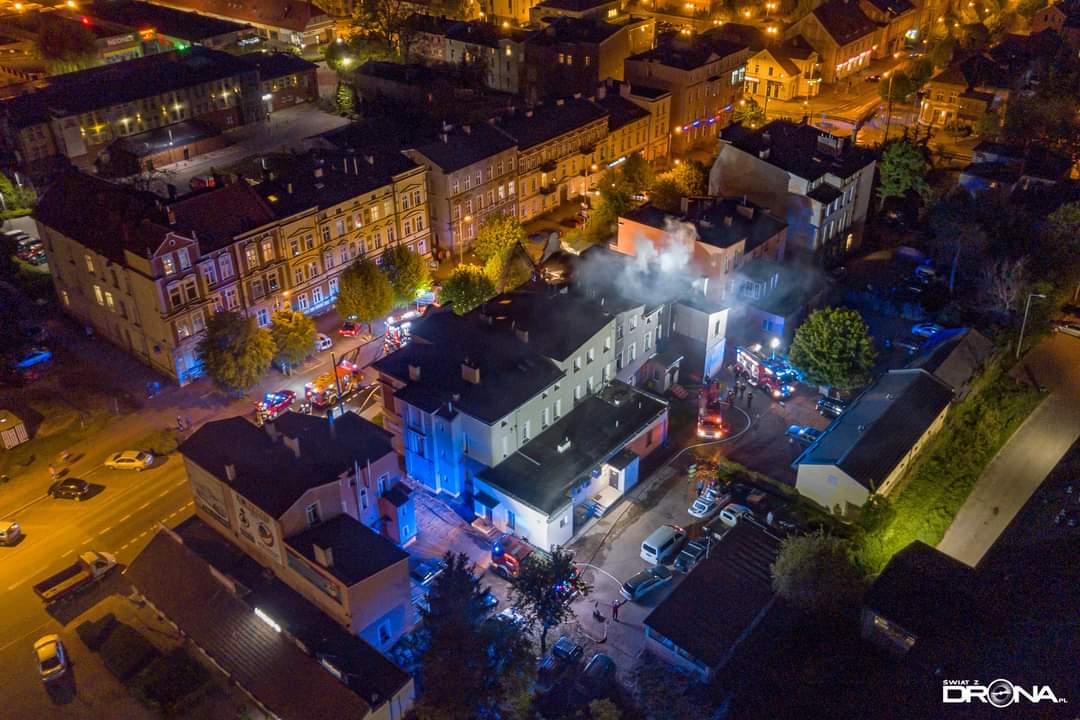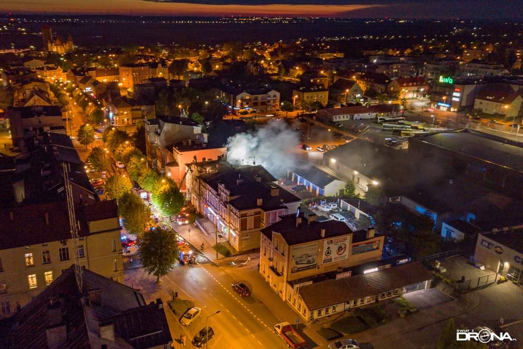 19 maja 2021 r. o godz. 20:15 dyżurny operacyjny stanowiska kierowania komendanta powiatowego PSP w Kwidzynie, przyjął zgłoszenie o pożarze w mieszkaniu budynku mieszkalno-usługowego w Kwidzynie przy ul. Chopina. Z informacji od zgłaszającej wynikało, że występuje intensywne zadymienie i jej rodzina nie może opuścić mieszkania. Do zdarzenia zadysponowanych zostało 6 zastępów z Jednostki Ratowniczo-Gaśniczej w Kwidzynie, 1 zastęp z OSP Kwidzyn, 1 zastęp z OSP Sadlinki, 1 zastęp z OSP Tychnowy, 1 zastęp z Zakładowej Służby Ratowniczej Falck Fire Serwices, 3 zespoły ratownictwa medycznego, 3 patrole Policji, Pogotowie Gazowe oraz Pogotowie Energetyczne. Strażacy zabezpieczyli miejsce zdarzenia. W trakcie docierania do źródła pożaru zlokalizowali jedną osobę i ewakuowali ją na zewnątrz. W tym samym czasie sprawiono podnośnik hydrauliczny, z małego okna na poddaszu podjęto i ewakuowano kobietę z czwórką dzieci (w tym niemowlę), którym pożar odciął drogę ucieczki. Wszystkie ewakuowane osoby, ze względu na przebywanie w strefie intensywnego zadymienia zostały przebadane przez zespoły ratownictwa medycznego. Obie kobiety i niemowlę trafiły do Kwidzyńskiego szpitala, który po diagnostyce opuściły. Do zadań strażaków należało również zlokalizowanie zarzewi ognia, który rozprzestrzenił się na poddasze, przewietrzenie i oddymienie lokali, także w przyległej kamienicy. Po ugaszeniu pożaru dokonano sprawdzenia obiektu kamerą termowizyjną oraz detektorem tlenku węgla. Miasto Kwidzyn zapewniło lokale zastępcze mieszkańcom budynku, w którym doszło do pożaru. Na miejscu zdarzenia stawili się przedstawiciele zarządcy obiektu i poszczególnych lokali tj. Zakładu Usług Mieszkaniowych i Zakładu Infrastruktury Miejskiej.