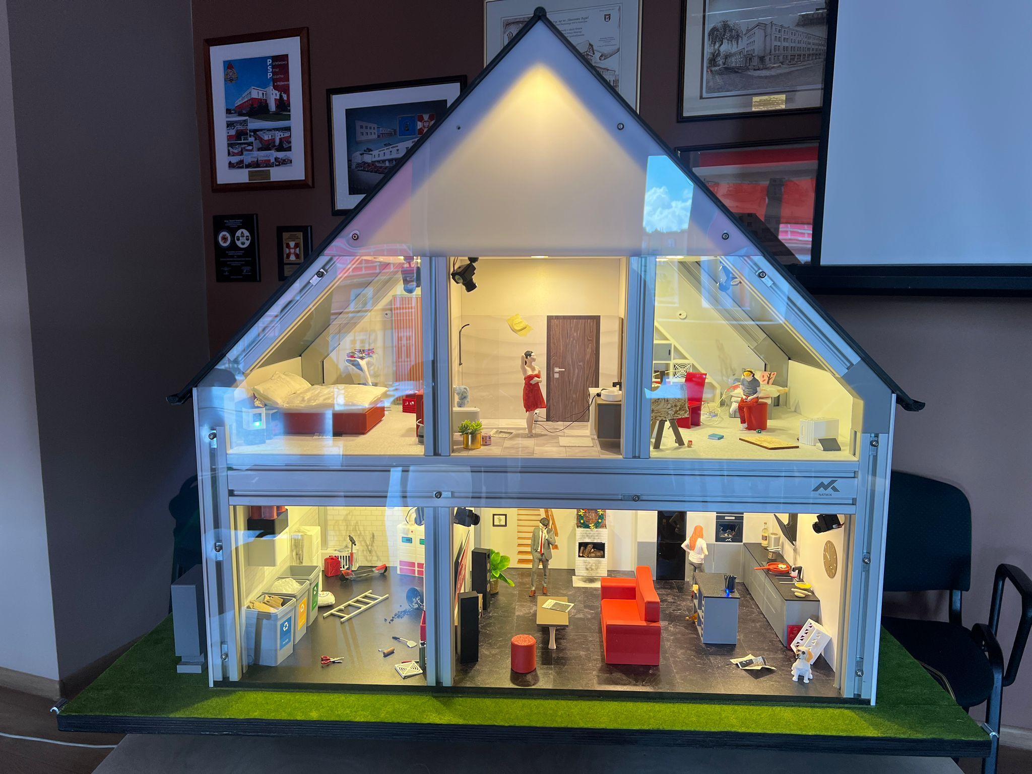 W skład Symulatora Zagrożeń Pożarowych i Edukacji Ekologicznej wchodzą: makieta budynku mieszkalnego, dwa komputery umieszczone wewnątrz symulatora, dedykowana aplikacja sterująca, wytwornica dymu, przewód zasilający i HDMI, dwie atrapy telefonów komórkowych, podstawa symulatora na kółkach oraz skrzynia transportowa.