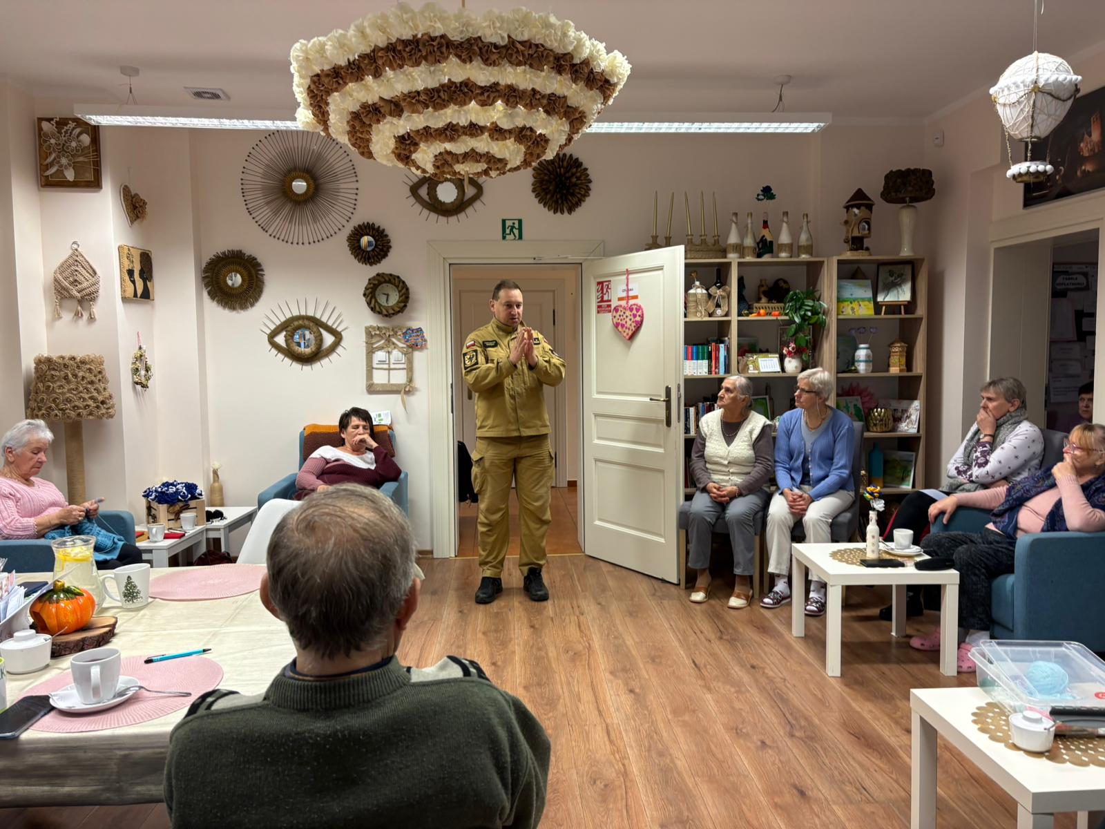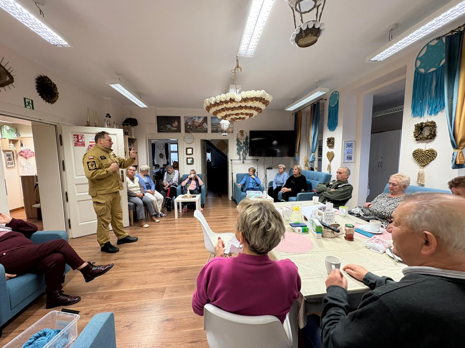 Zagrożenia okresu grzewczego, w tym zatrucie tlenkiem węgla i bezpieczeństwo pożarowe, a także rozpoznanie stanów nagłych i pierwsza pomoc były tematyką szkolenia przeprowadzonego przez kpt. Krzysztofa Skoczka w Dziennym Domu Pobytu Seniora prowadzonym przez Hufiec ZHP Kwidzyn. Uczestnicy spotkania dowiedzieli się jak unikać niebezpiecznych sytuacji oraz jak radzić sobie w sytuacjach gdy ktoś wymaga udzielenia pierwszej pomocy. Liczne pytania seniorów świadczą o ich zainteresowaniu i świadomości odpowiedzialności za nasze wspólne bezpieczeństwo.
