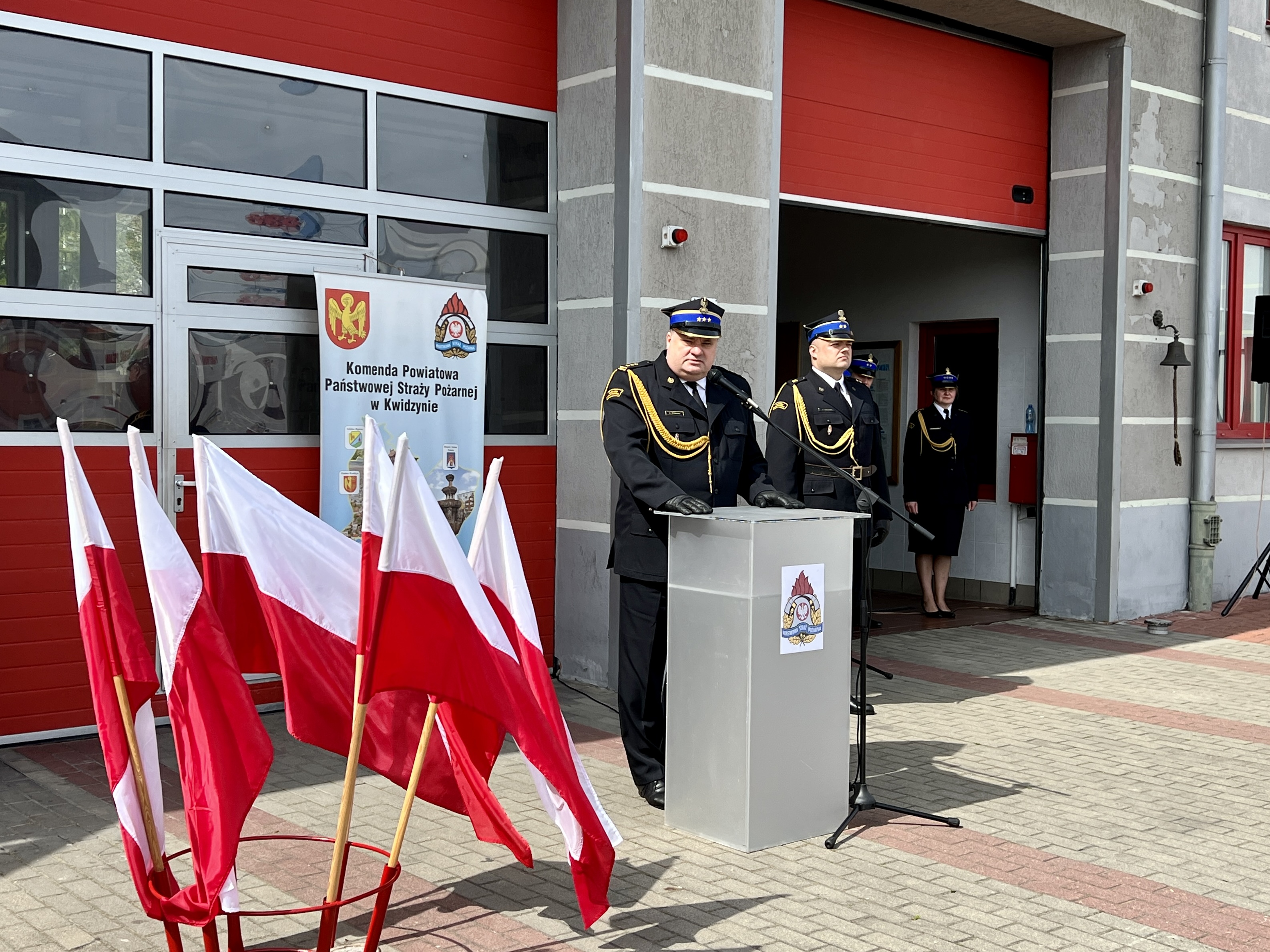 Po złożeniu przez dowódcę uroczystości meldunku Wicewojewodzie Pomorskiemu Panu Aleksandrowi Jankowskiemu, wprowadzeniu Pocztu Sztandarowego Komendy Powiatowej Państwowej Straży Pożarnej w Kwidzynie, podniesieniu flagi państwowej oraz odśpiewaniu hymnu państwowego Komendant Powiatowy Państwowej Straży Pożarnej w Kwidzynie, bryg. Robert Sawicki powitał przybyłych gości oraz odczytał list Prezesa Rady Ministrów Mateusza Morawieckiego.