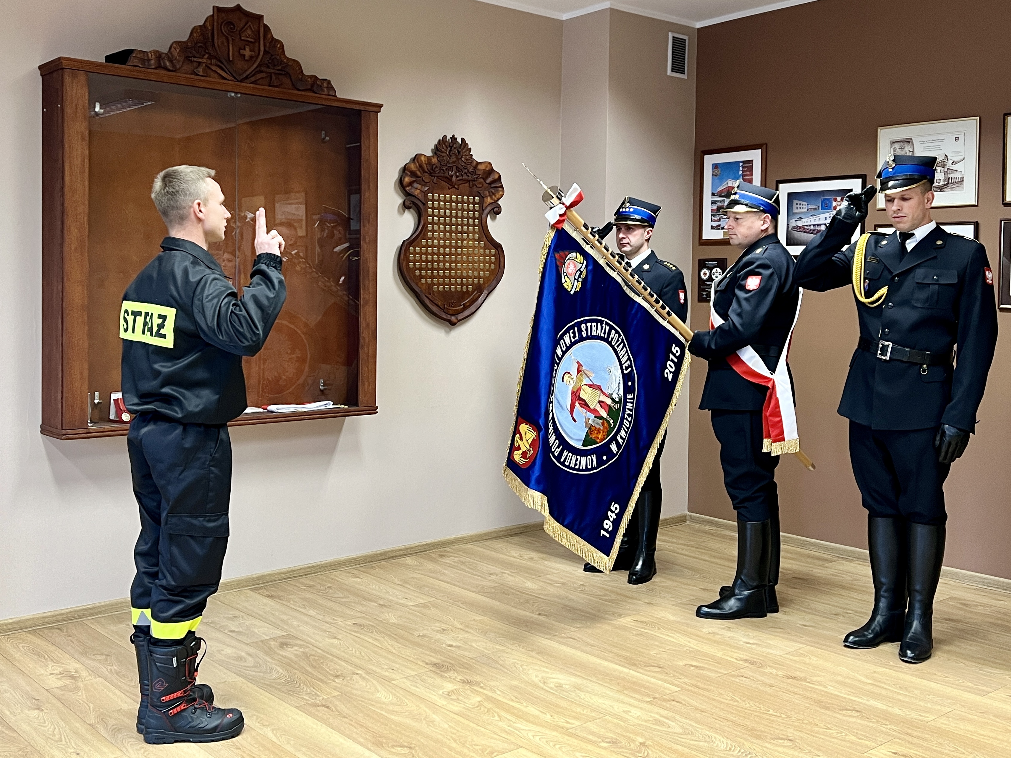 24 października 2023 roku w siedzibie naszej komendy odbyła się uroczysta zbiórka z okazji ślubowania naszego kolegi, strażaka Jakuba Blokowskiego. Ten dzień z pewnością zapadnie w jego pamięci jako jednej z najważniejszych dni w całym życiu zawodowym.