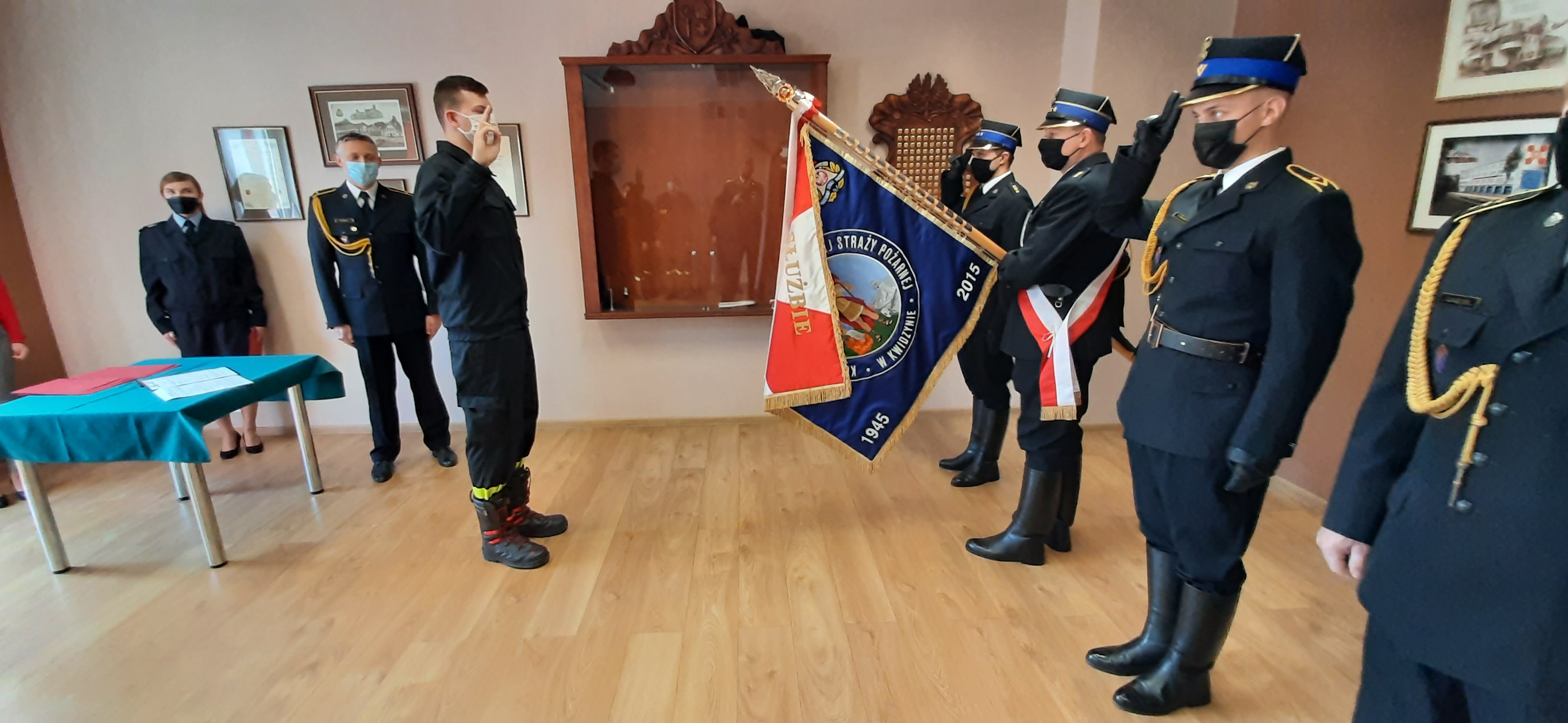Strażak Dominik Organiak złożył ślubowanie i został włączony w szeregi funkcjonariuszy Państwowej Straży Pożarnej.