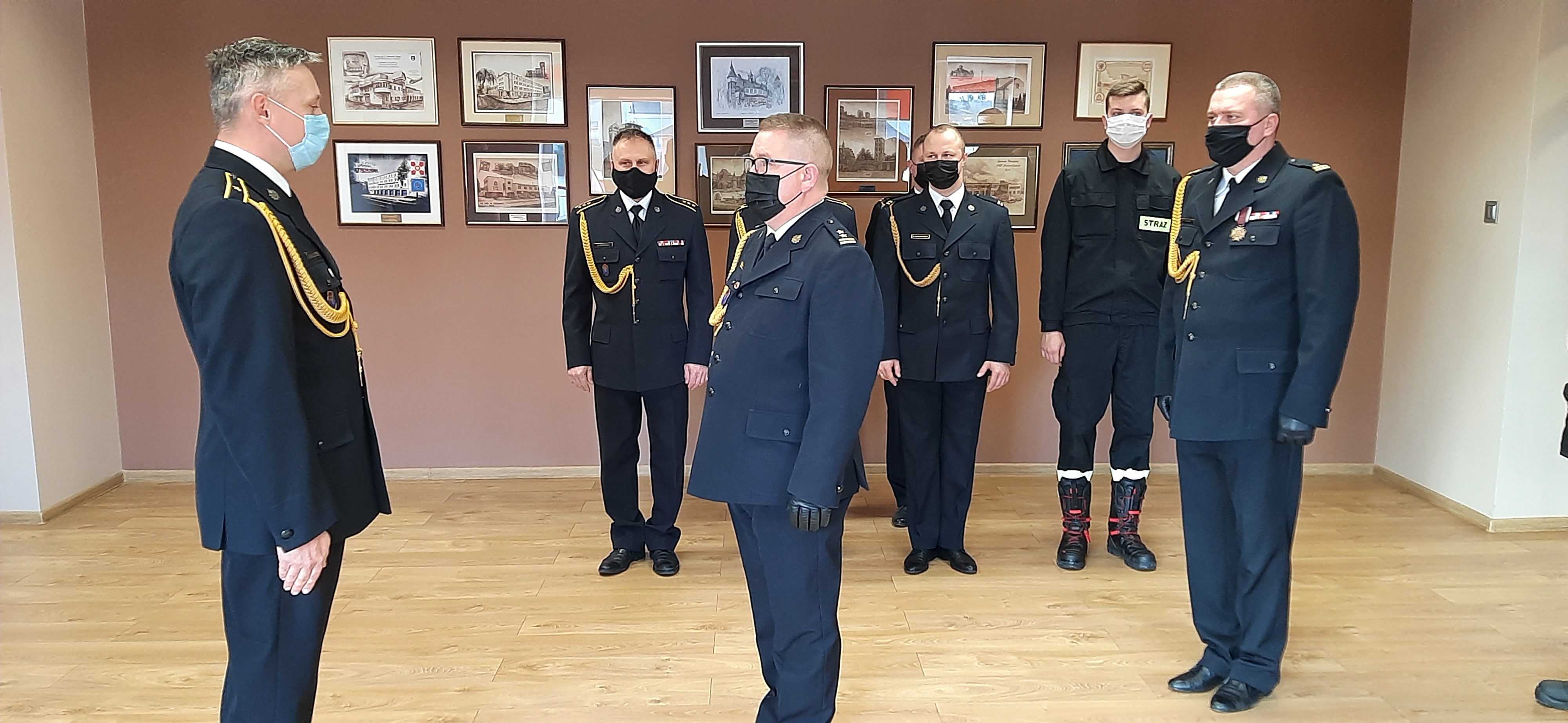 Bryg. Wojciech Berent poinformował o przyznaniu dwunastu nagród komendanta powiatowego i dokonał symbolicznego wręczenia decyzji mł. bryg Tomaszowi Szczęsnemu oraz st. kpt. Damianowi Torbowskiemu. Komendant powiatowy podziękował funkcjonariuszom i pracownikom cywilnym Komendy za trud i zaangażowanie na rzecz służby oraz wyraził swoje nadzieje na kolejne awanse, mianowania i nagrody.