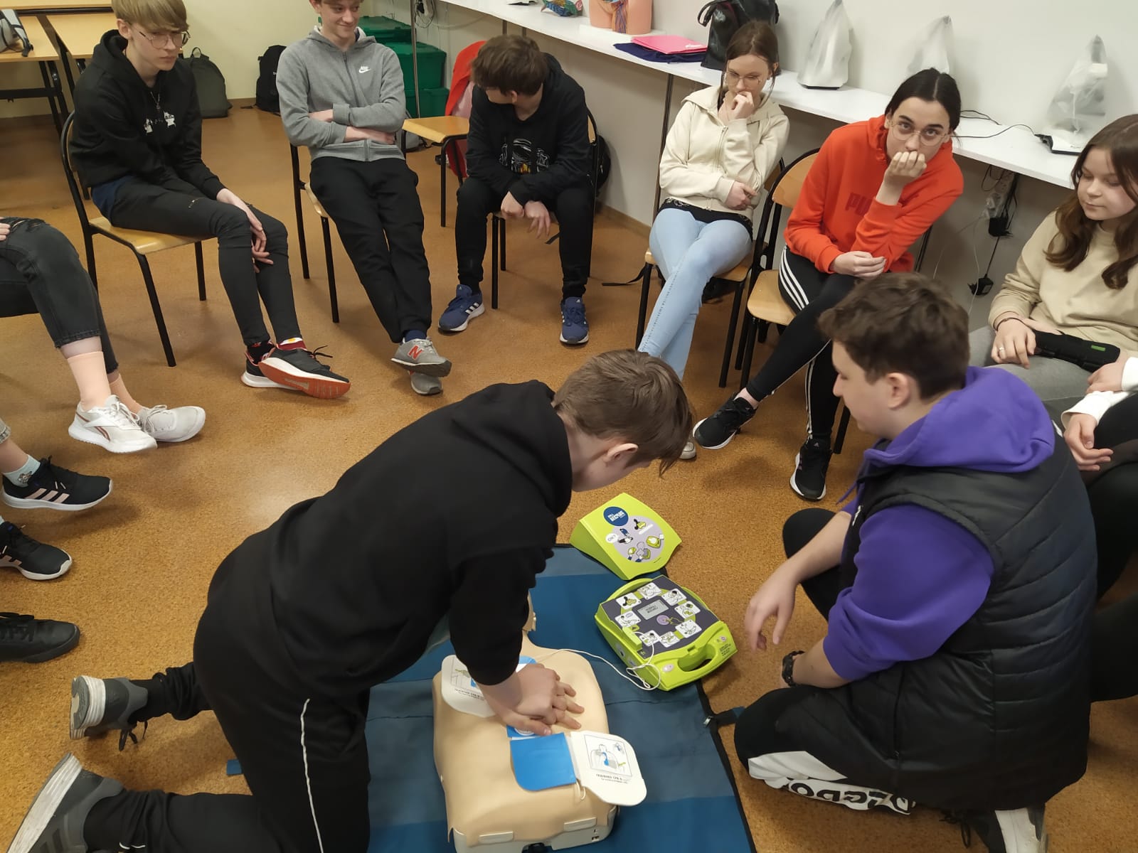 Zasady zastosowania automatycznego defibrylatora zewnętrznego AED były tematyką naszej wizyty w szkołach podstawowych w Liczu i w Rakowcu (gm. Kwidzyn). W ramach edukacji dla bezpieczeństwa, uczniowie ósmych klas, poznali budowę, obsługę oraz sposób działania AED. Poznali także miejsca w naszej okolicy, gdzie to urządzenie jest zlokalizowane oraz mieli możliwość przećwiczenia resuscytacji krążeniowo-oddechowej z zastosowaniem AED.