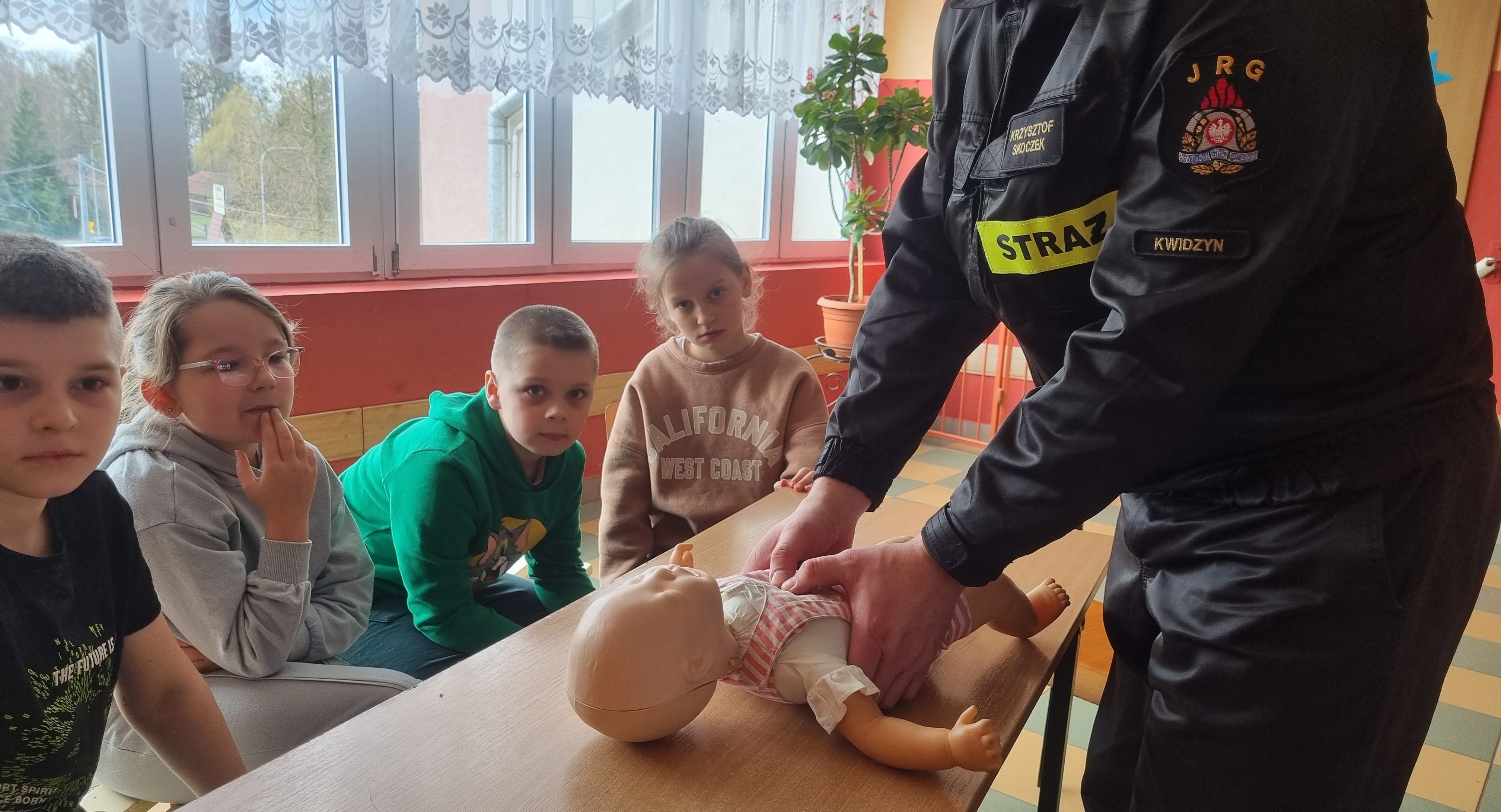 Uczniowie młodszych klas w Szkole Podstawowej w Liczu, podczas naszej wizyty poznały zasady resuscytacji osoby dorosłej, niemowlęcia, zastosowania pozycji bezpiecznej oraz obsługi AED.