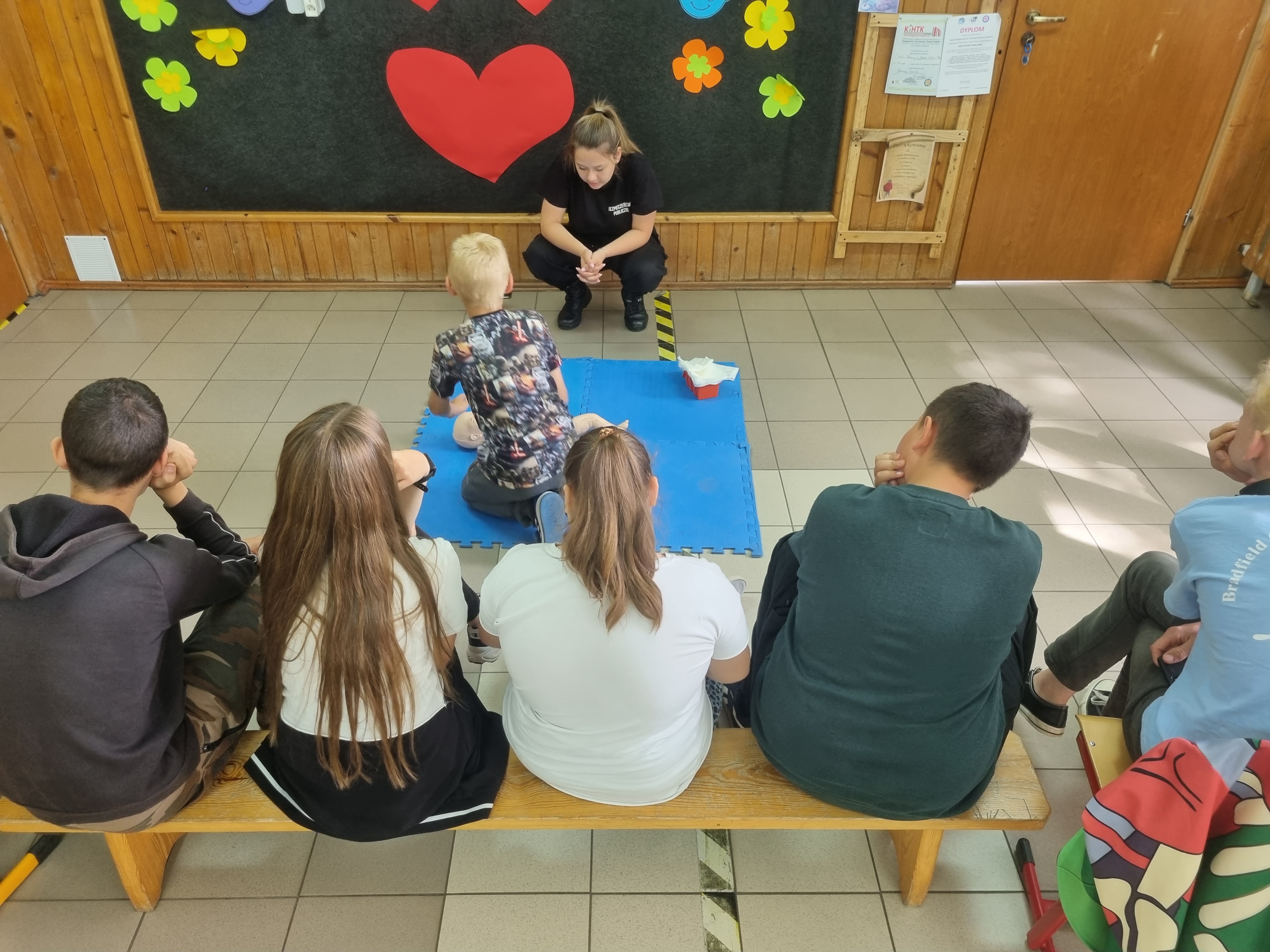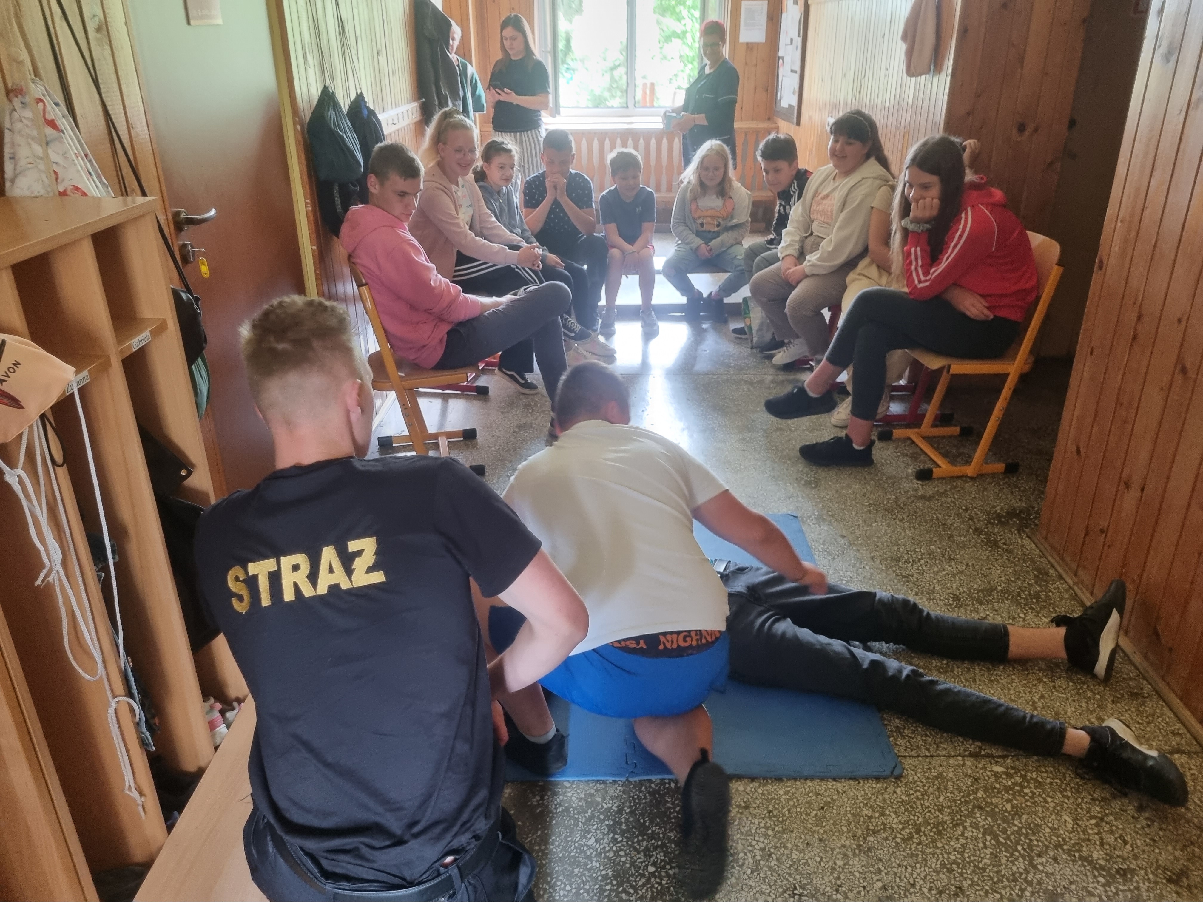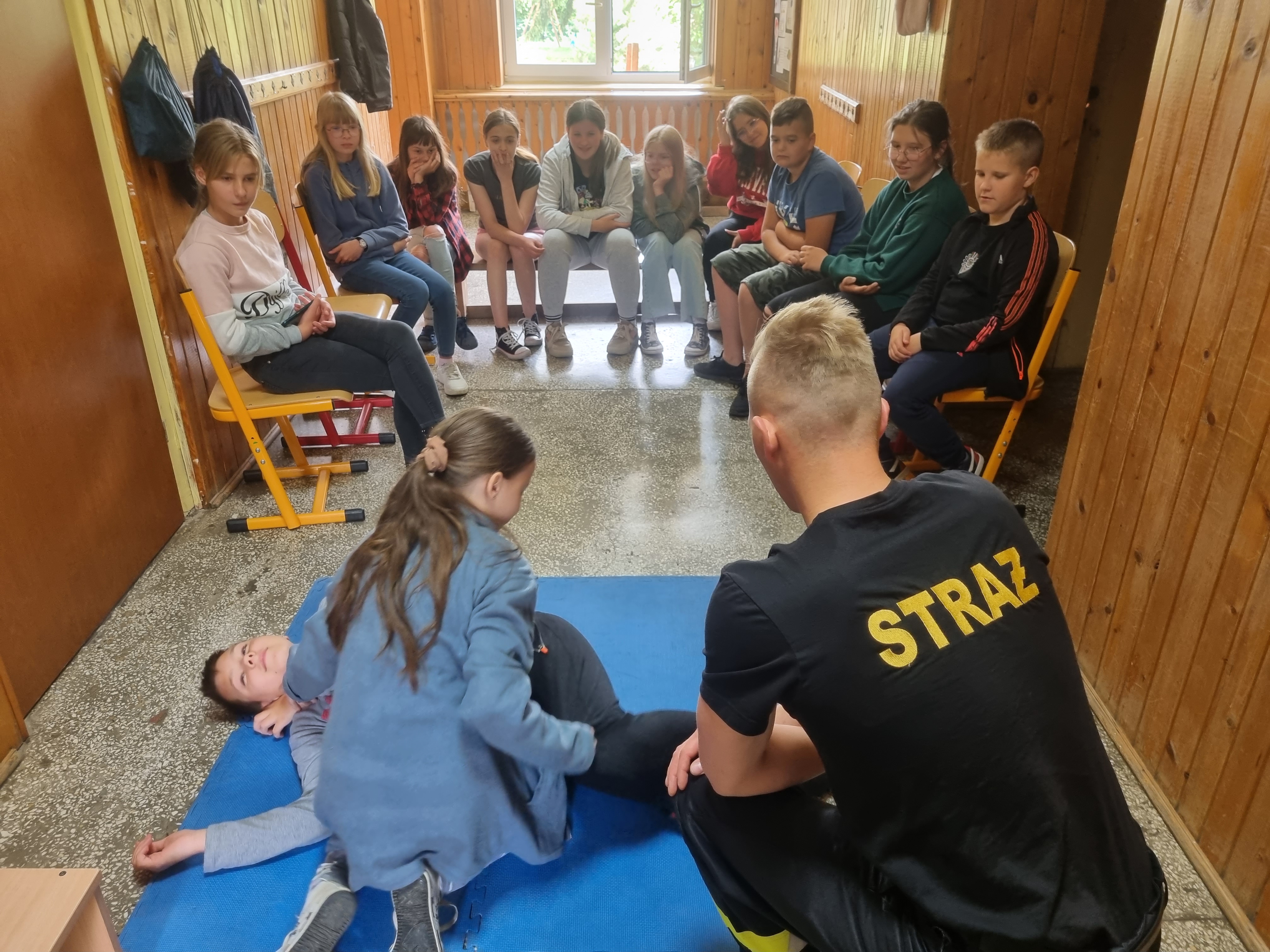 Bezpieczeństwo własne, ocena stanu poszkodowanego, resuscytacja krążeniowo-oddechowa, pozycja bezpieczna, pozycja czterokończynowa i wezwanie pomocy były tematem wspólnych ćwiczeń, w które zaangażowała się także młodzież z klasy o profilu Bezpieczeństwo Publiczne z Zespołu Szkół Ogólnokształcących nr 2 w Kwidzynie.