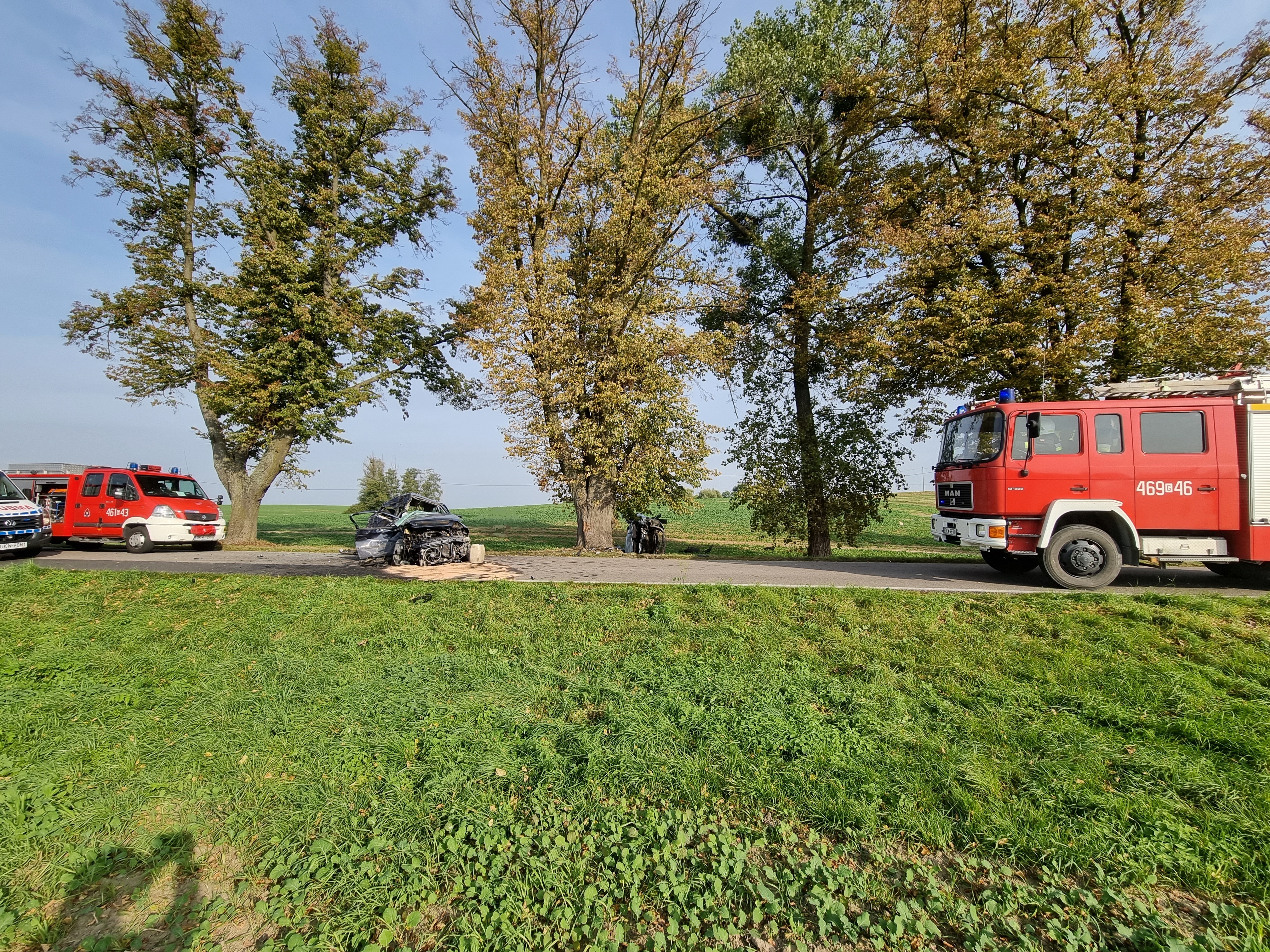 04 października 2021 r. o godz. 14:18 dyżurny operacyjny stanowiska kierowania komendanta powiatowego PSP w Kwidzynie, przyjął zgłoszenie o wypadku komunikacyjnym z udziałem dwóch samochodów osobowych na drodze pomiędzy Krzykosami a Cyganami gm. Gardeja. Do zdarzenia zadysponowane zostały 3 zastęp z Jednostki Ratowniczo-Gaśniczej w Kwidzynie, 1 zastęp z OSP Rozajny, 2 zespoły ratownictwa medycznego (ZRM) i Policja. Działania strażaków polegały na zabezpieczeniu miejsca zdarzenia, stabilizacji pojazdu, który znajdował się na polu na boku, wykonaniu dostępu do kierowcy znajdującego się w tym pojeździe, pomocy ZRM w udzielaniu medycznych czynności ratunkowych, udzieleniu kwalifikowanej pierwszej pomocy osobie znajdującej się w pojeździe stojącym na drodze. Strażacy pomogli w transporcie osób poszkodowanych do ZRM oraz dokonali sorpcji płynów eksploatacyjnych z jezdni. Straty oszacowano na ok. 7 tys. zł. Przyczyna zdarzenia nieustalona.