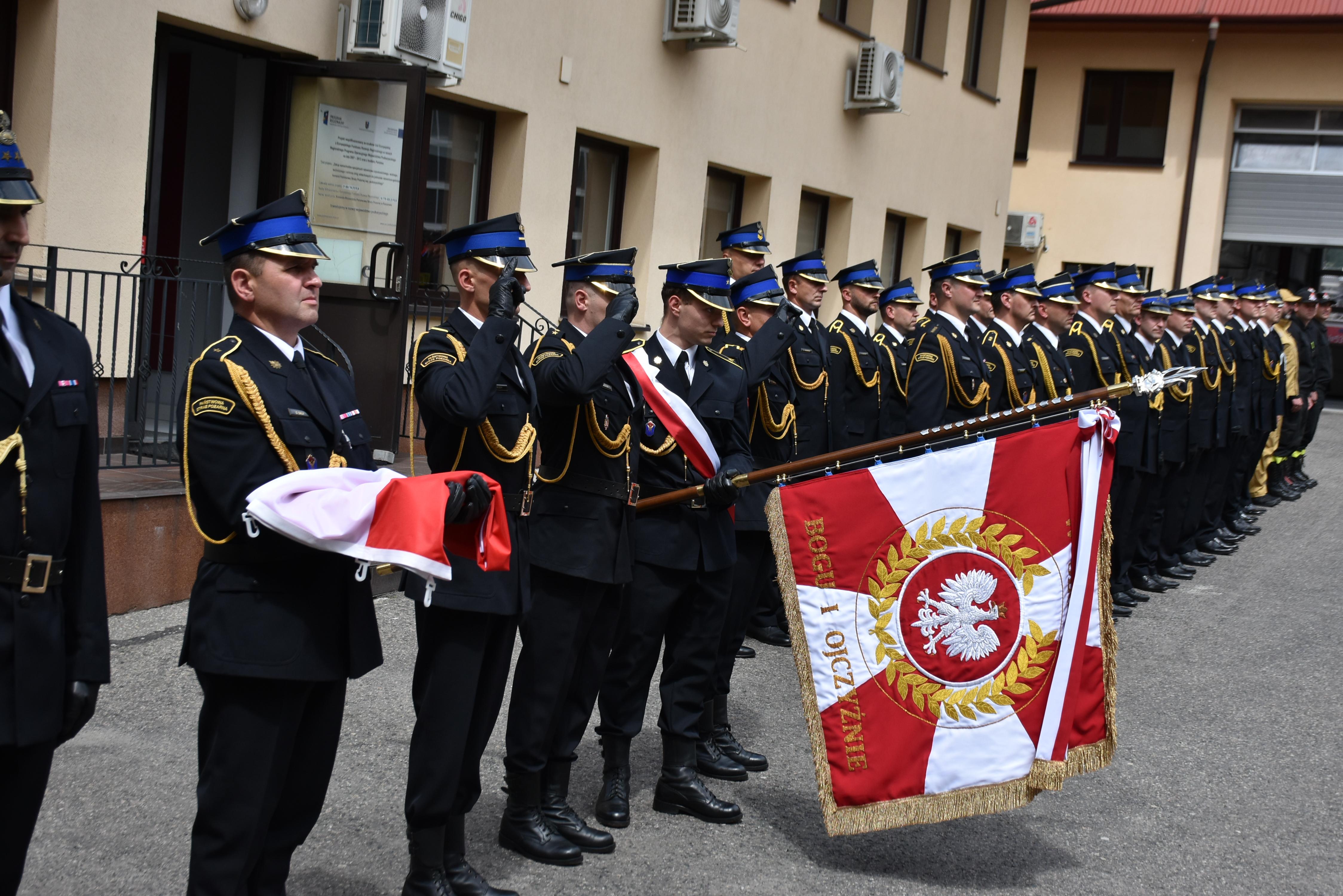 Uroczysta zbiórka była okazją do wręczenia medali i odznaczeń oraz awansów na wyższe stopnie służbowe dla zasłużonych strażaków.