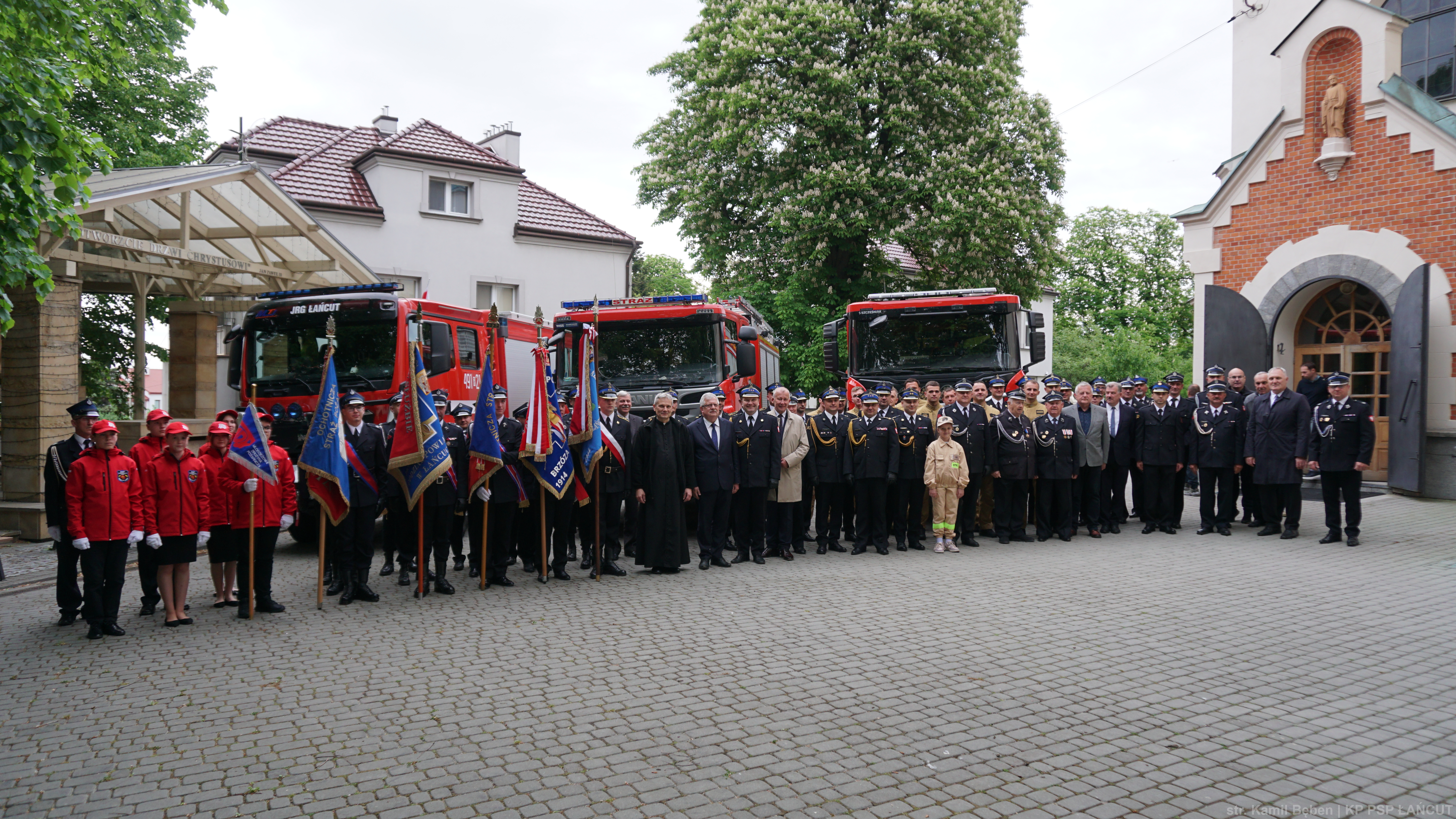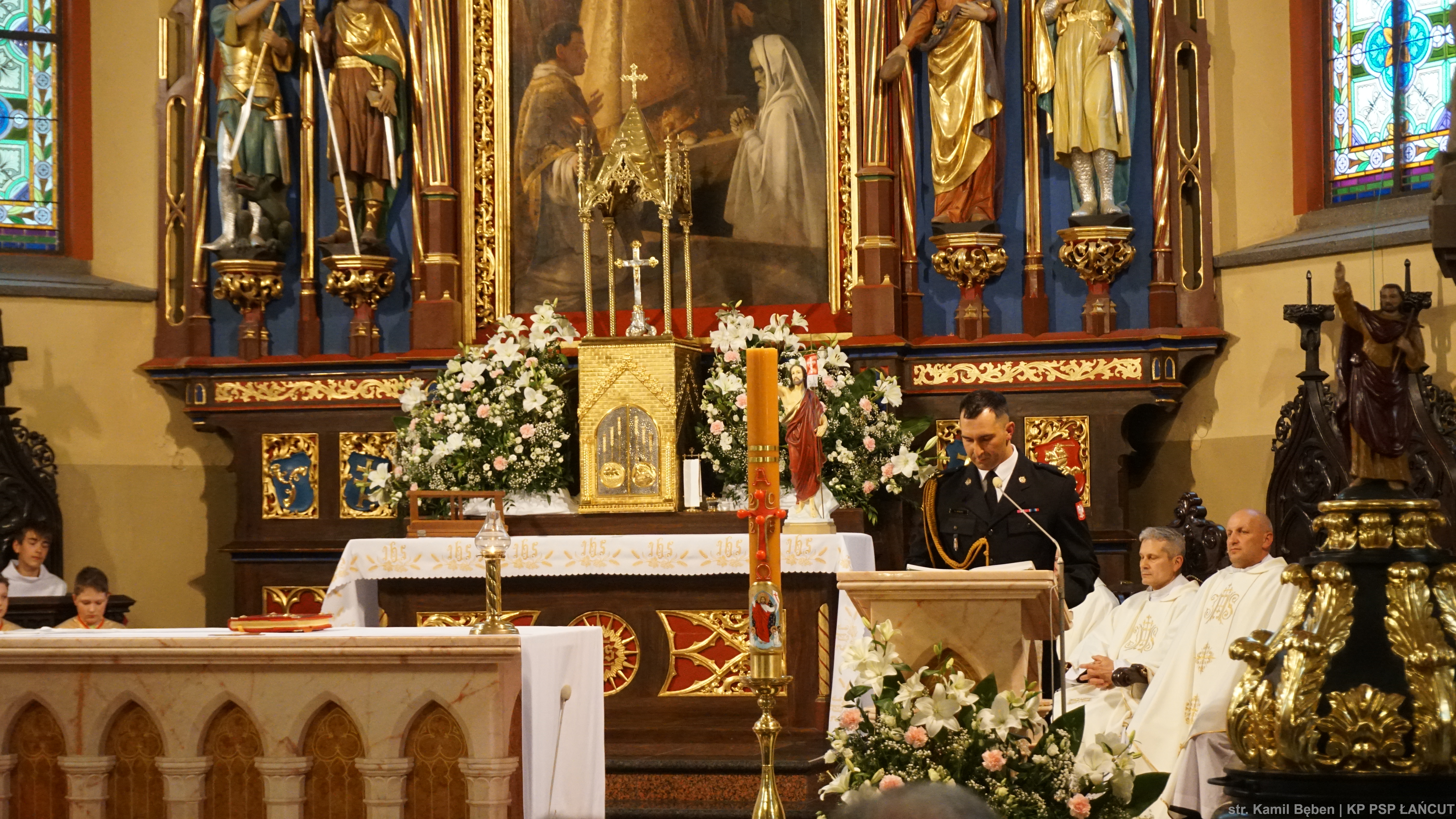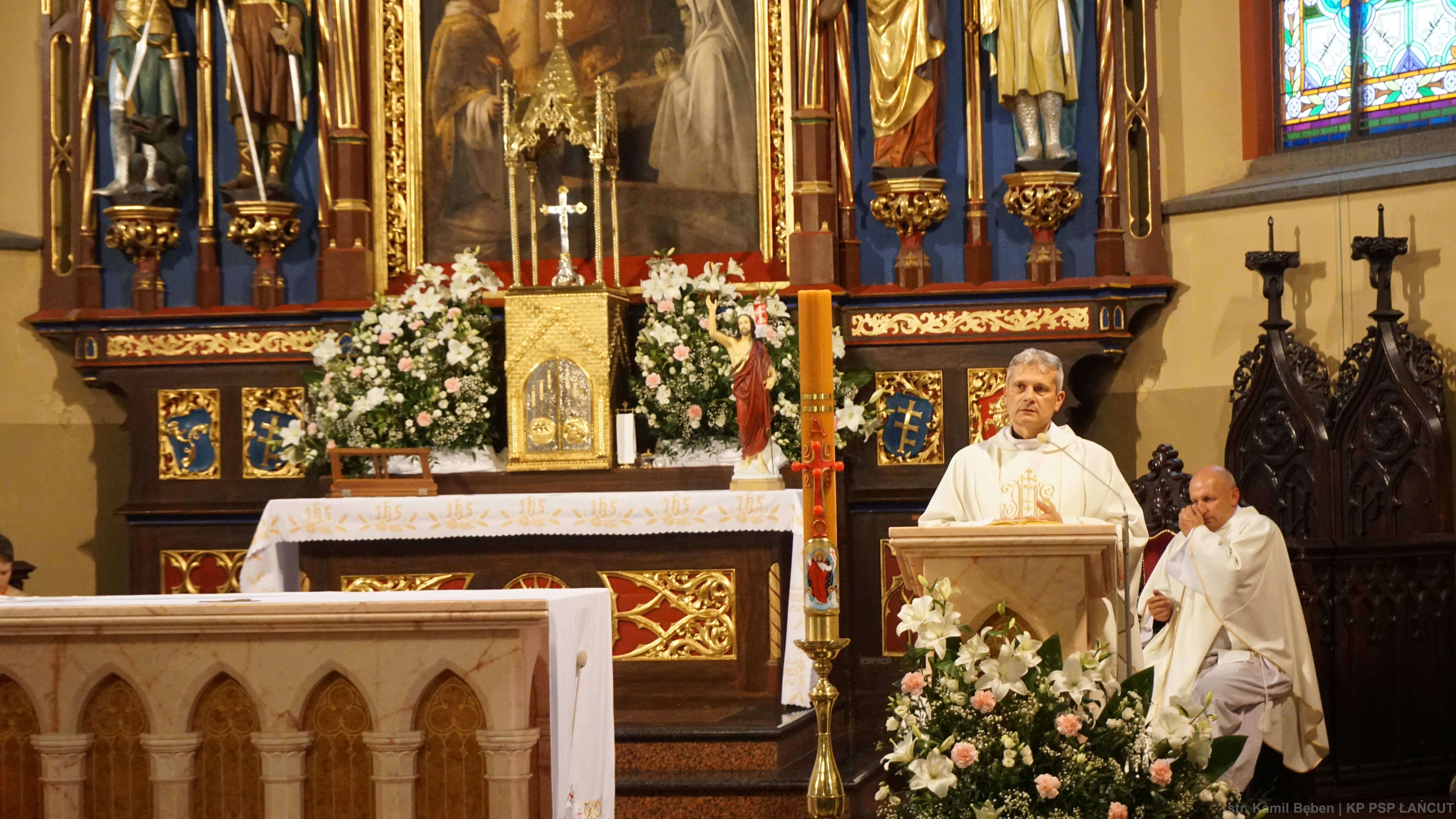 5 maja 2025 roku w Kościele Farnym pw. Św. Stanisława Biskupa Męczennika w Łańcucie została odprawiona Msza Święta w intencji funkcjonariuszy z Komendy Powiatowej Państwowej Straży Pożarnej w Łańcucie oraz druhen i druhów z jednostek Ochotniczych Straży Pożarnych z terenu powiatu łańcuckiego. Uroczystą Mszę Świętą odprawił Ks. Grzegorz Garbacz - Kapelan Powiatowy Strażaków powiatu łańcuckiego.