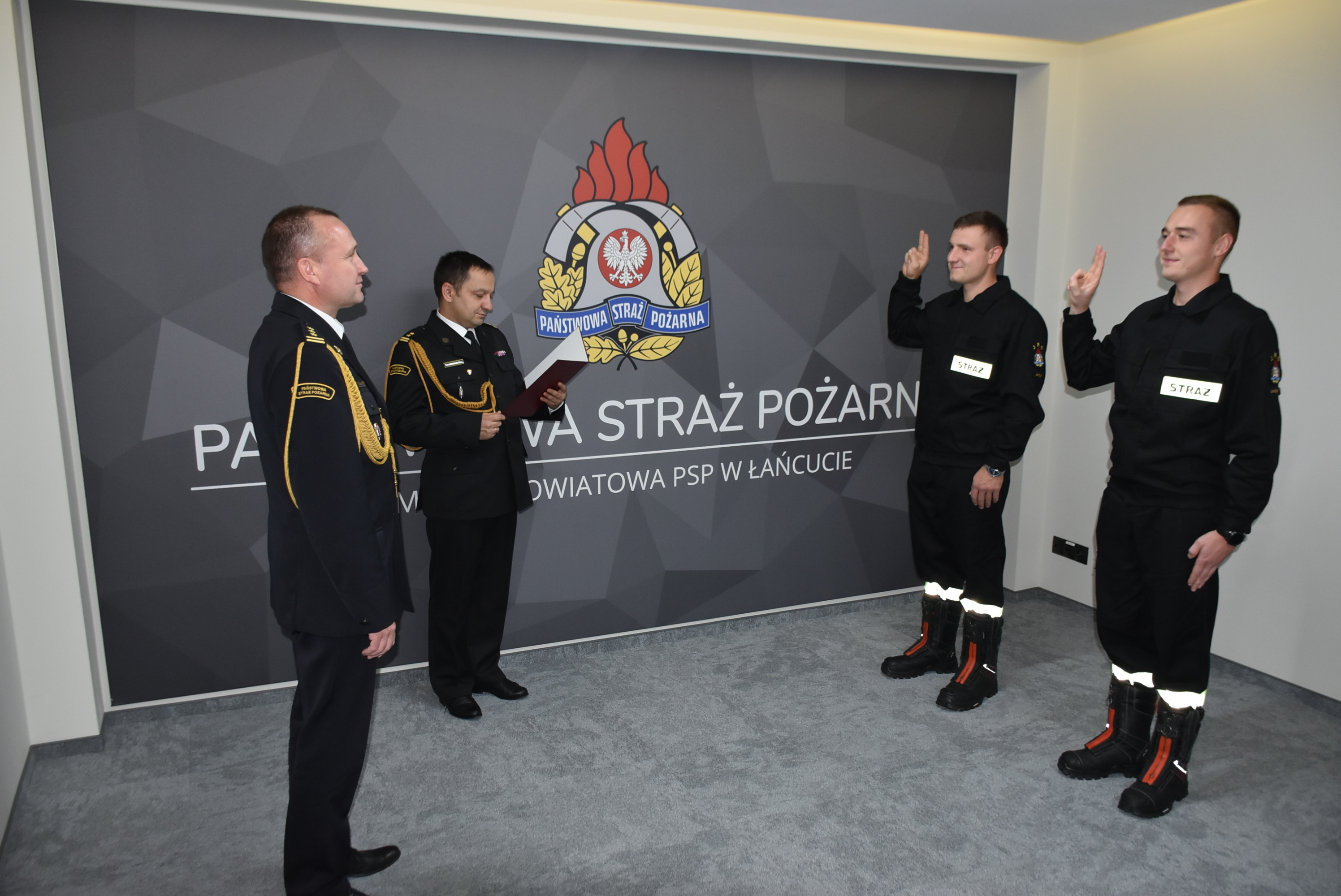 1 października 2022 roku odbyła się uroczystość ślubowania nowych funkcjonariuszy łańcuckiej komendy. W tym dniu strażacy Piotr Tomaszek i Bartłomiej Reizer rozpoczęli służbę w Jednostce Ratowniczo Gaśniczej Komendy Powiatowej Państwowej Straży Pożarnej w Łańcucie na stanowisku stażysta. Ślubowanie przyjął Komendant Powiatowy PSP st. bryg. Bogusław Golenia w obecności Naczelnika Wydziału Organizacyjno – Kwatermistrzowskiego bryg. Marcina Filipa.