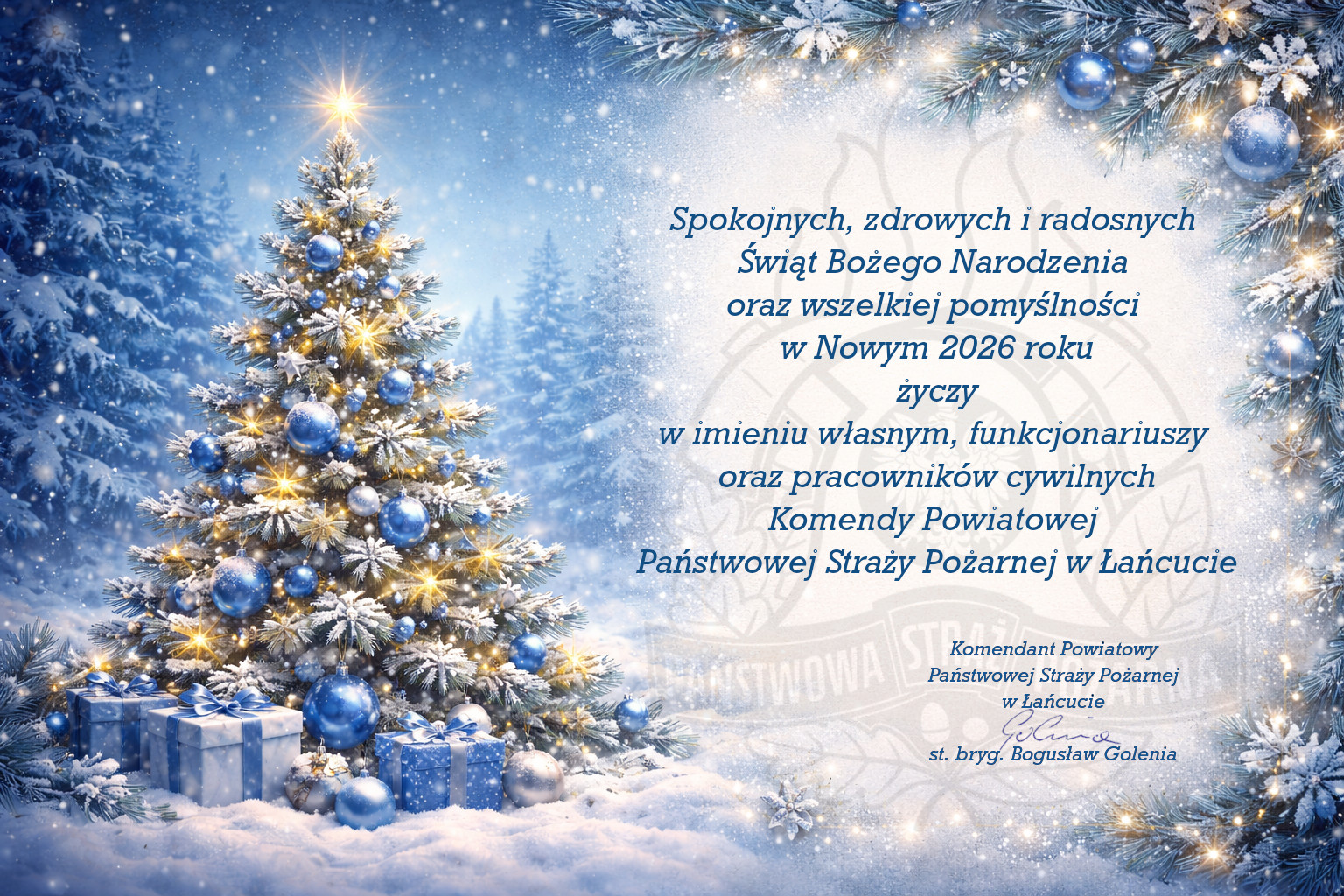 Życzenia Świąteczno-noworoczne Komendanta Powiatowego PSP w Łańcucie 23.12.2025 Zdjęcia (1) Pokaż zdjęcie 1 z galerii.
