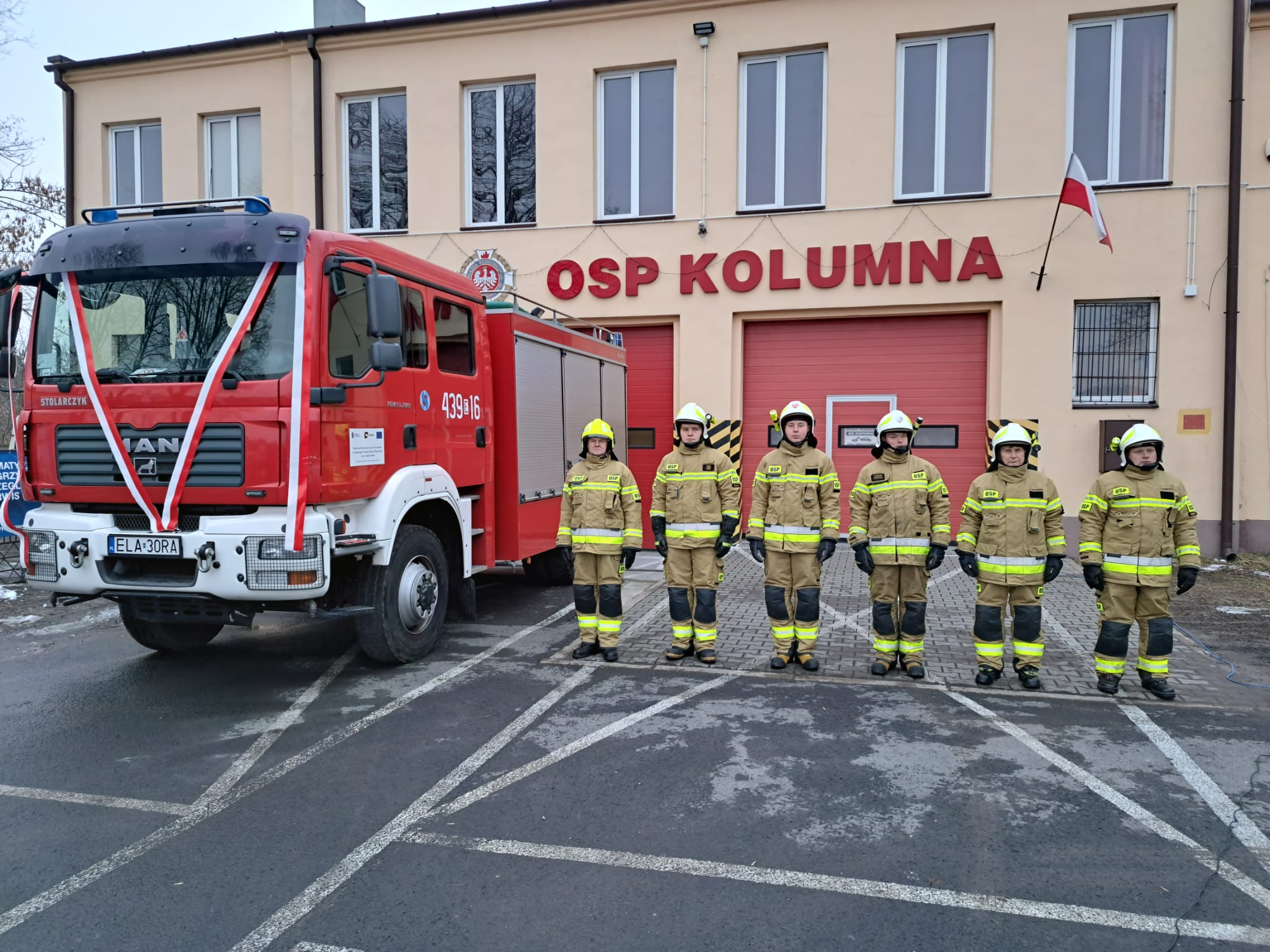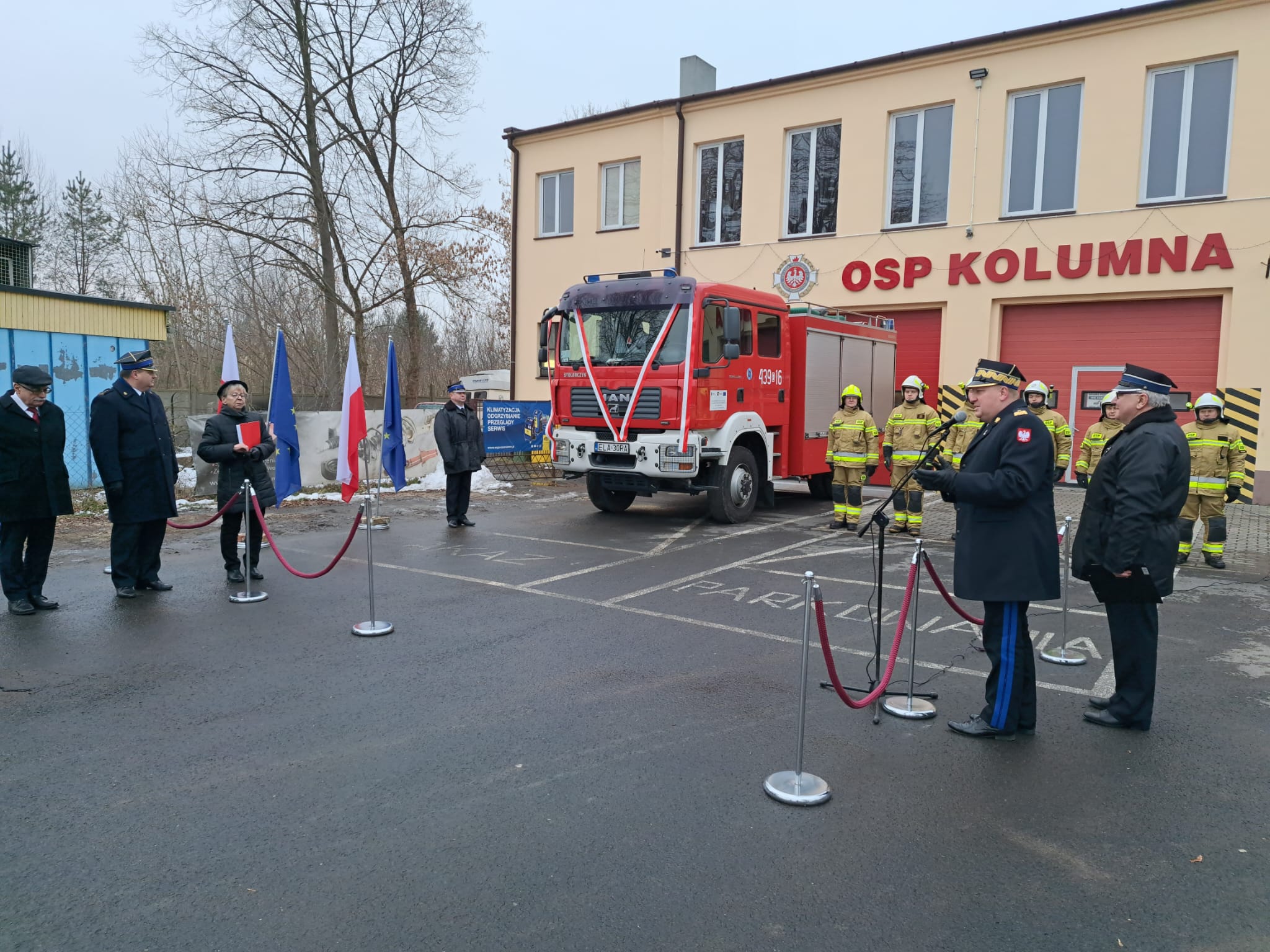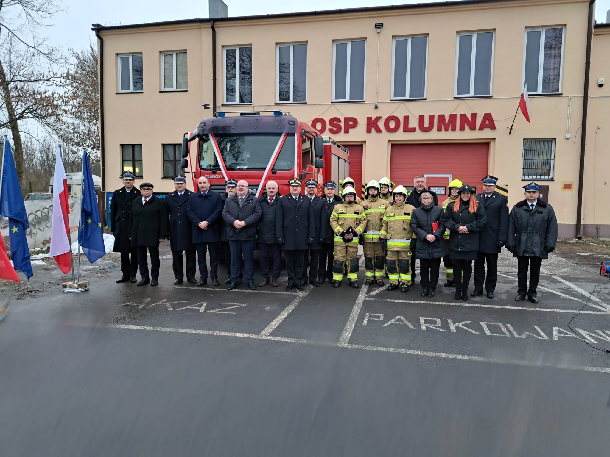 10 lutego w OSP KSRG Kolumna odbyła się uroczystość oficjalnego przekazania samochodu GBA 2,5/16 MAN z Komenda Powiatowa Państwowej Straży Pożarnej w Łasku.