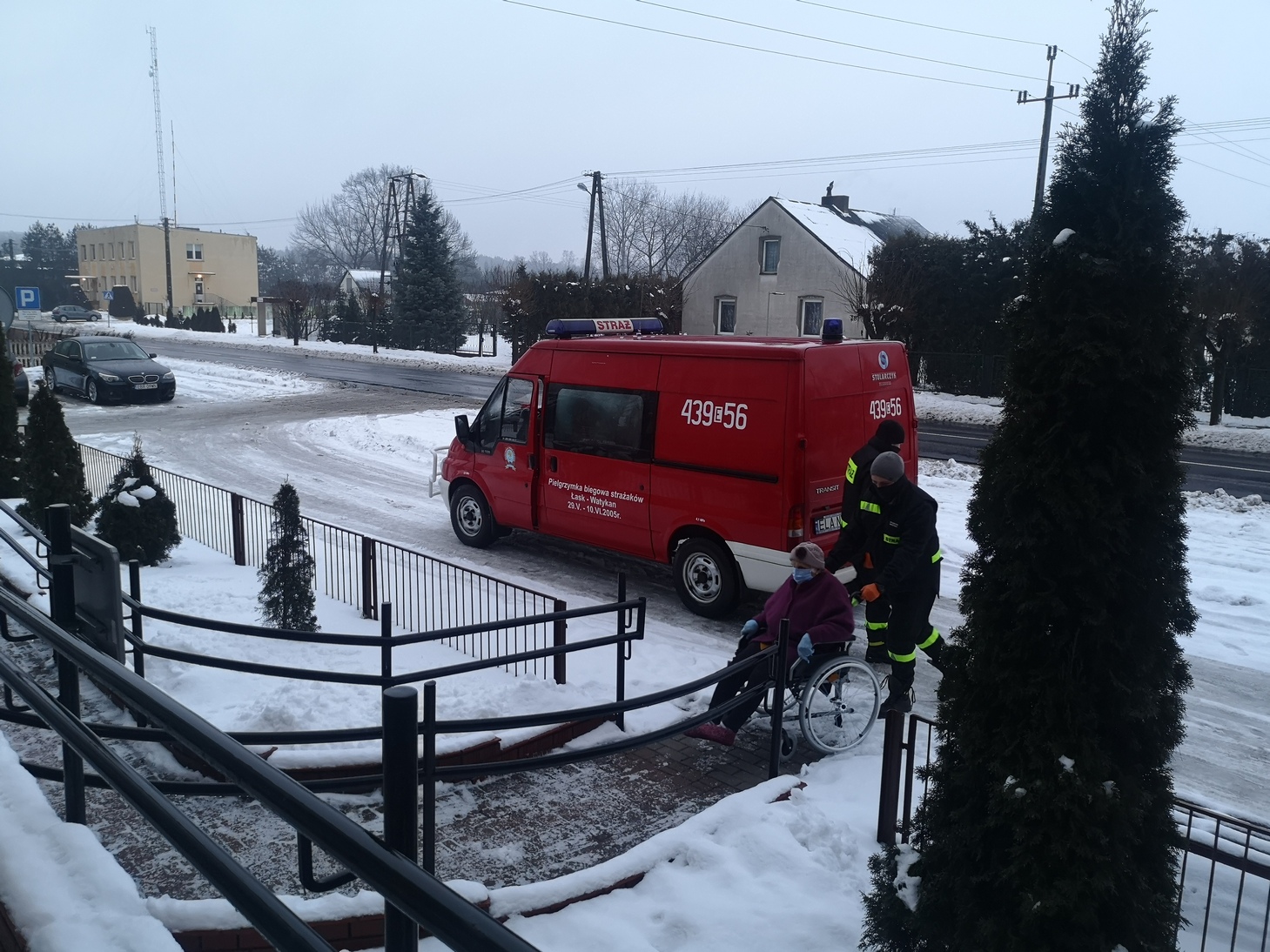 Strażacy z powiatu łaskiego pomagają w transporcie osób do punktów szczepień