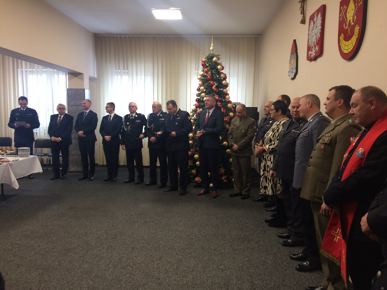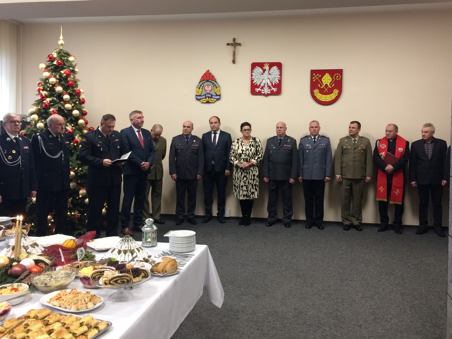 W dniu 16 grudnia br. w siedzibie Komendy Powiatowej PSP w Łasku odbyła się uroczysta wigilia strażacka z udziałem funkcjonariuszy Komendy, pracowników cywilnych oraz zaproszonych gości. Wigilia rozpoczęła się od przekazania betlejemskiego światła pokoju przez łaskich harcerzy. Następnie st. bryg. Piotr Rudecki – Komendant Powiatowy PSP w Łasku w imieniu swoim oraz druha Wojciecha Pokory – Prezesa Zarządu Oddziału Powiatowego ZOSP RP w Łasku dokonał powitania przybyłych gości, składając jednocześnie życzenia bożonarodzeniowe. Po przemówieniach Kapelan łaskich strażaków ks. Jarosław Wojtal odmówił modlitwę, po której wspólnie odśpiewano kolędę i „połamano” się opłatkiem. W uroczystości udział wzięli m.in. Pan Maciej Łuczak - Senator Rzeczypospolitej Polskiej, nadbryg. Grzegorz Janowski - Łódzki Komendant Wojewódzki PSP w Łodzi, druh Tadeusz Karcz – Prezes Zarządu Oddziału Wojewódzkiego ZOSP RP woj. łódzkiego, Pan Piotr Wołosz – Starosta Łaski wraz z Panią Teresą Wesołowską – Wicestarostą, Pan Gabriel Szkudlarek – Burmistrz Łasku, Pan Bronisław Węglewski – Wójt Gminy Buczek, Pan Dariusz Cieślak – Wójt Gminy Sędziejowice, mł. insp. Robert Krawczyk – Zastępca Komendanta Powiatowego Policji w Łasku, płk pil. Piotr Ostrouch – Dowódca 32 BLT w Łasku wraz z Zastępcą, przedstawiciele samorządów, zaprzyjaźnionych służb i instytucji.