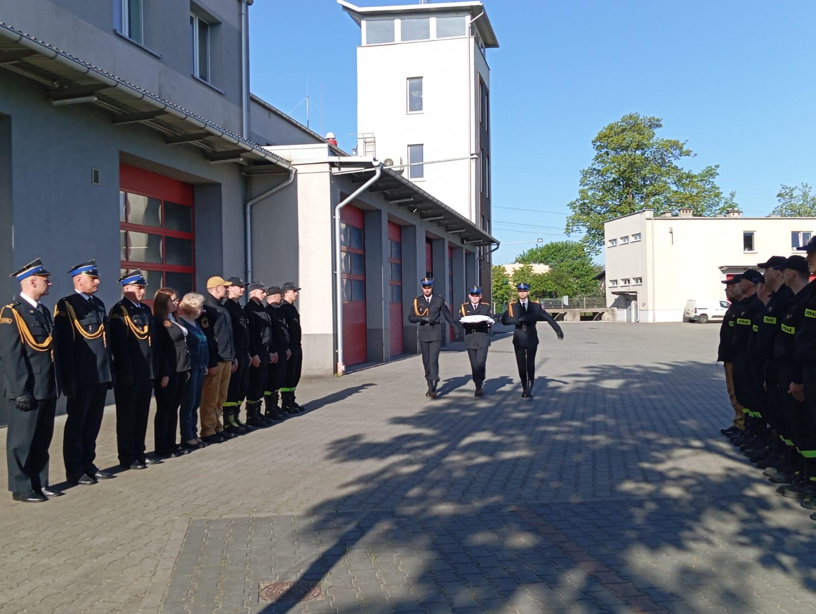 2 maja 2024 r. w Komendzie Powiatowej PSP w Lęborku odbyła się uroczysta zmiana służby z okazji Dnia Flagi Rzeczypospolitej Polskiej. Uroczyste podniesienie flagi państwowej nastąpiło o godz. 8:00. W uroczystościach uczestniczyły zmiany służbowe, funkcjonariusze komendy oraz pracownicy służby cywilnej.