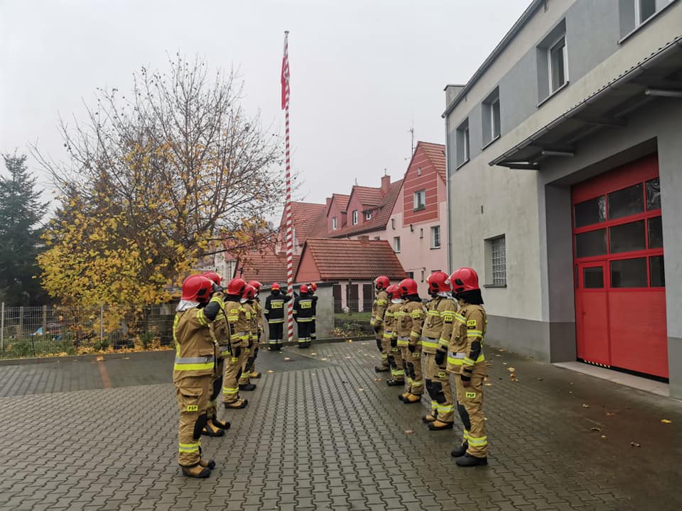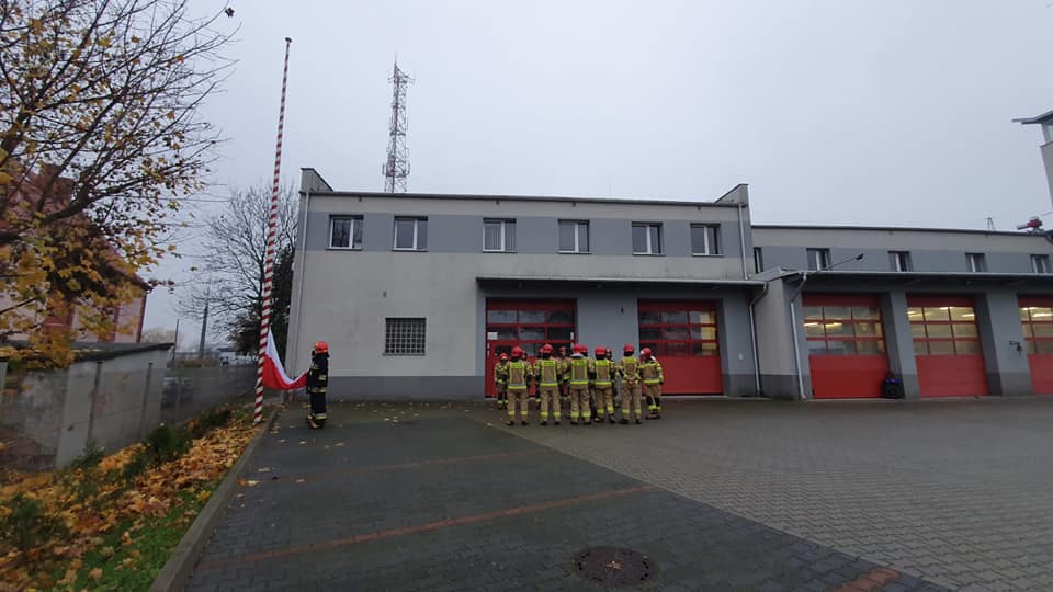 Strażacy z Komendy Powiatowej Państwowej Straży Pożarnej w Lęborku uczcili 103 rocznicę odzyskania niepodległości przez Polskę. Podczas porannej zmiany służby nastąpiło uroczyste podniesienie flagi państwowej na maszt oraz odśpiewanie hymnu państwowego.