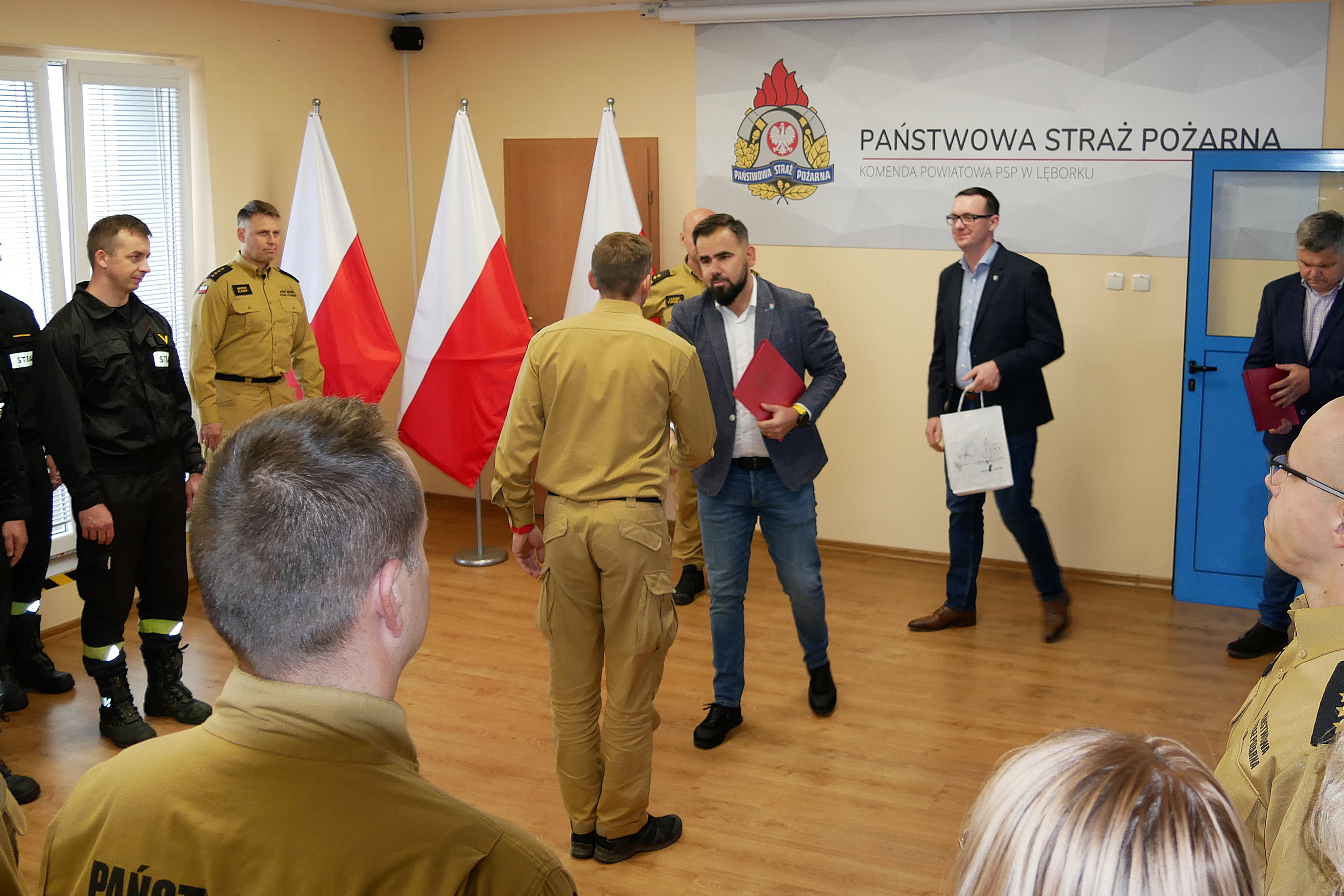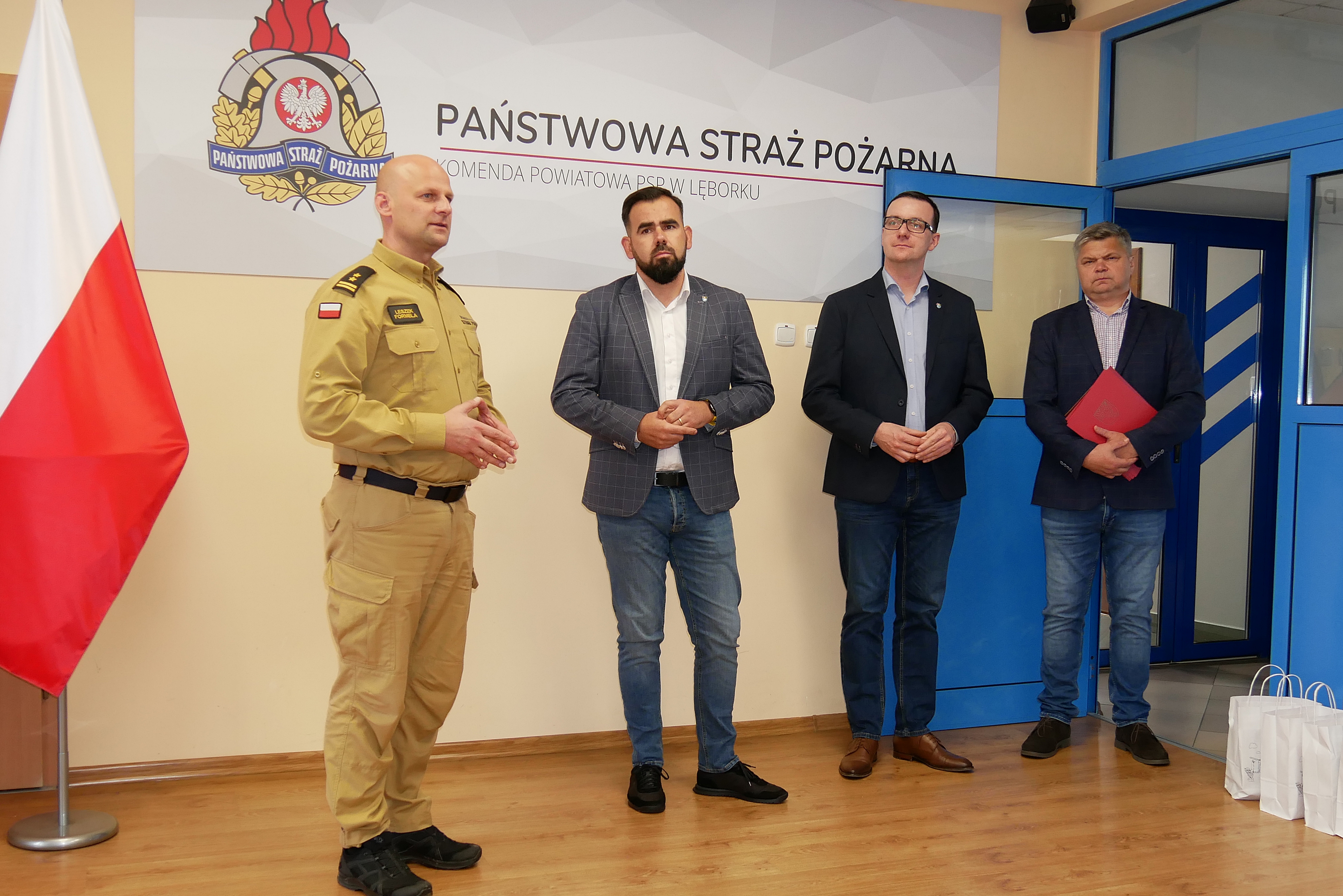 PODZIĘKOWANIA I WIZYTACJA STAROSTY LĘBORSKIEGO W KOMENDZIE POWIATOWEJ PSP W LĘBORKU
