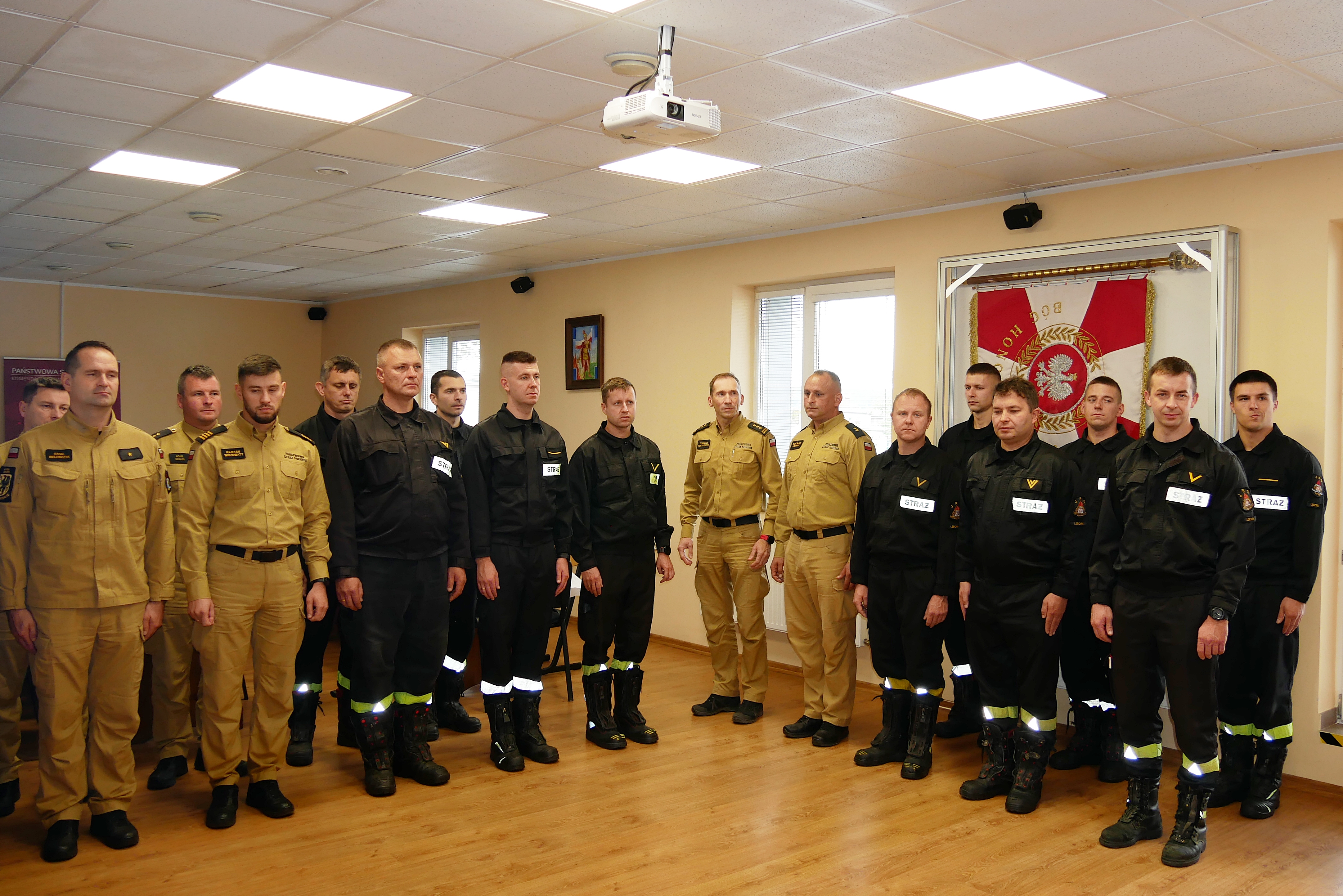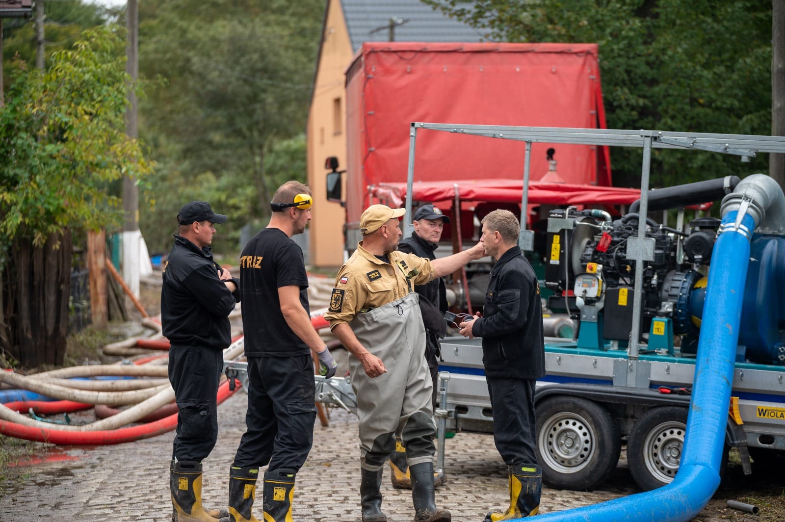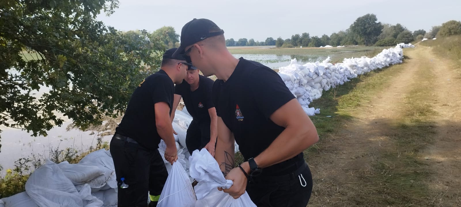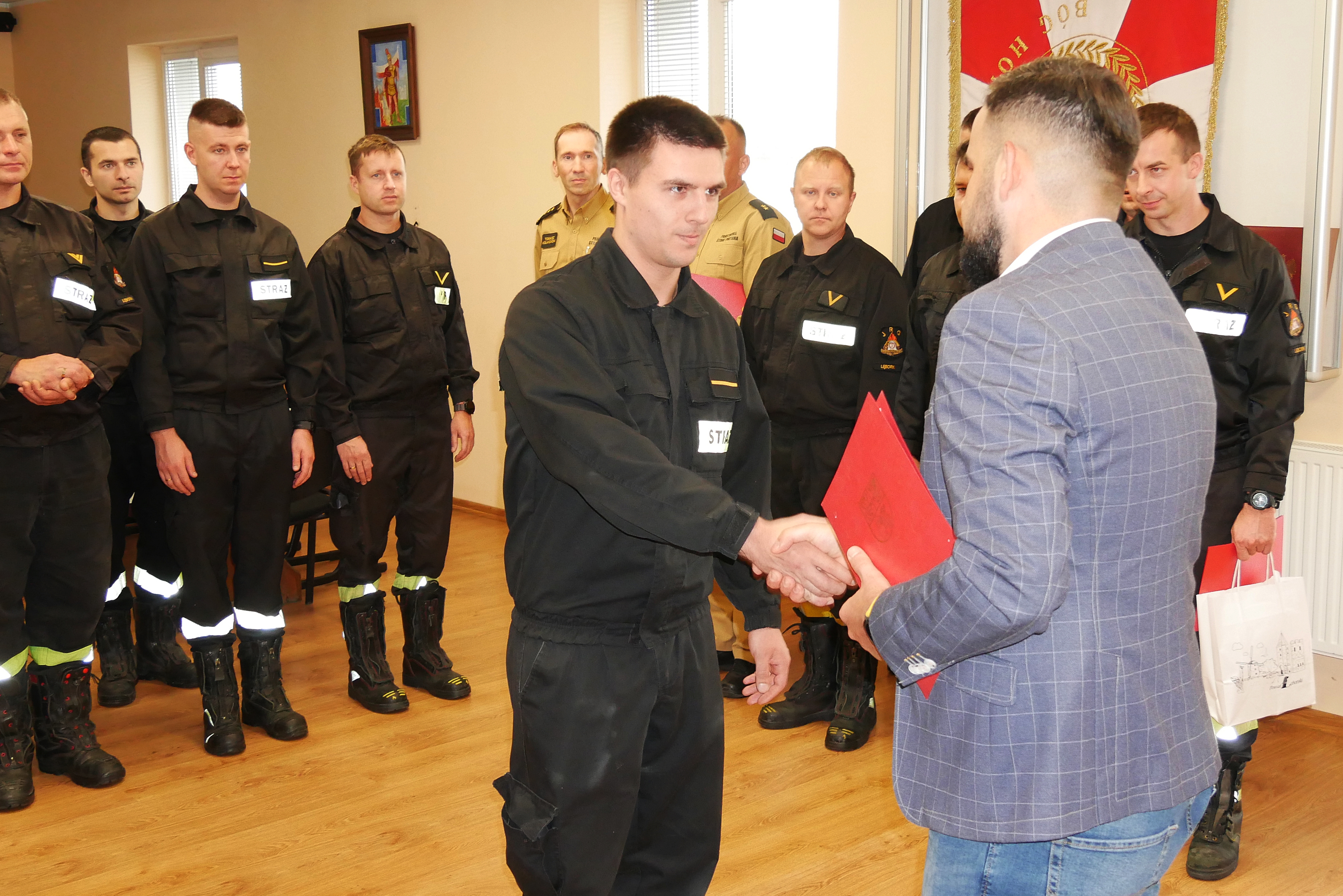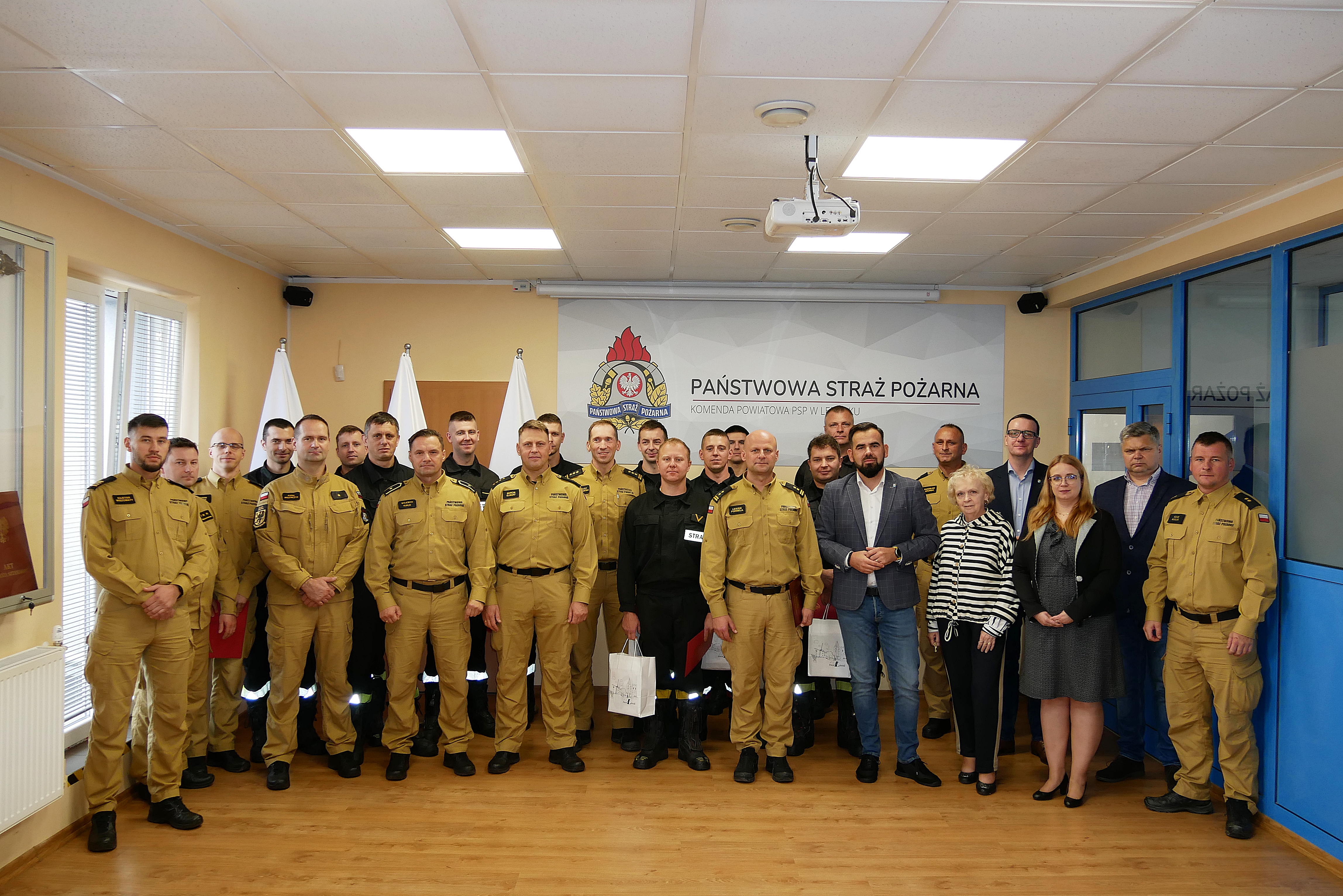 15 października 2024 r. Starosta Lęborski Tomasza Litwin w obecności Wicestarosty Lęborskiego Adriana Wenty i kierownika Referatu Bezpieczeństwa Cezarego Kossewskiego złożył podziękowania strażakom Komendy Powiatowej PSP w Lęborku za udział w działaniach polegających na zapobieganiu i usuwaniu skutków powodzi na terenie województwa opolskiego i dolnośląskiego.