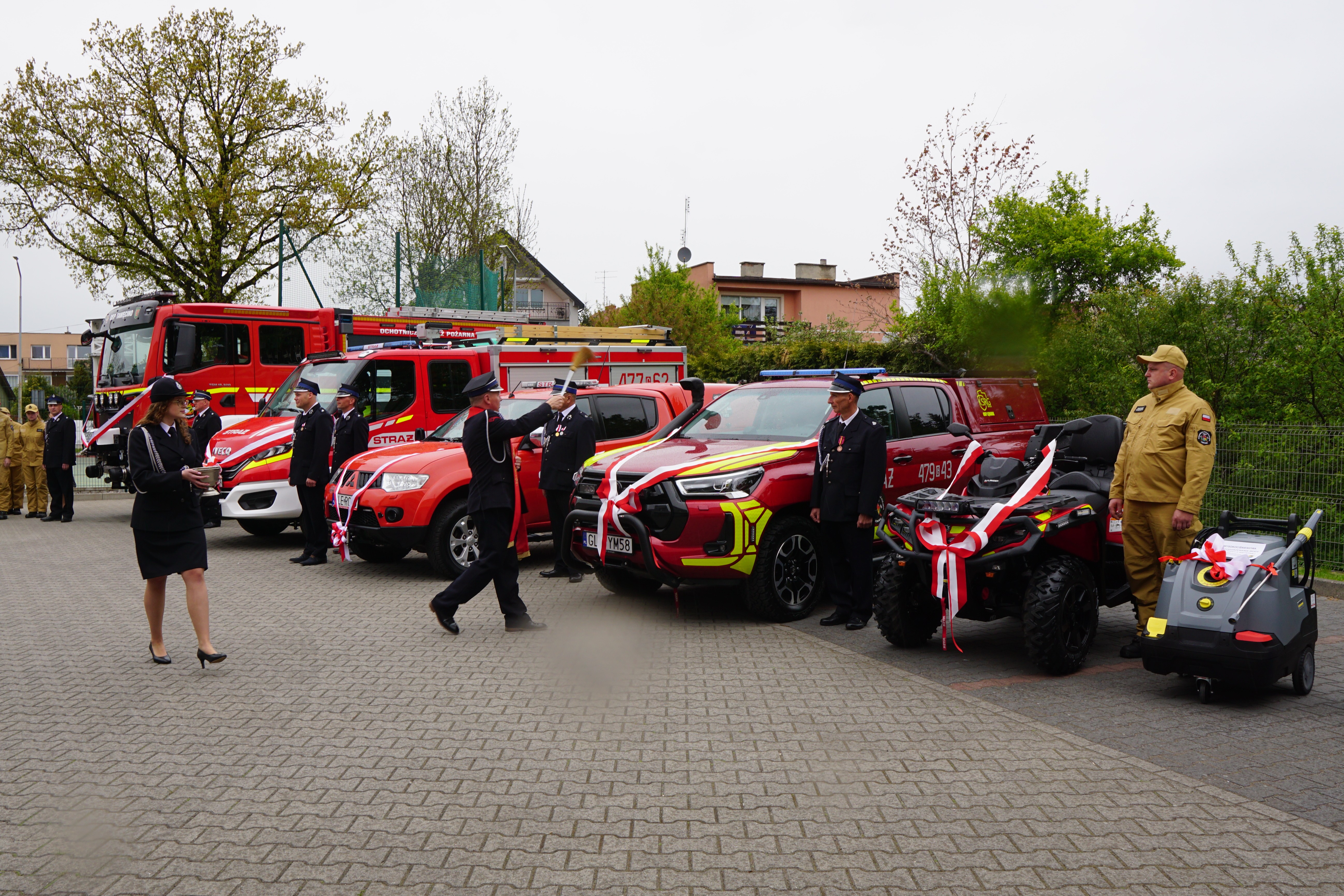 Podczas uroczystej zbiórki zostały przekazane i poświęcone samochody pożarnicze i quad dla jednostek: