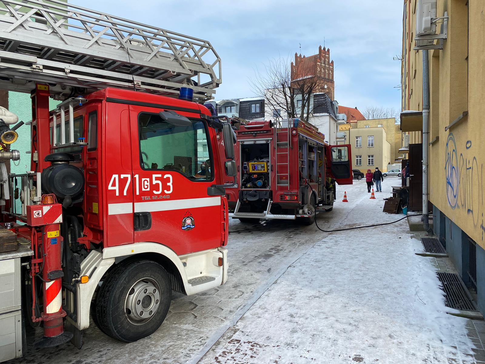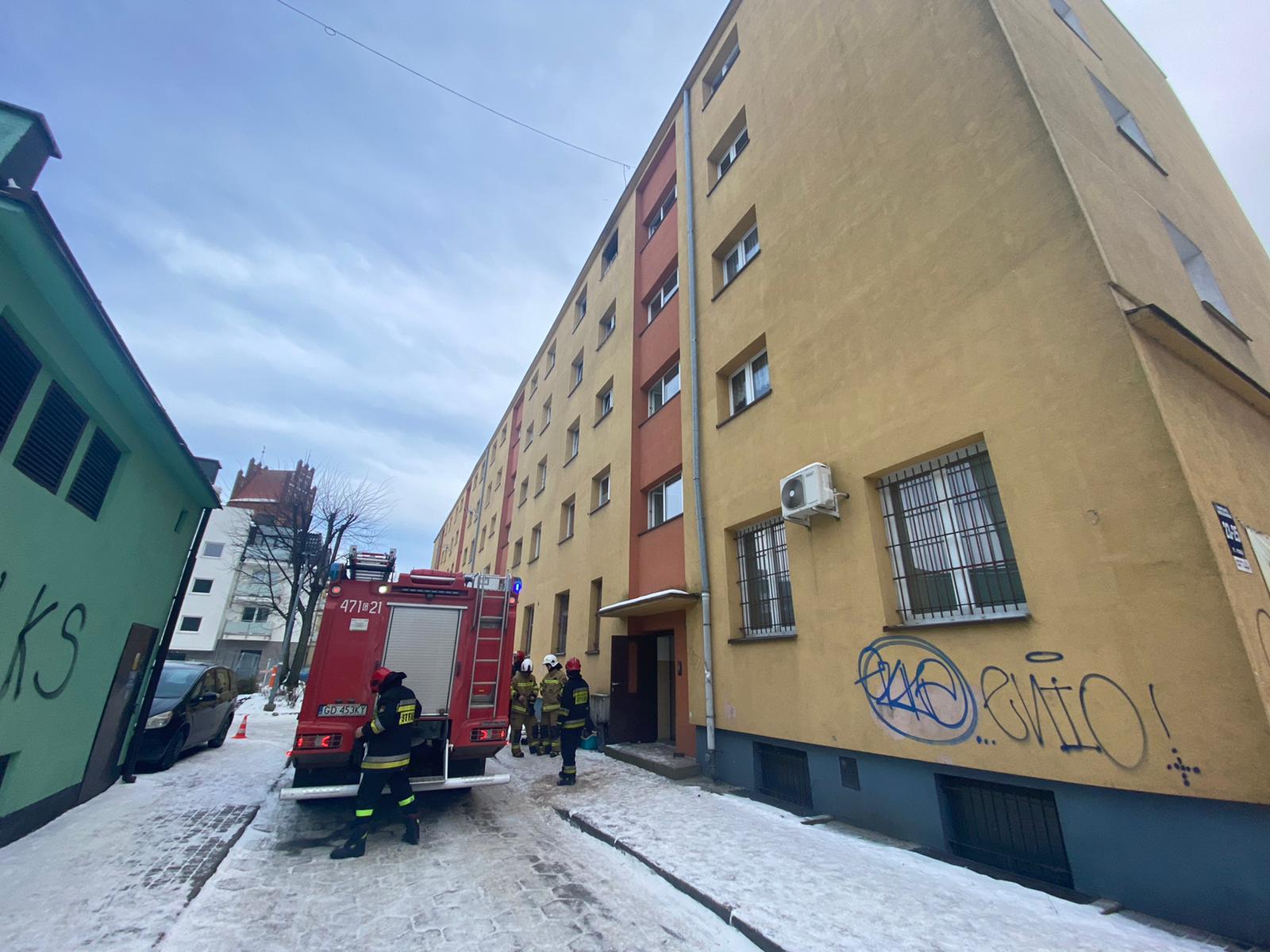 POŻAR MIESZKANIA W BUDYNKU MIESZKALNYM WIELORODZINNYM W LĘBORKU