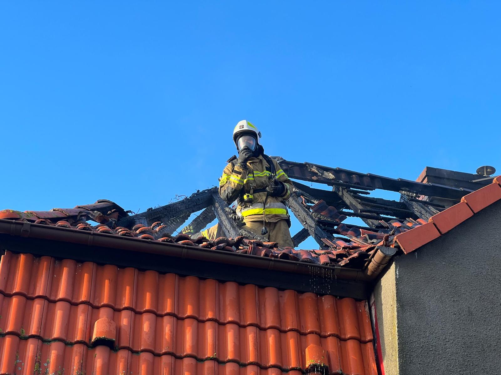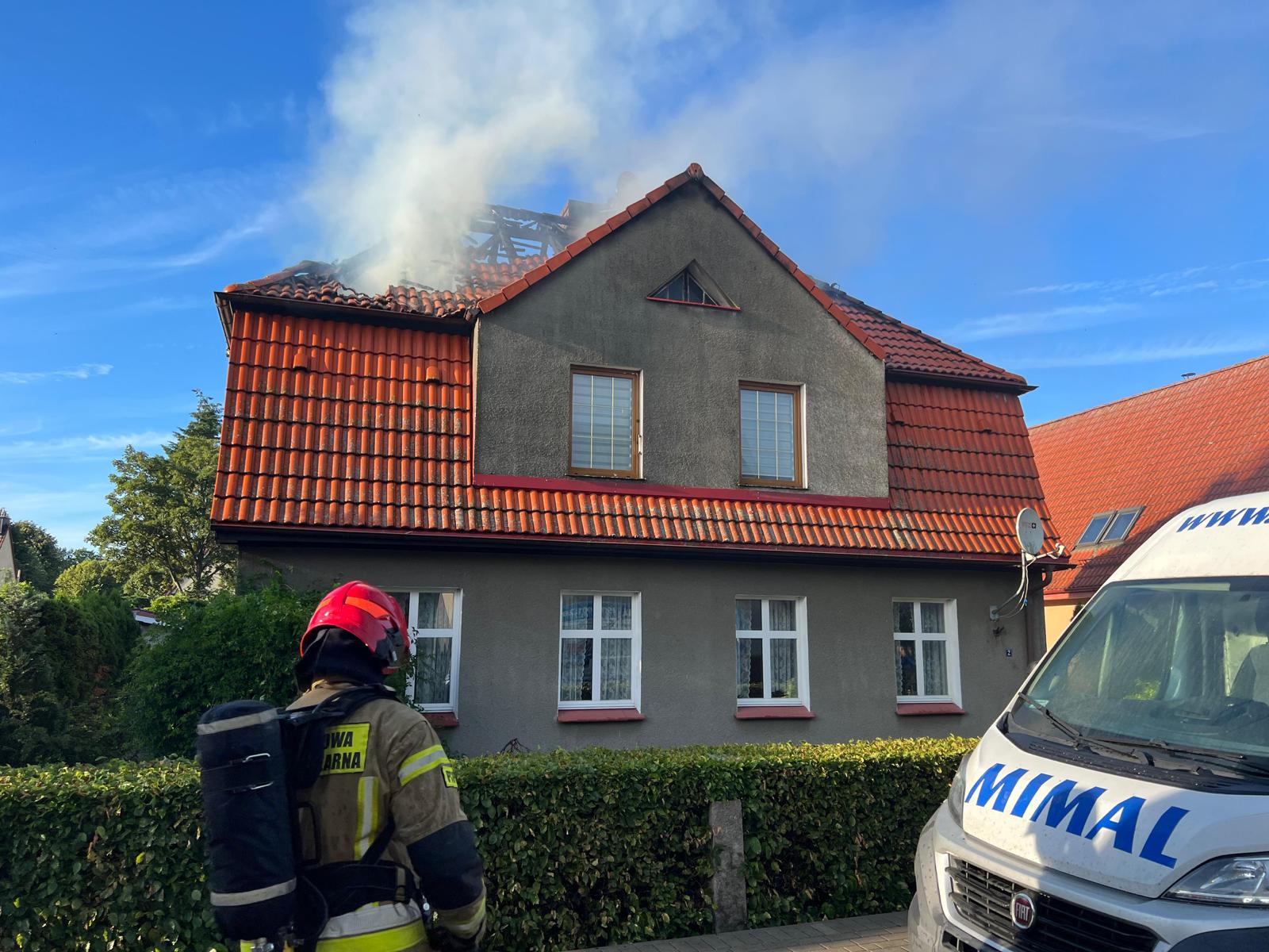 POŻAR PODDASZA BUDYNKU MIESZKALNEGO W LĘBORKU.