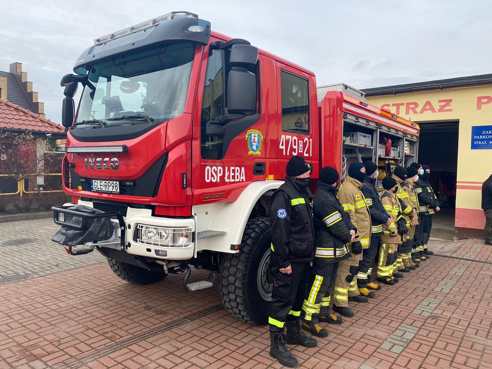 Jednostka Ochotniczej Straży Pożarnej w Łebie otrzymała nowy średni samochód ratowniczo-gaśniczy GBA 3,5/27 na podwoziu marki Iveco, z napędem 4x4, ze zbiornikiem wodnym 3500 litrów oraz środka pianotwórczego 350 litrów. Łączny koszt zakupu pojazdu to 814 137,00 zł. Montaż finansowy z: