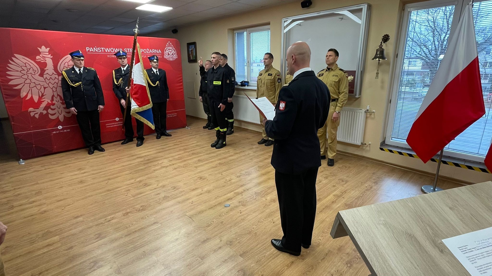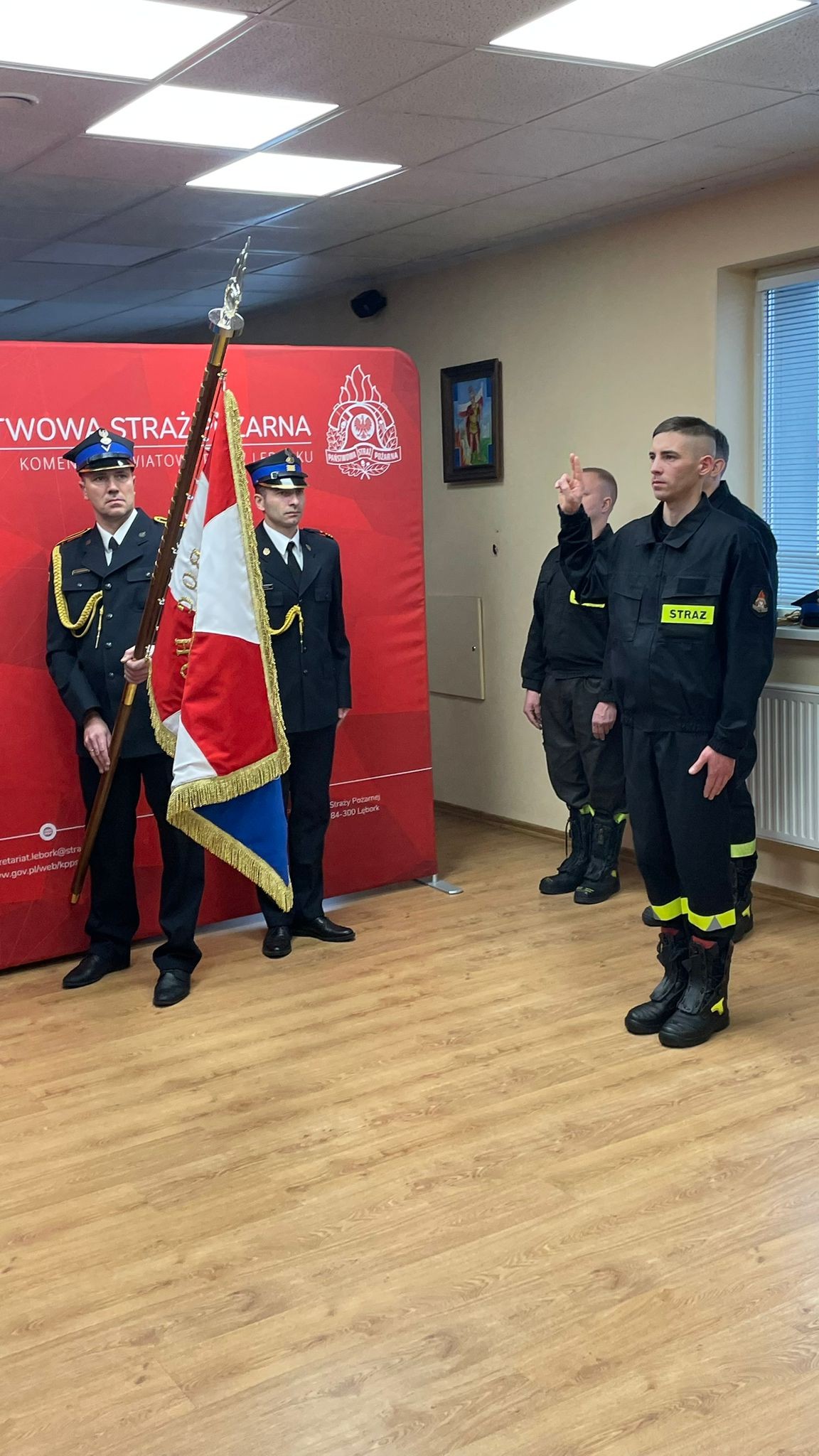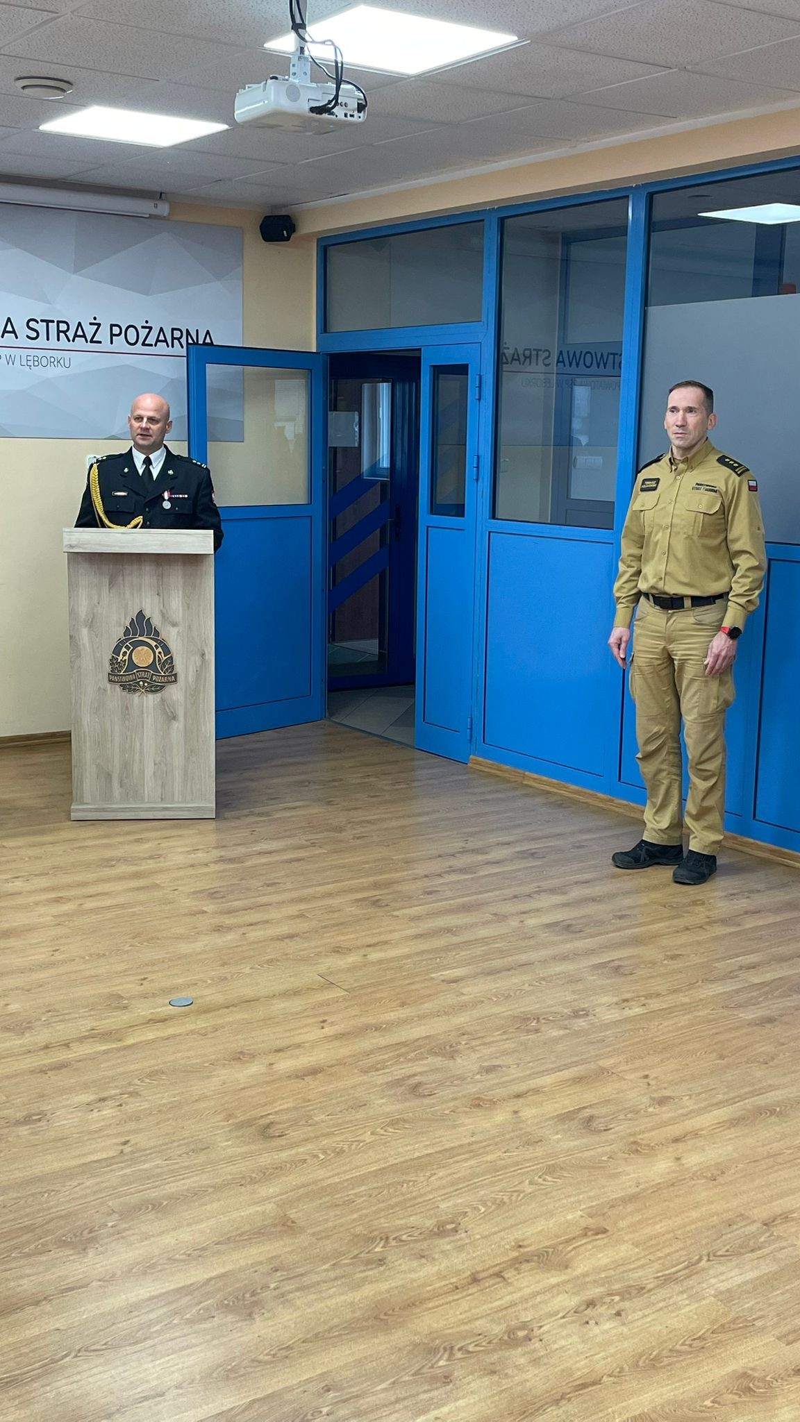 21 listopada 2025 roku w siedzibie Komendy Powiatowej Państwowej Straży Pożarnej w Lęborku odbyła się uroczysta zbiórka z okazji ślubowania nowo przyjętego do służby funkcjonariusza.