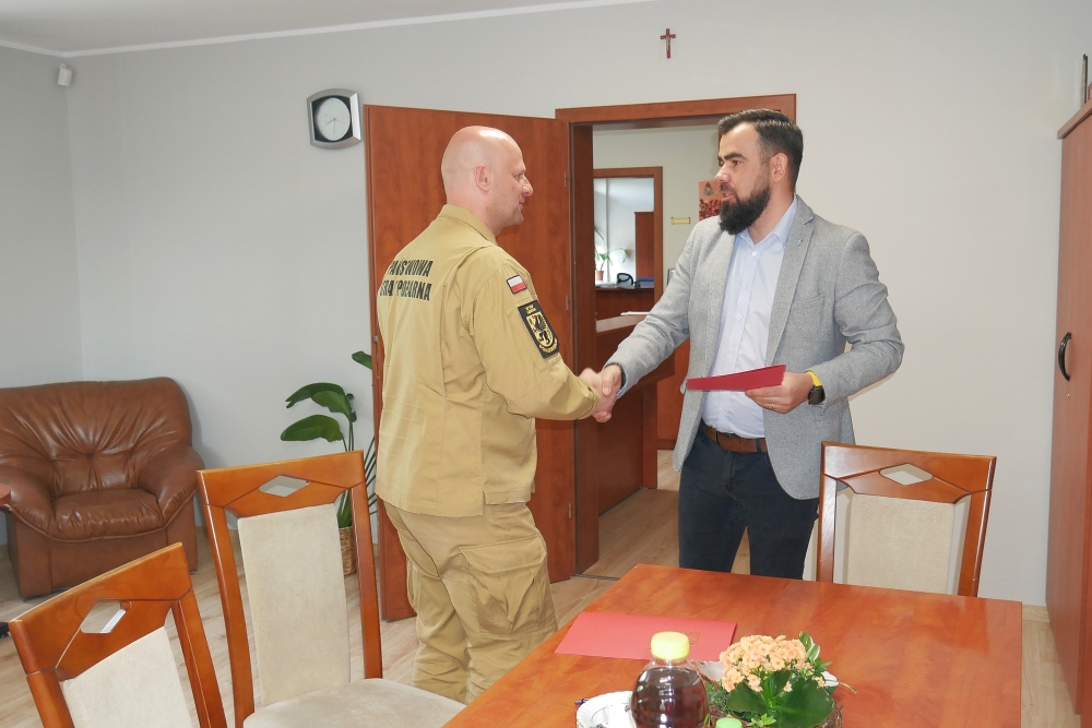 W przekazaniu pięciu urządzeń wraz ze starostą i komendantem uczestniczyli również: st. bryg. Tomasz Kołakowski – zastępca komendanta KP PSP w Lęborku i Cezary Kossewski – kierownik Referatu Bezpieczeństwa i Zarządzania Kryzysowego.