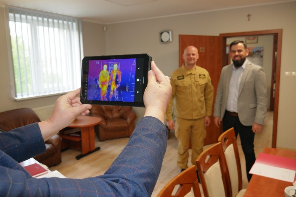 Taką funkcję pełnić będą właśnie przekazane strażakom przez starostę nowoczesne tablety wyposażone w systemy monitorowania emisji cieplnej, czyli termowizję. Oprócz wbudowanych sensorów termowizyjnych, urządzenia współpracują z oprogramowaniem do termowizyjnych kamer zewnętrznych, a także dysponują potężną latarką LED. Sprzęt spełnia również rygorystyczne wymagania wytrzymałościowe klasy wojskowej oraz wyposażony jest w specjalistyczny port umożliwiający podłączenie np. kamer endoskopowych i cyfrowego mikroskopu.