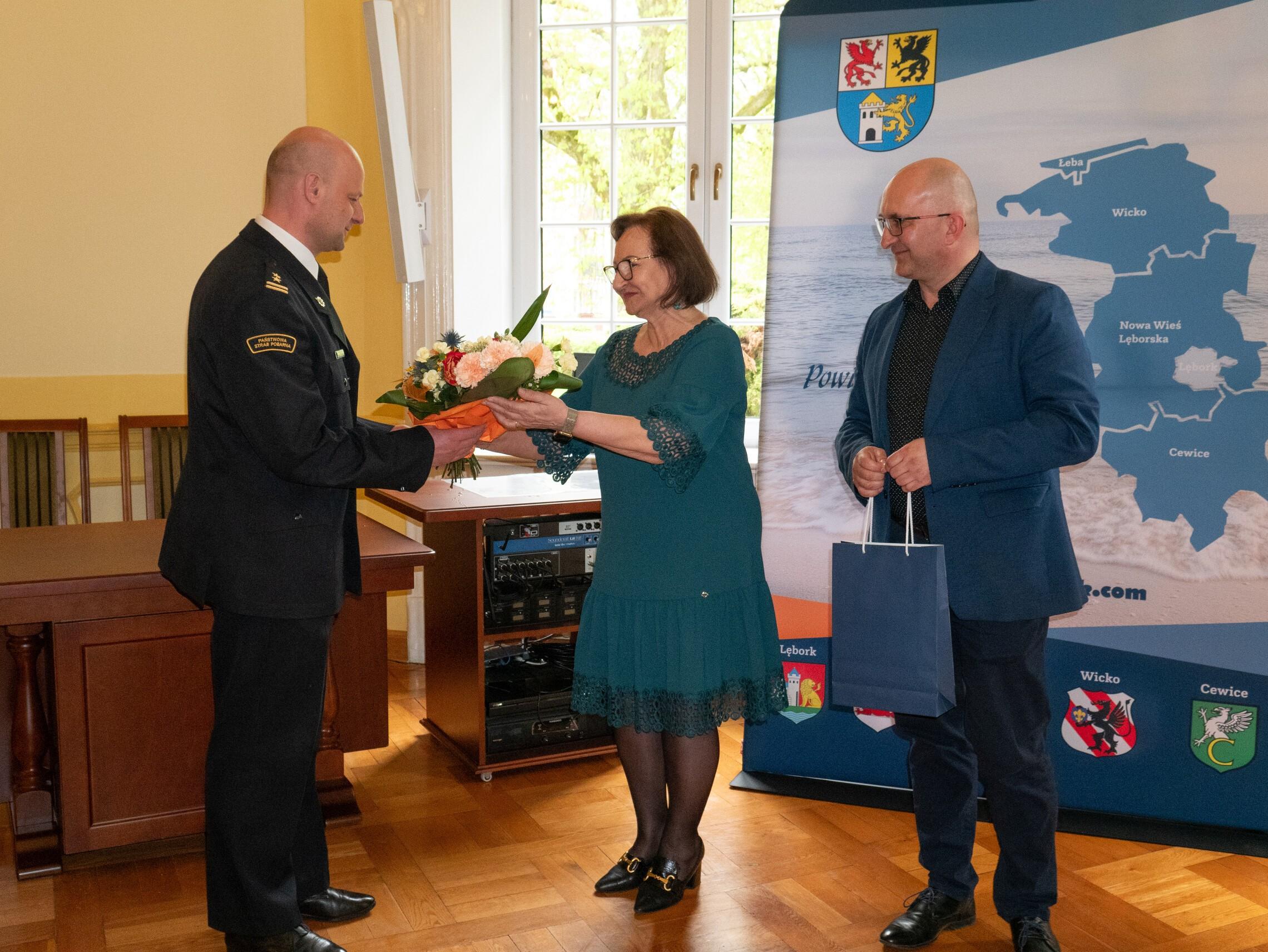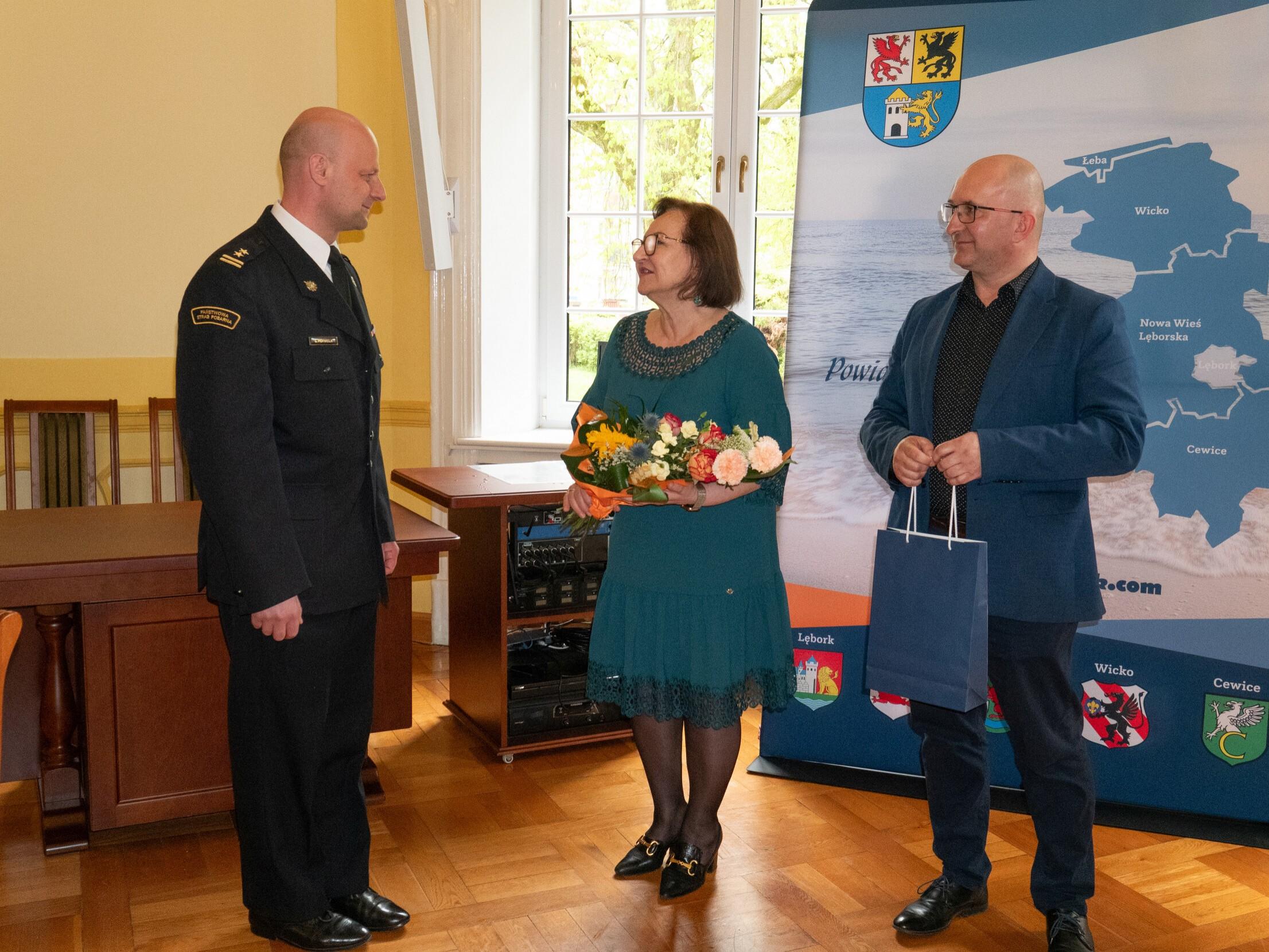 17 kwietnia 2024 roku Starosta Lęborski Pani Alicja Zajączkowska wraz z członkami Zarządu Powiatu złożyli gratulacje z okazji powołania na stanowisko Komendanta Powiatowego Państwowej Straży Pożarnej w Lęborku bryg. Leszkowi Formela.